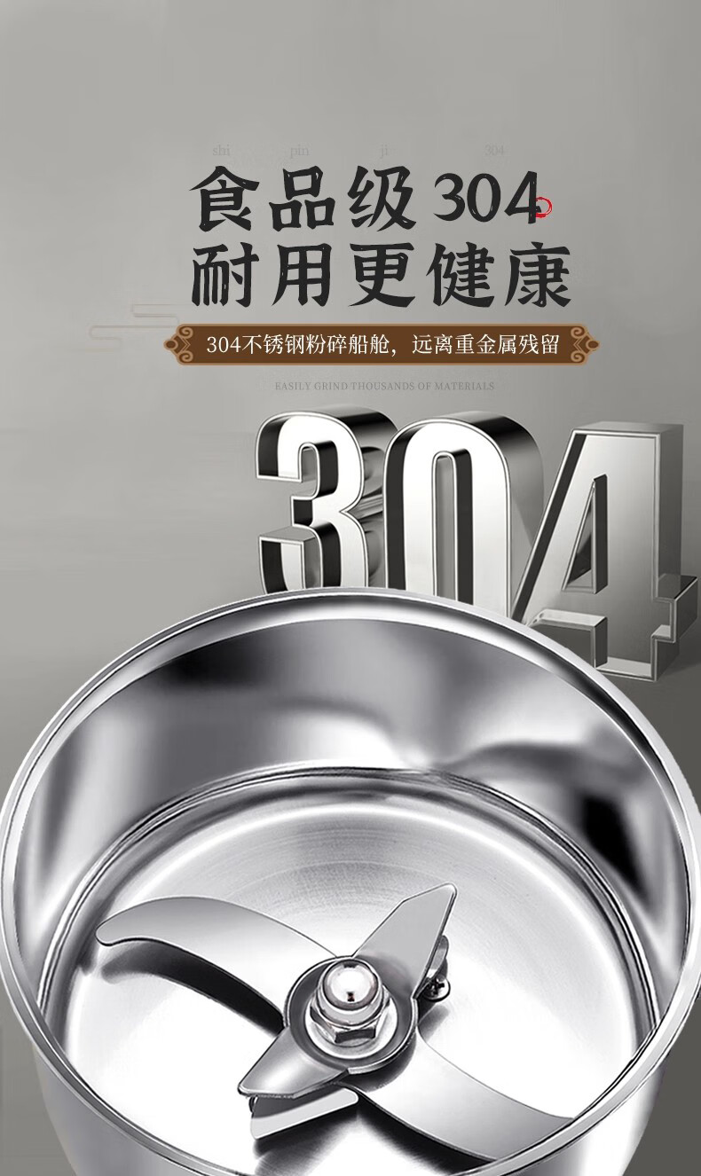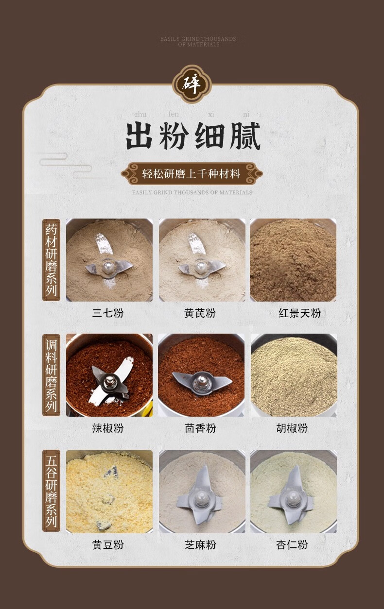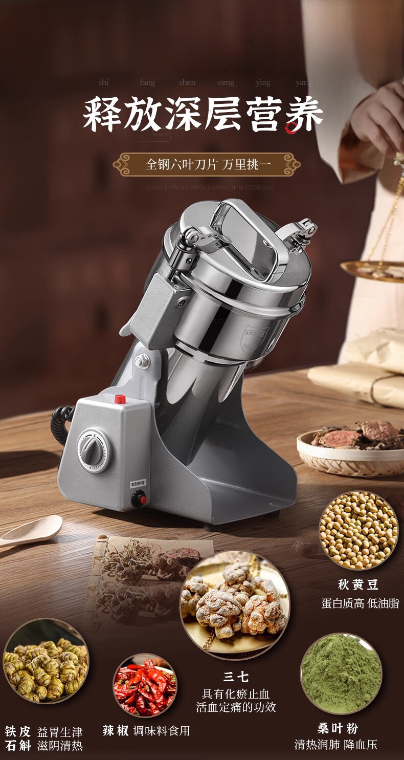 Crusher electric household small grinder universal grinder grinder Chinese herbal medicine ultra-fine commercial crusher 1000g high-power copper motor 201 crushing bin/thickened six-blade steel knife
