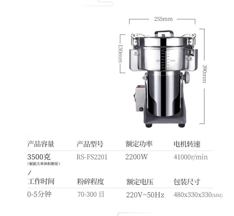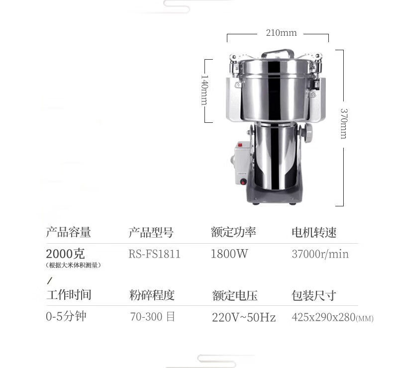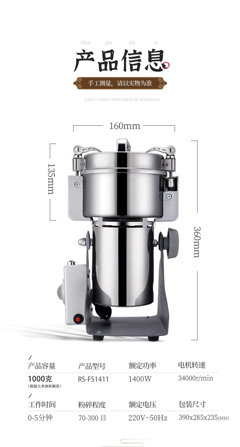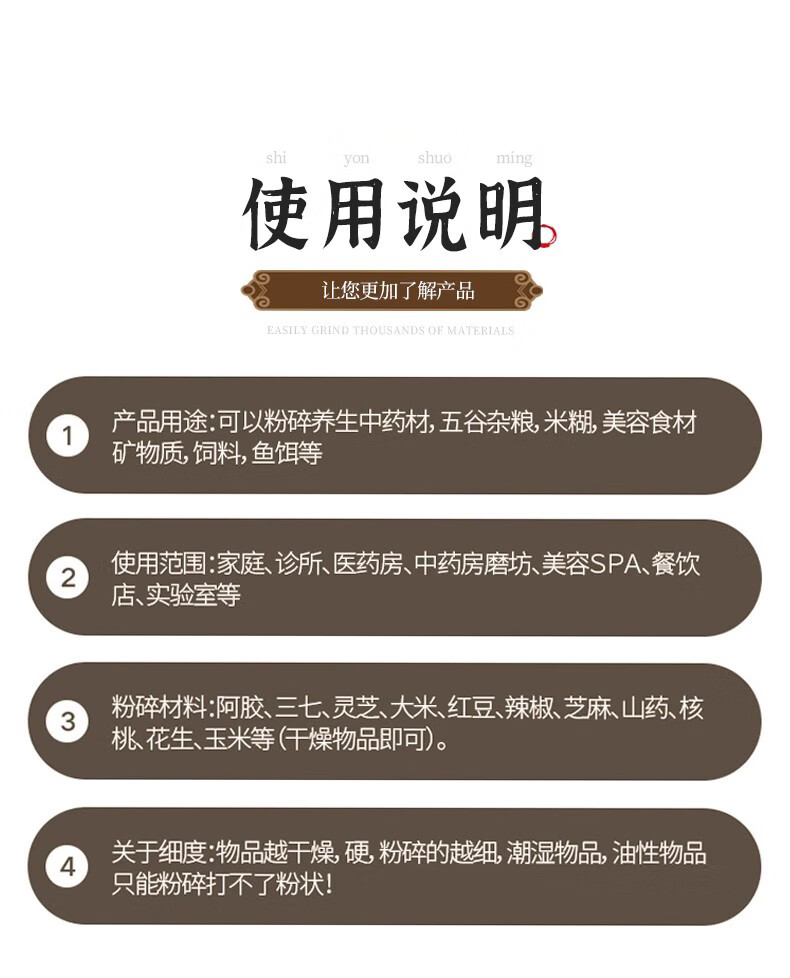 Crusher electric household small grinder universal grinder grinder Chinese herbal medicine ultra-fine commercial crusher 1000g high-power copper motor 201 crushing bin/thickened six-blade steel knife