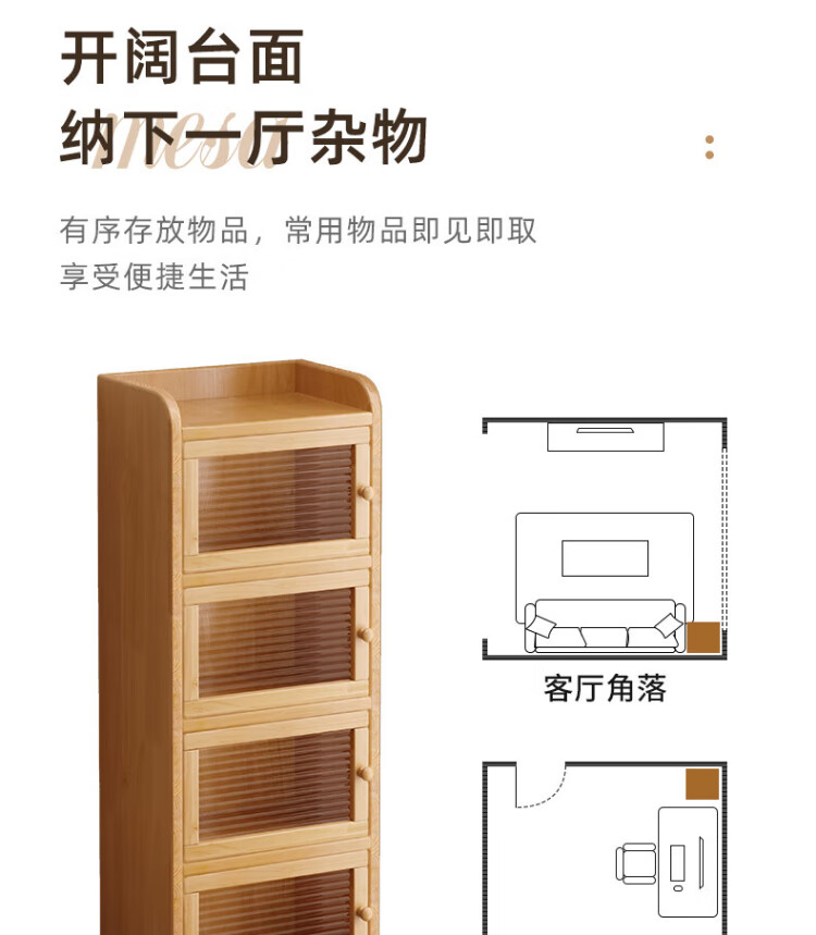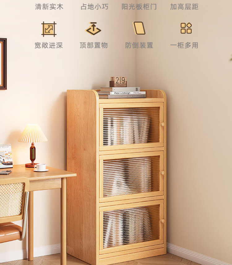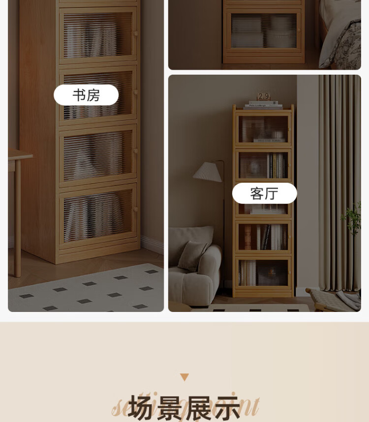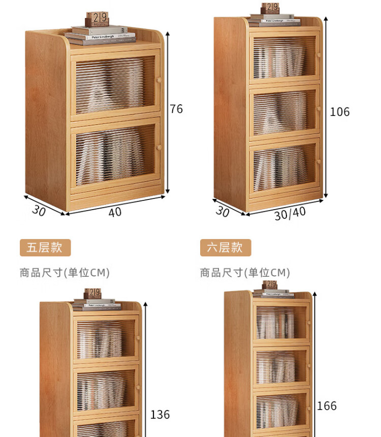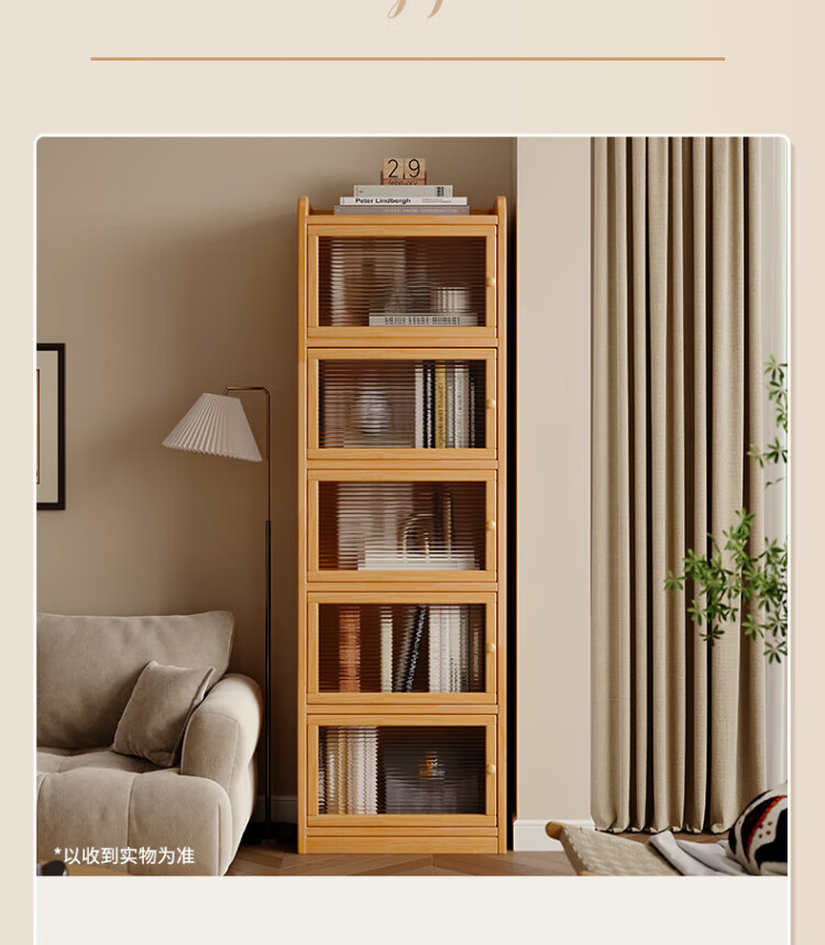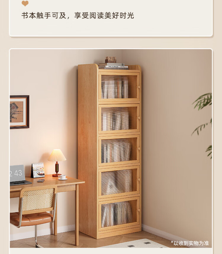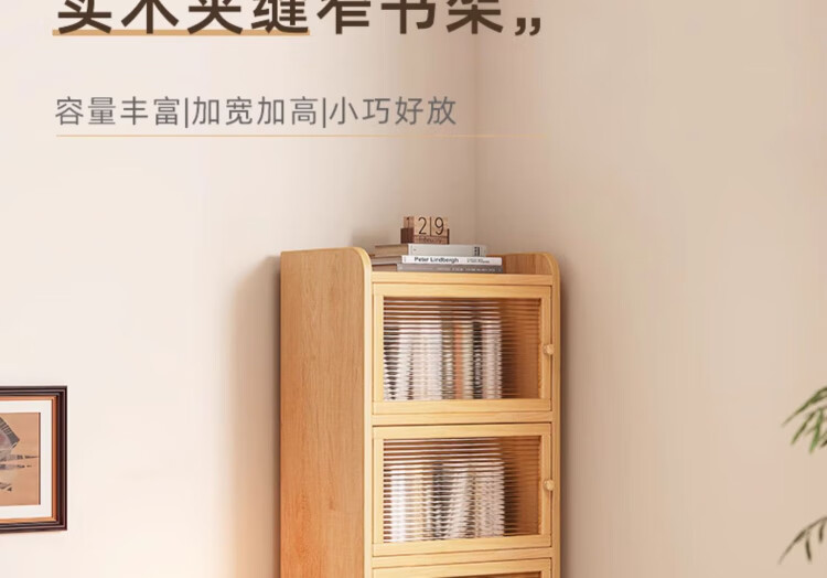 Nesel solid wood bookshelf storage rack desk storage rack floor standing vertical bookcase wall corner dustproof storage narrow cabinet hot sale - acrylic cabinet door - no paint - 5 layers 40x30x136cm all solid wood frame