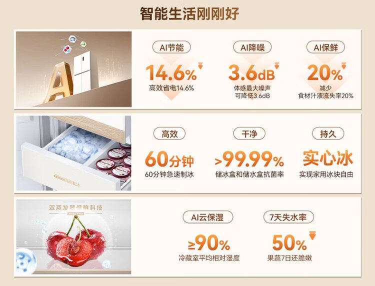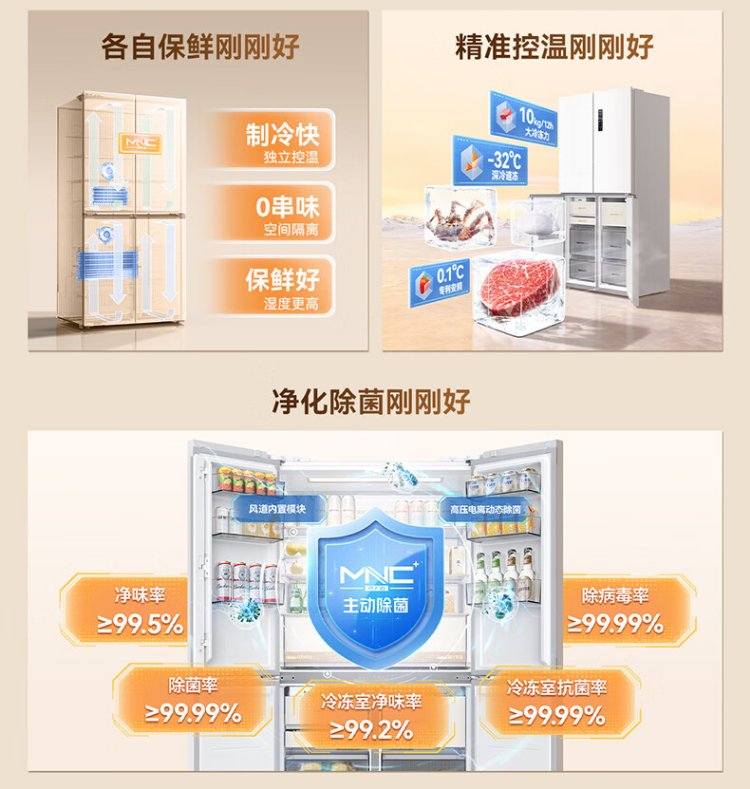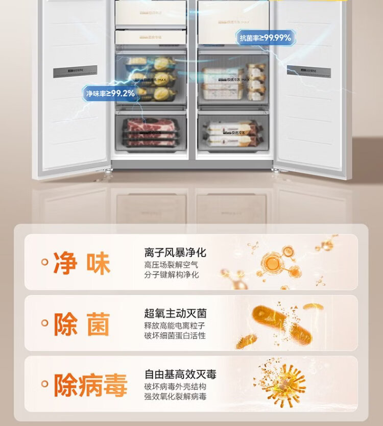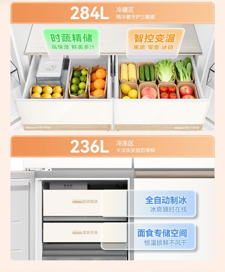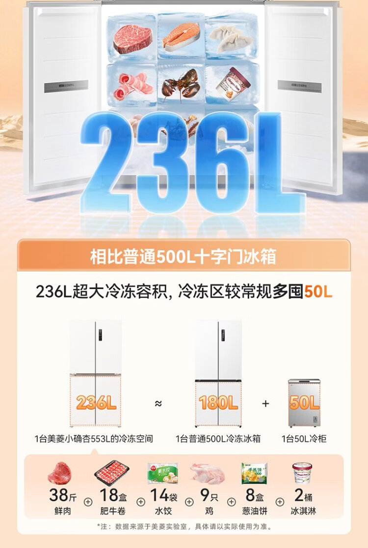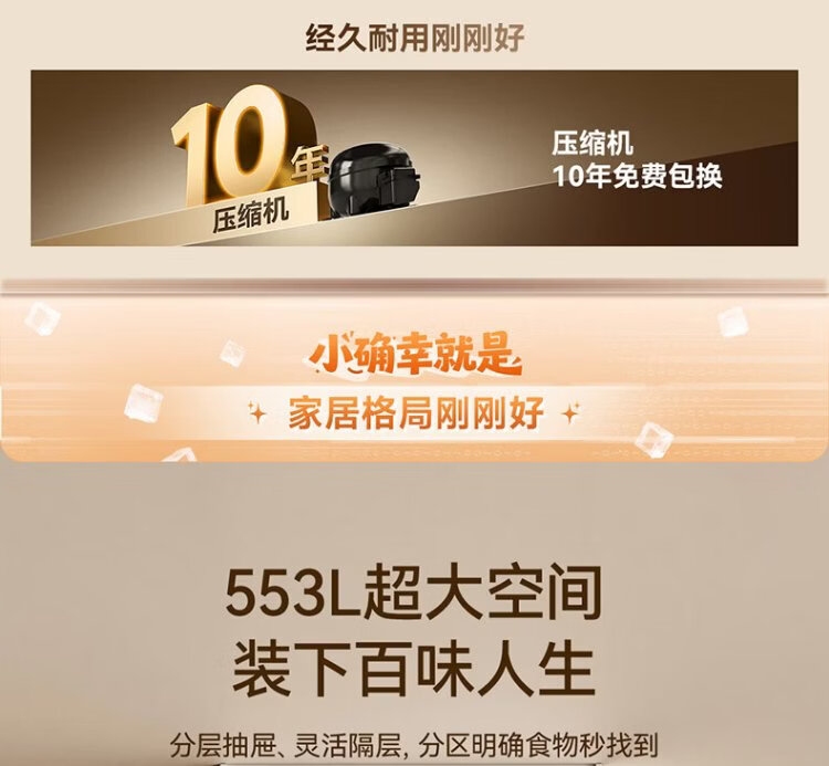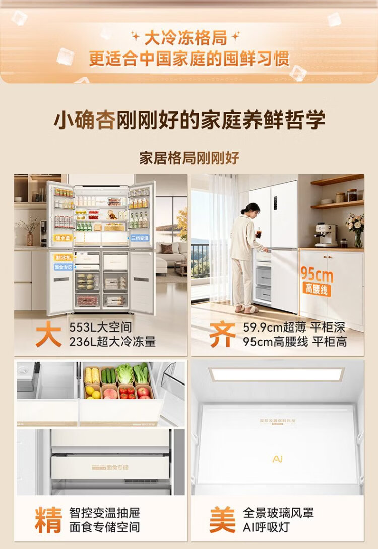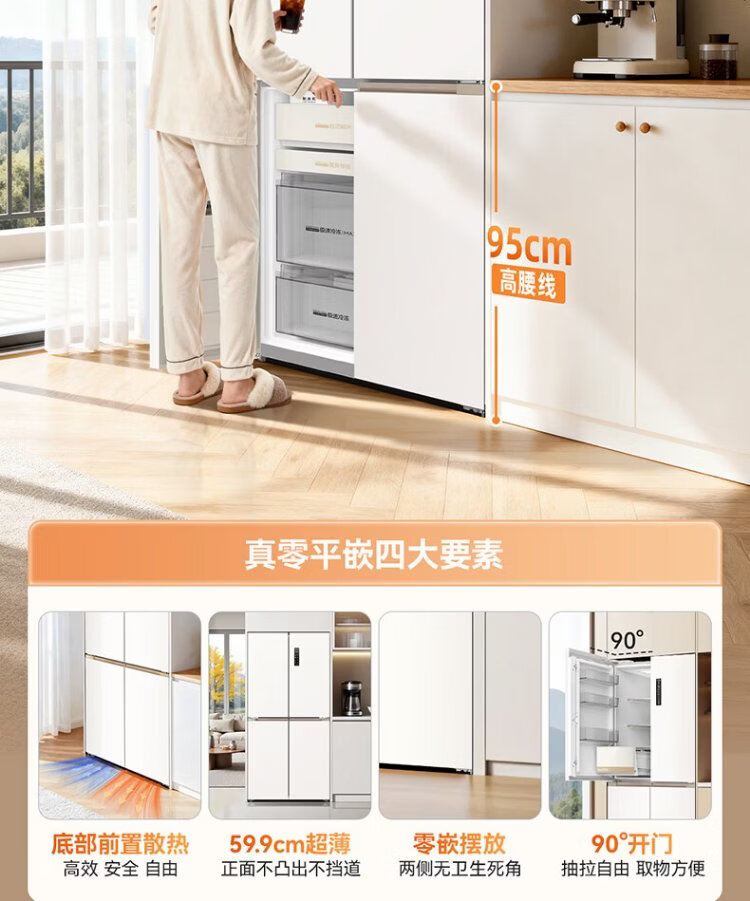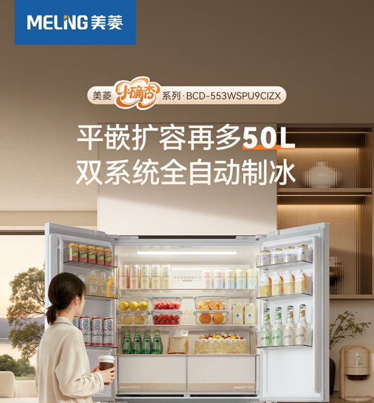 MeiLing Xiaoquexing 553L cross-door refrigerator dual-system automatic ice making ultra-thin zero-level embedded large capacity first-class energy efficiency air-cooled BCD-553WSPU9CIZX National subsidy Xiaoquexing 553WSPU9CIZX