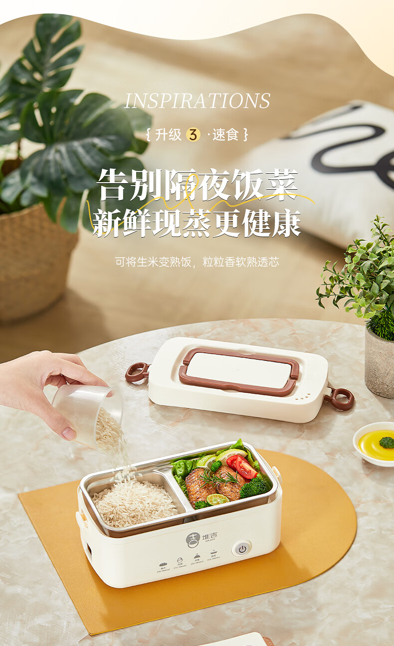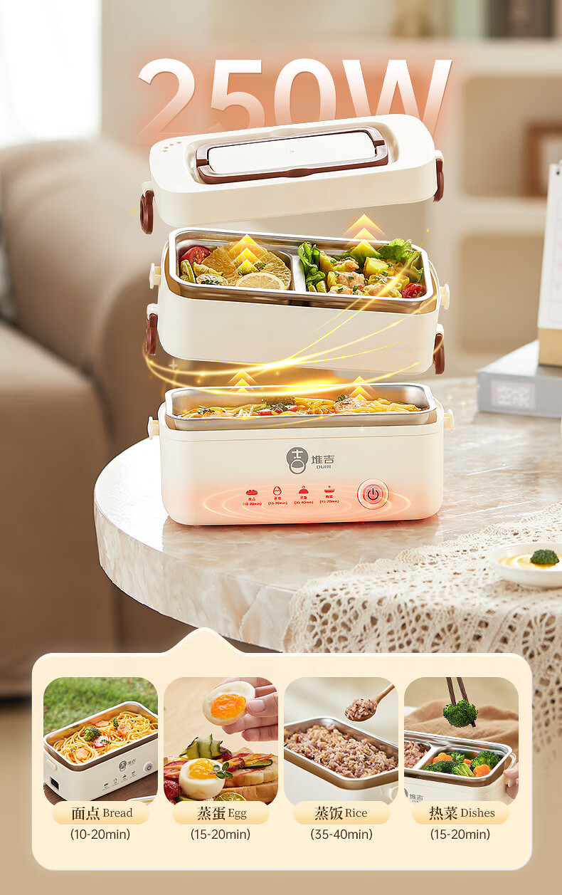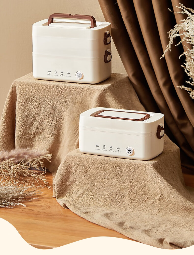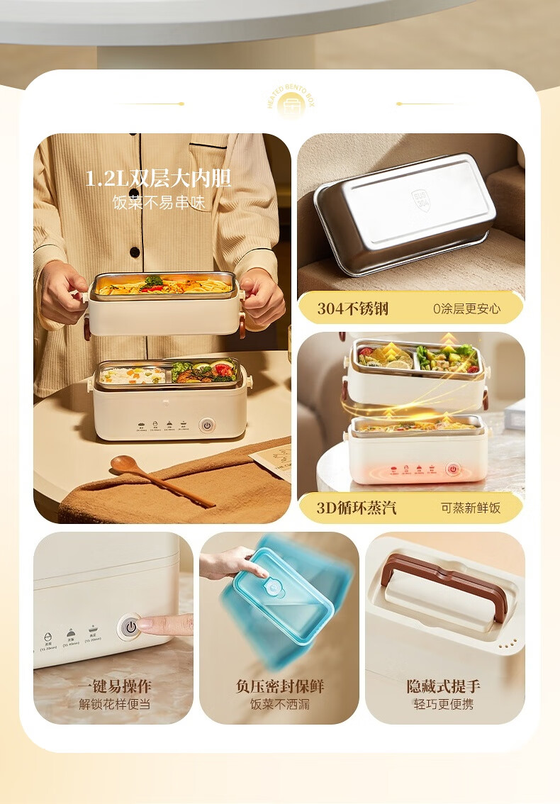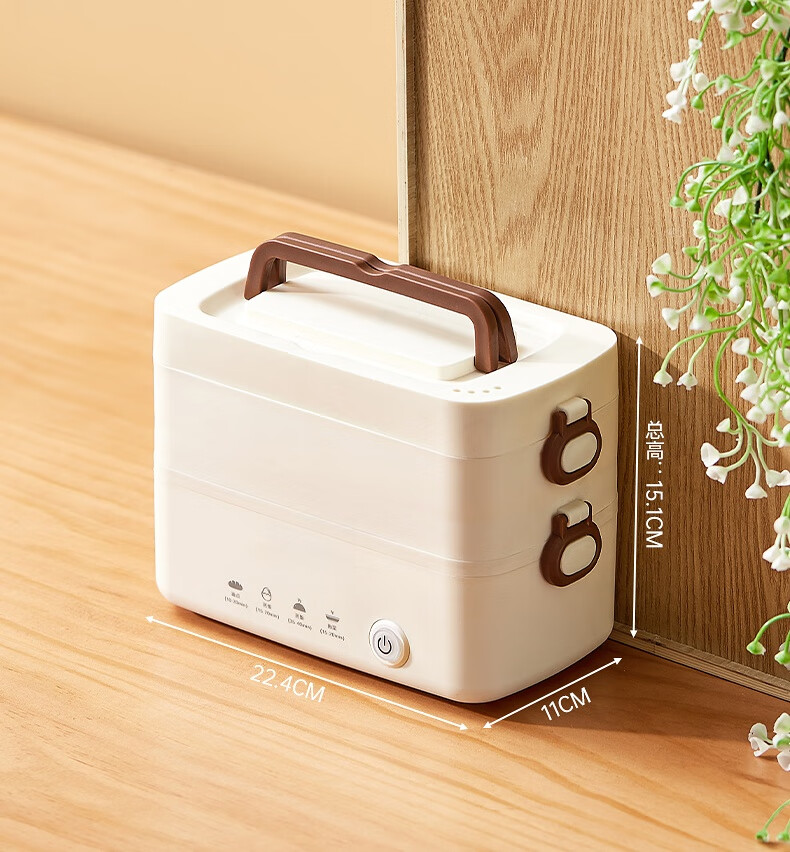 Electric lunch box for heating and keeping warm rice. Mini portable rice cooker for office workers. It can steam and automatically shut off the power. Double layer 1200 ml. 304 stainless steel inner tank. Double layer 1200 ml.