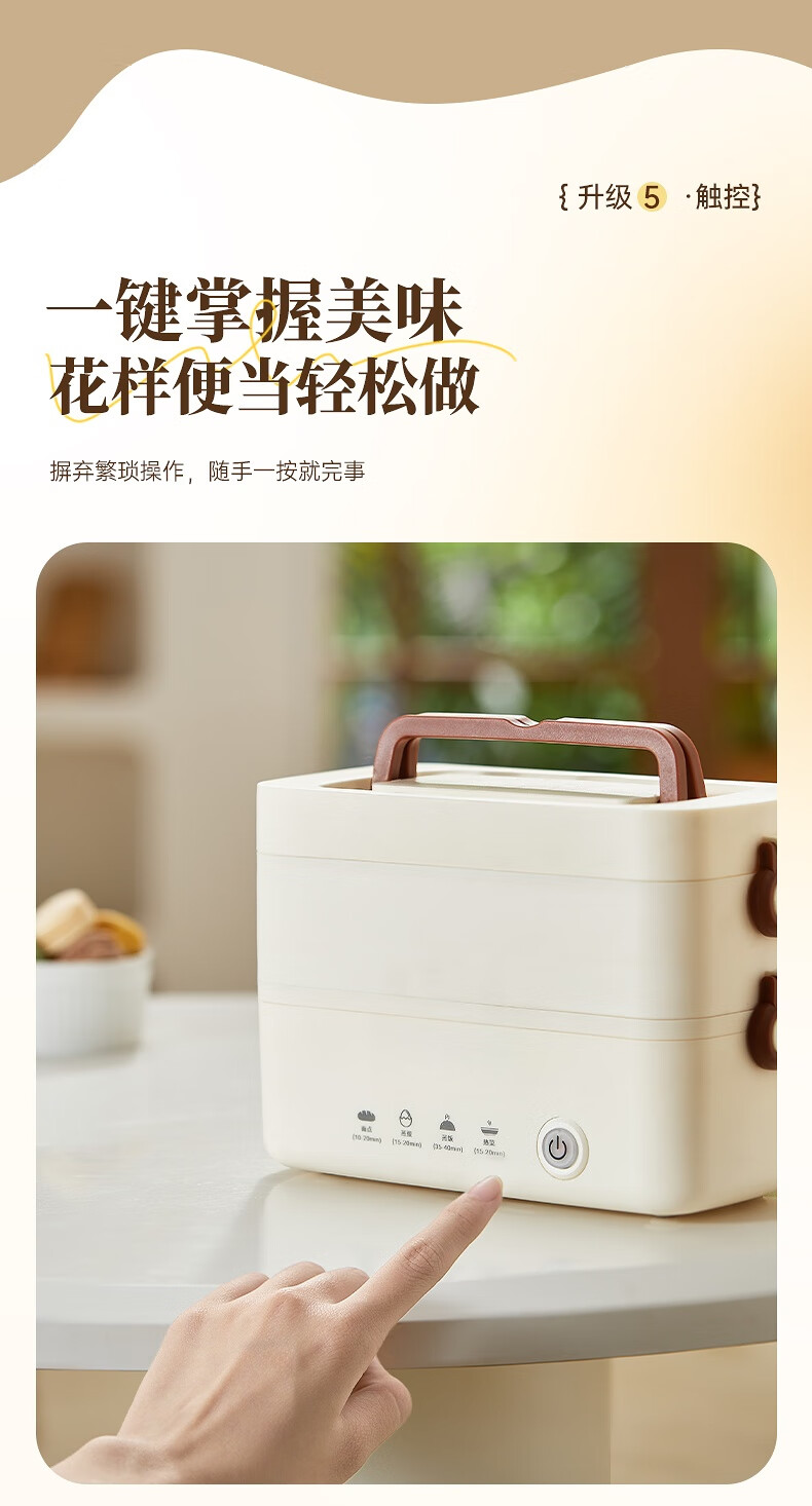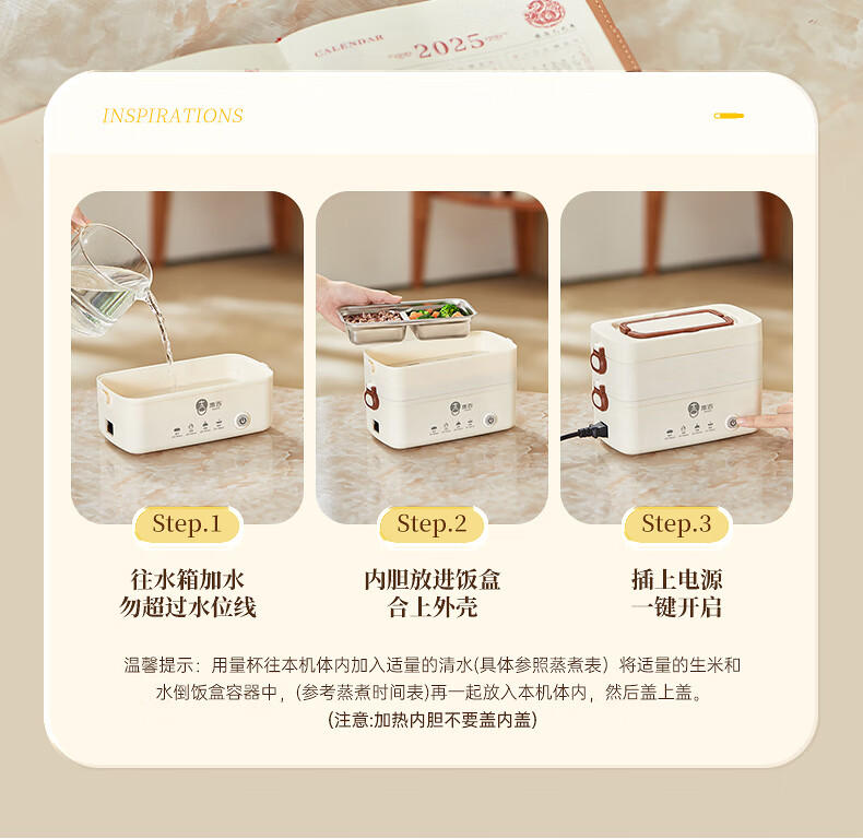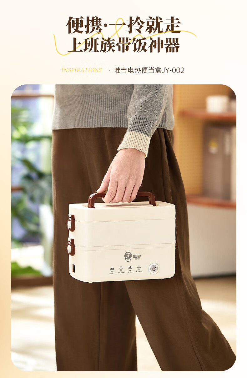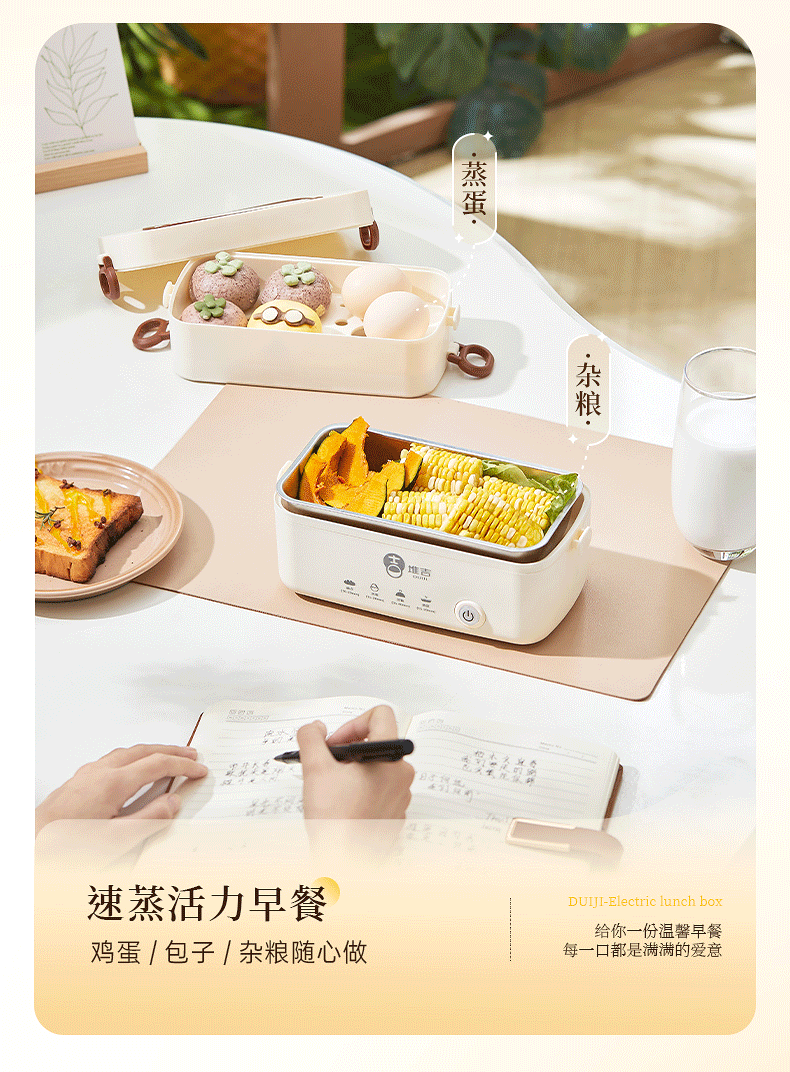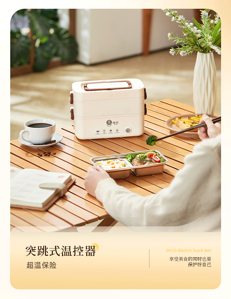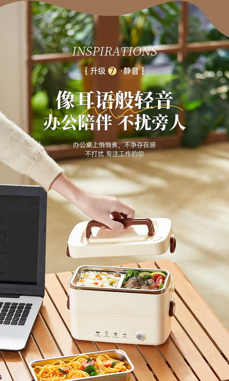 Electric lunch box for heating and keeping warm rice. Mini portable rice cooker for office workers. It can steam and automatically shut off the power. Double layer 1200 ml. 304 stainless steel inner tank. Double layer 1200 ml.