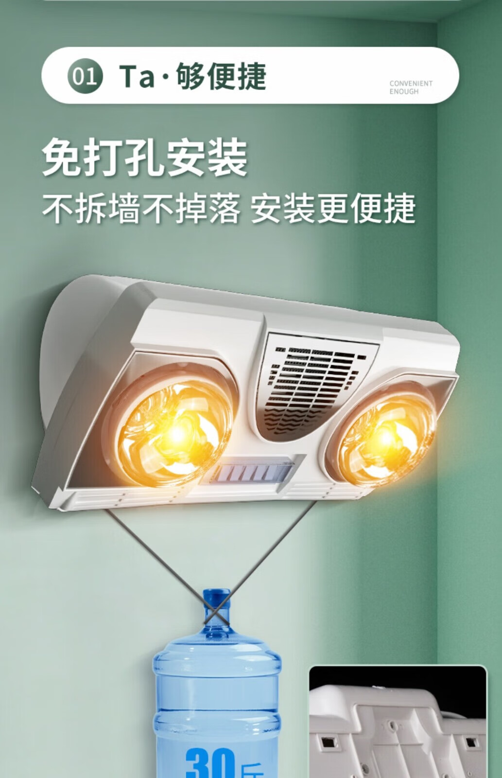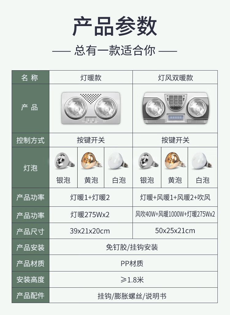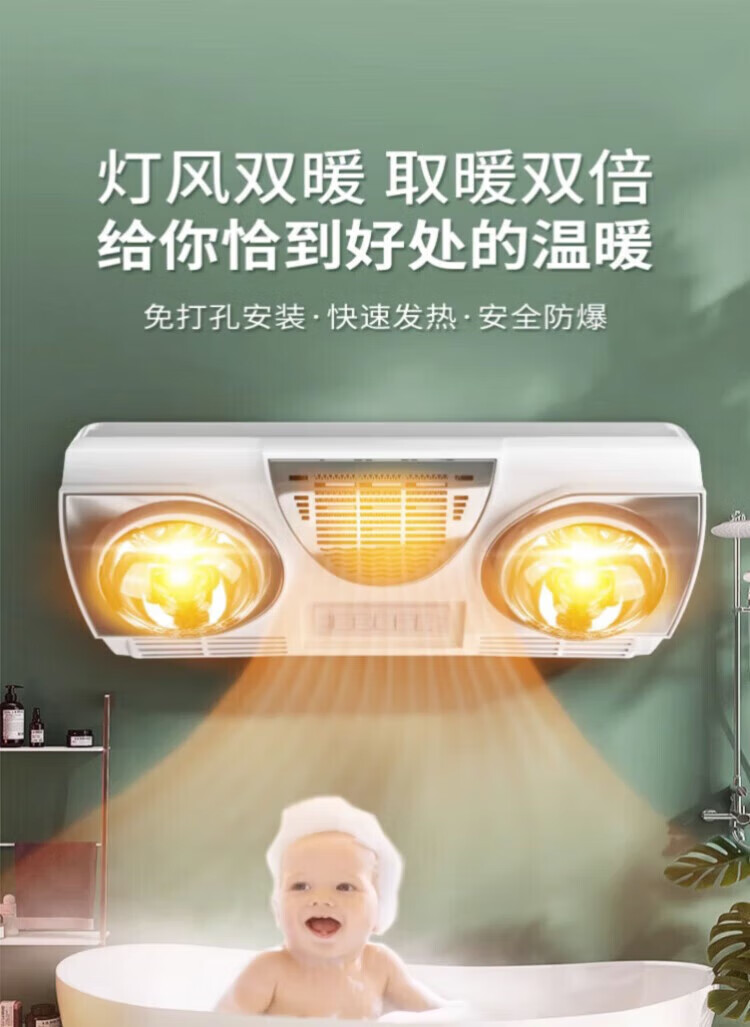 Good Wife Yuba Wall-mounted Light Warmer Bathroom Bathroom No Punching Wall-mounted Waterproof Explosion-proof Heating Lamp Air Heater High Heat Yellow Bubble*Lamp Warmer+Air Warmer*Leakage Protection Key Switch