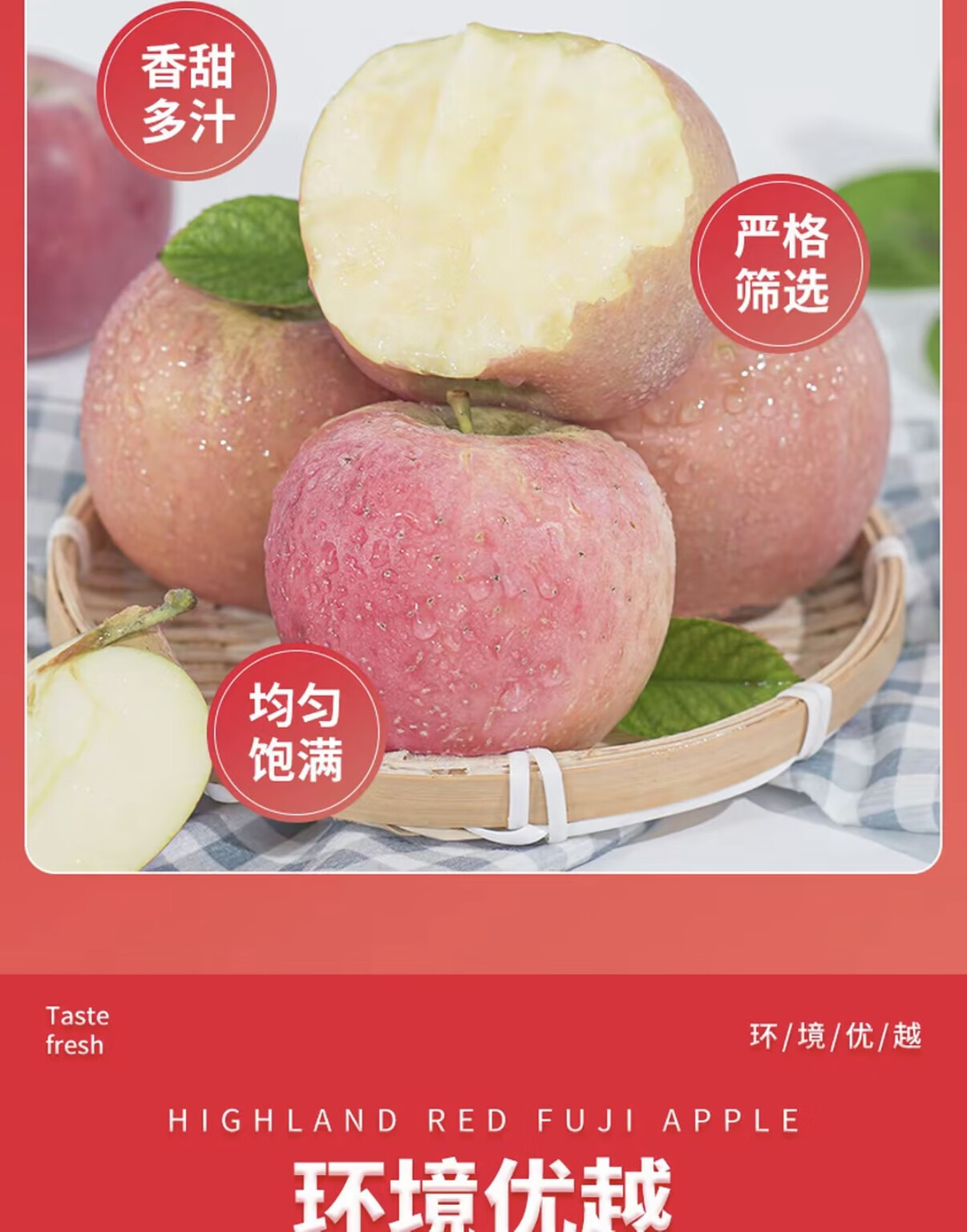 Fuji Apple Crisp and Sweet Shanxi Red Fuji Yuncheng Apple Linyi Fuji Film Bag Red Fuji Crisp, Sweet and Juicy (70mm+) With Box 1 Jin Net Weight 0.8