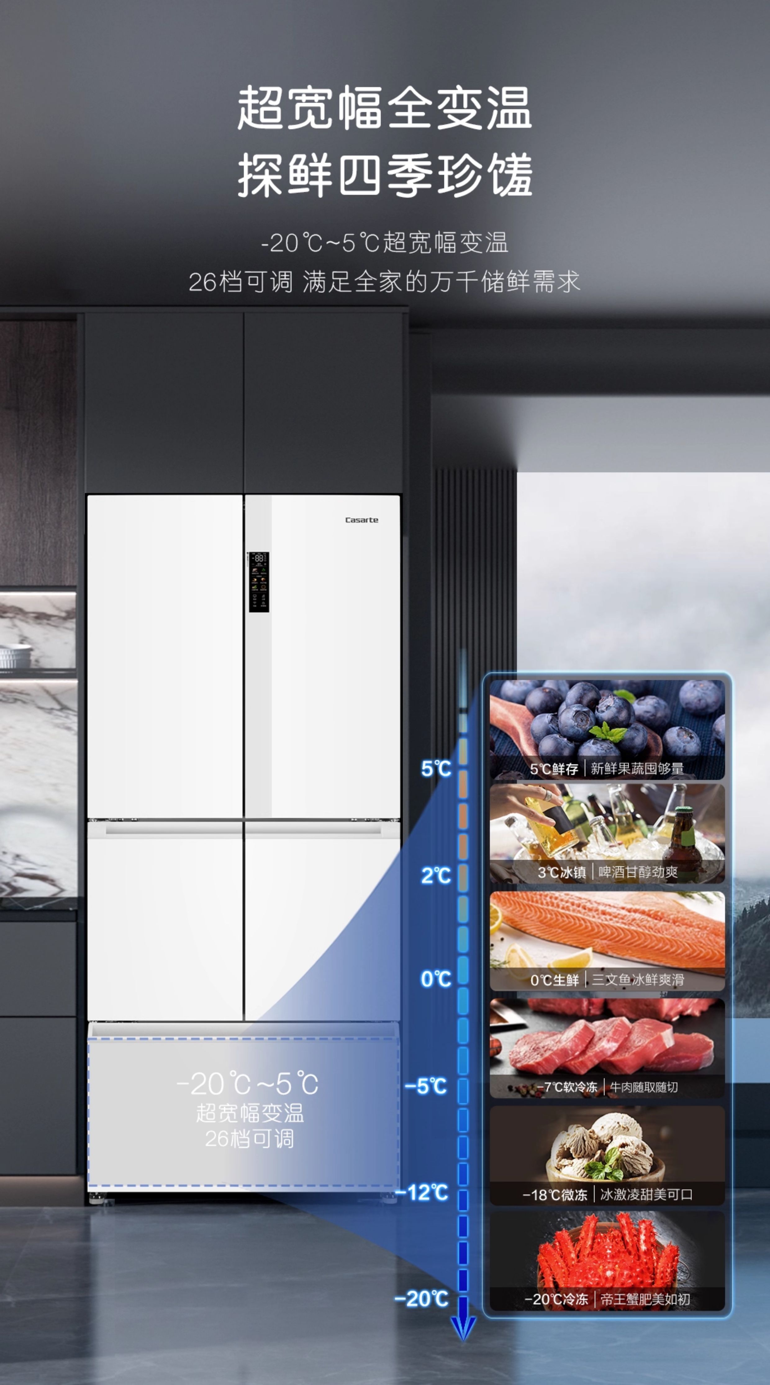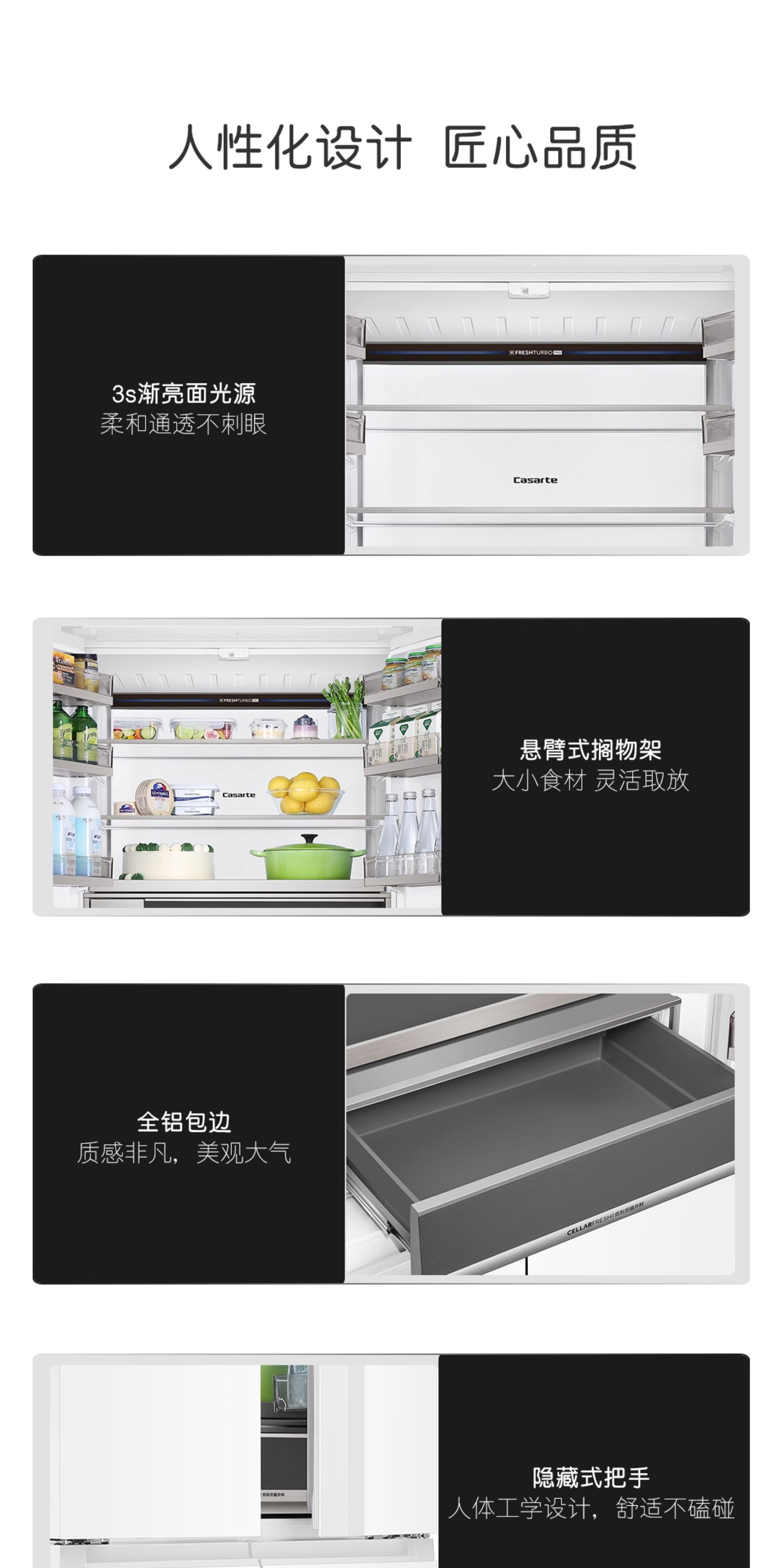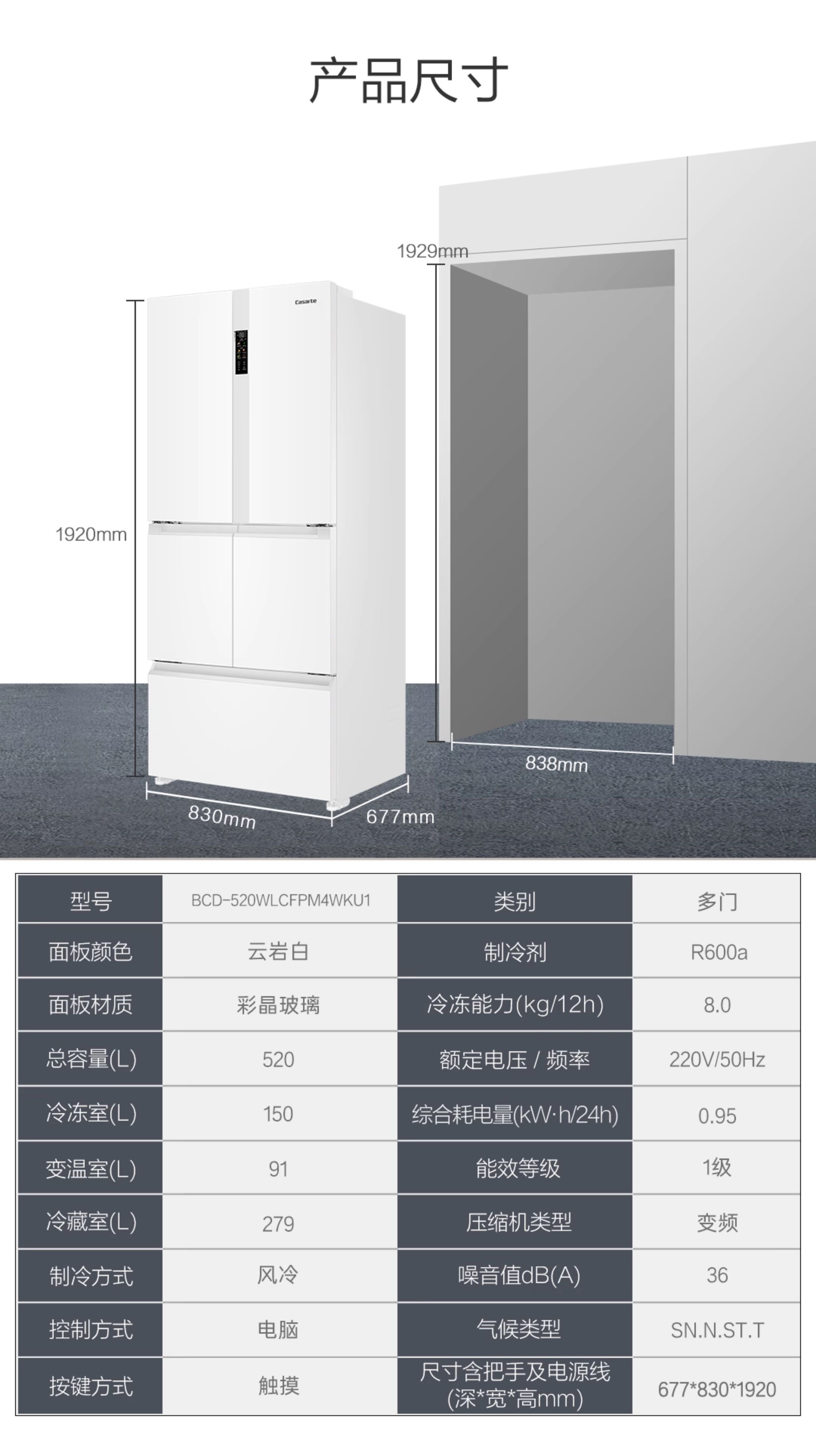 Casarte refrigerator 520L large capacity BCD-520WLCFPM4WKU double sterilization automatic ice making frequency conversion multi-door household 0L expedited delivery