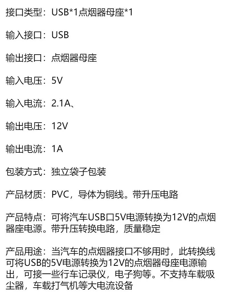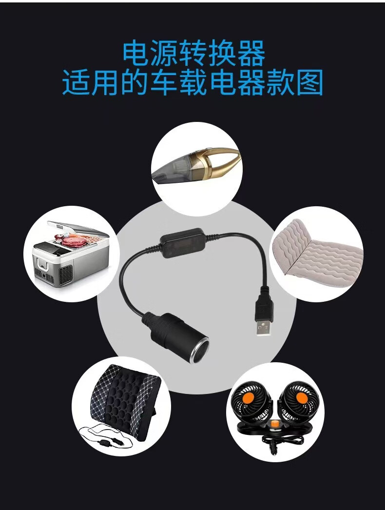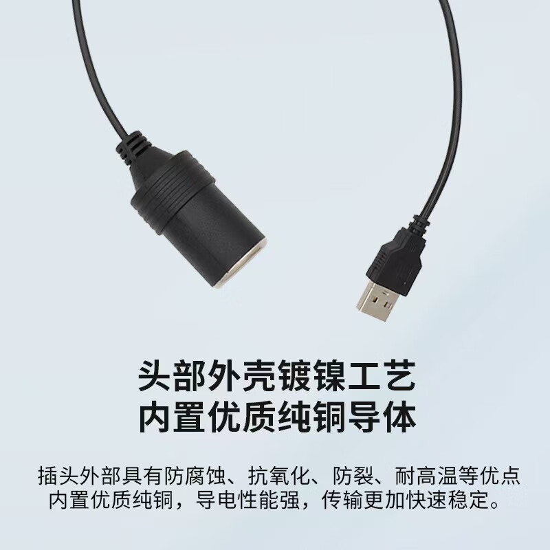 He Jiangong black thickened copper wire 5V to 12V driving recorder boost power supply USB to cigarette lighter adapter cable black