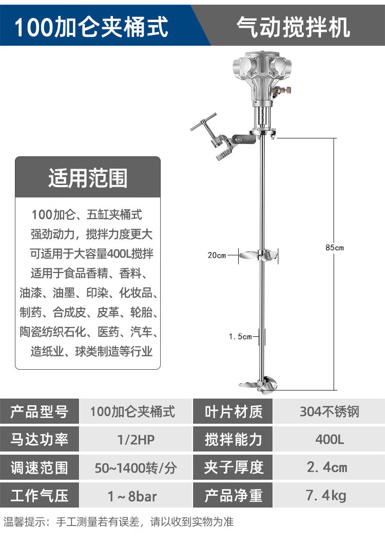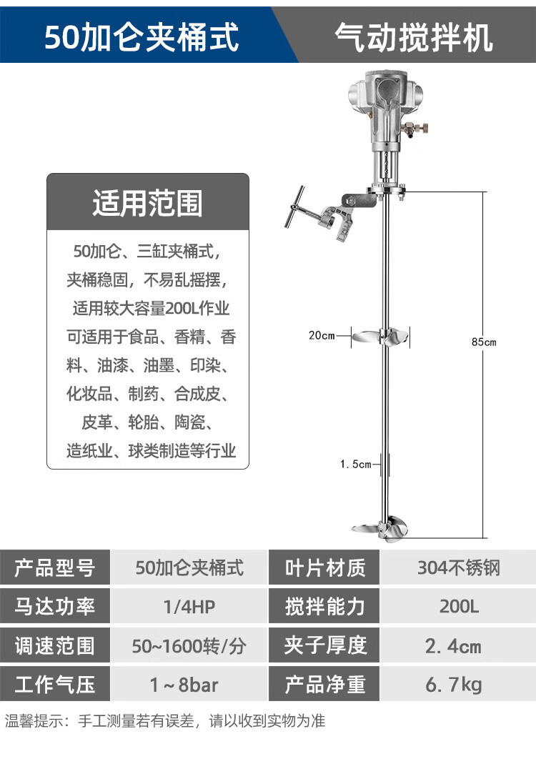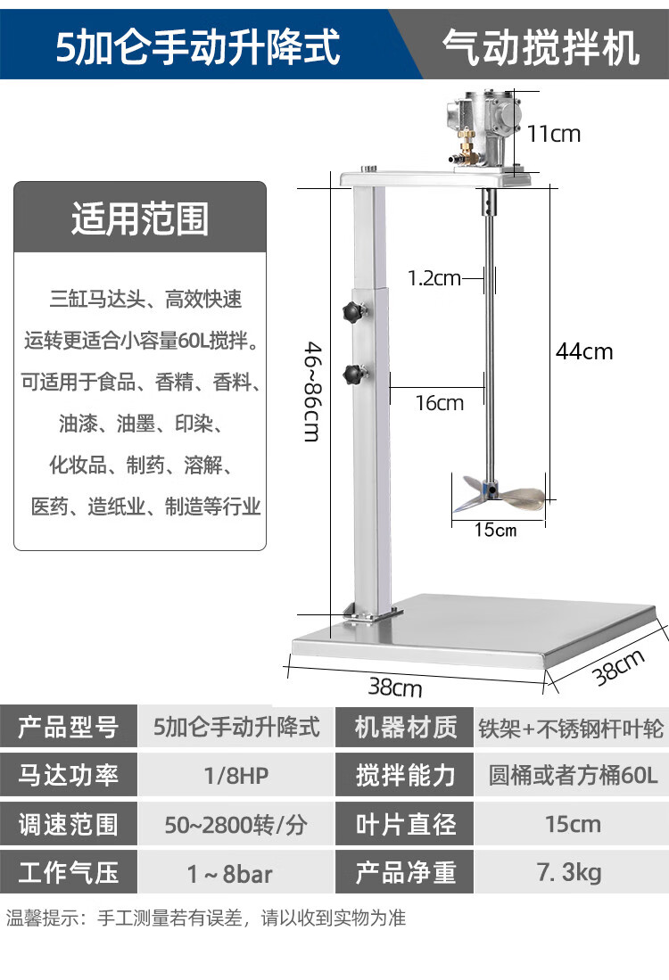 Rennan Taiwan pneumatic mixer industrial lifting paint mixer small ton barrel dispersed ink glue liquid paint 5 gallons automatic lifting aluminum alloy