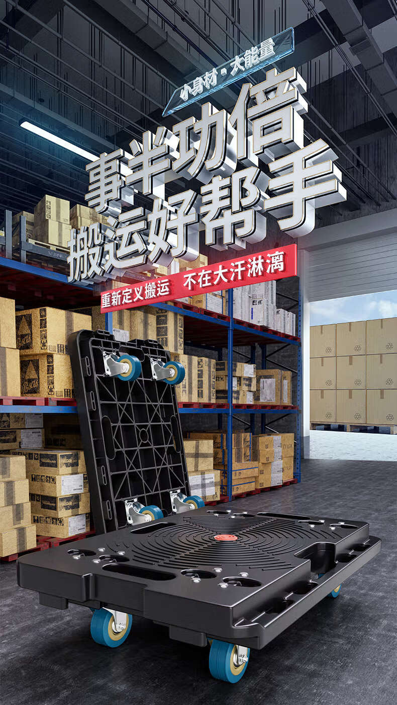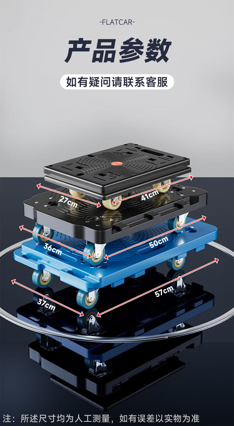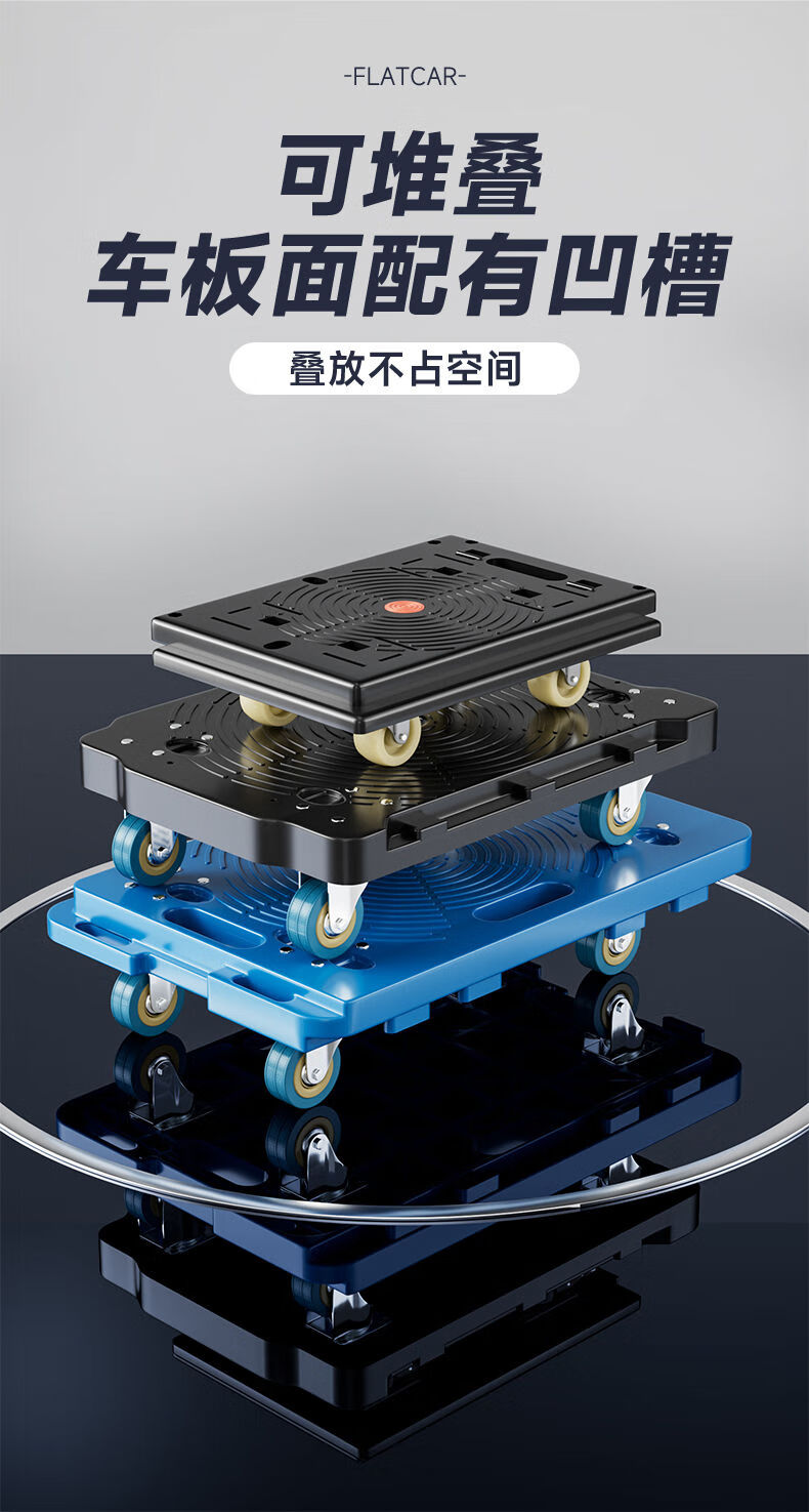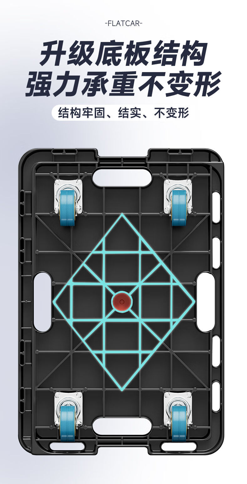 DELIXI ELECTRIC turtle cart can be spliced into turnover cart Beiguang household silent cart transport cart small cart universal flatbed truck tray brand new material medium blue 50*37/3 inch micro-sound wheel