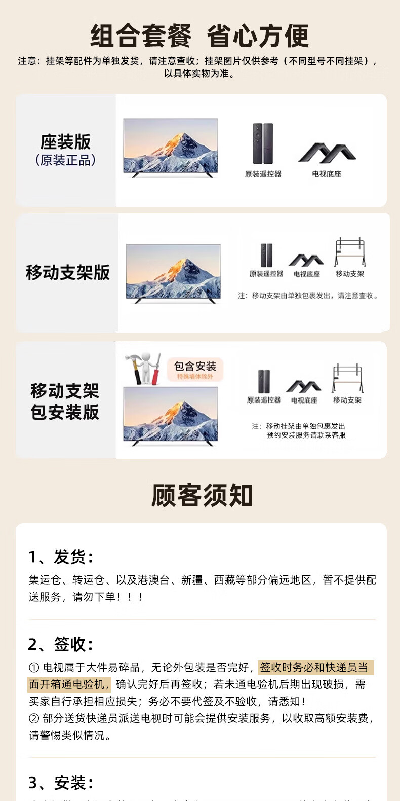 Mijia TV 55/65/75-inch movable TV RedmiA32/43/50 vertical sliding floor-standing TV 0 inches /RedmiA32-inch TV + mobile floor stand + door installation 0 inches