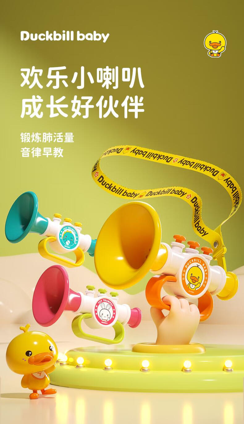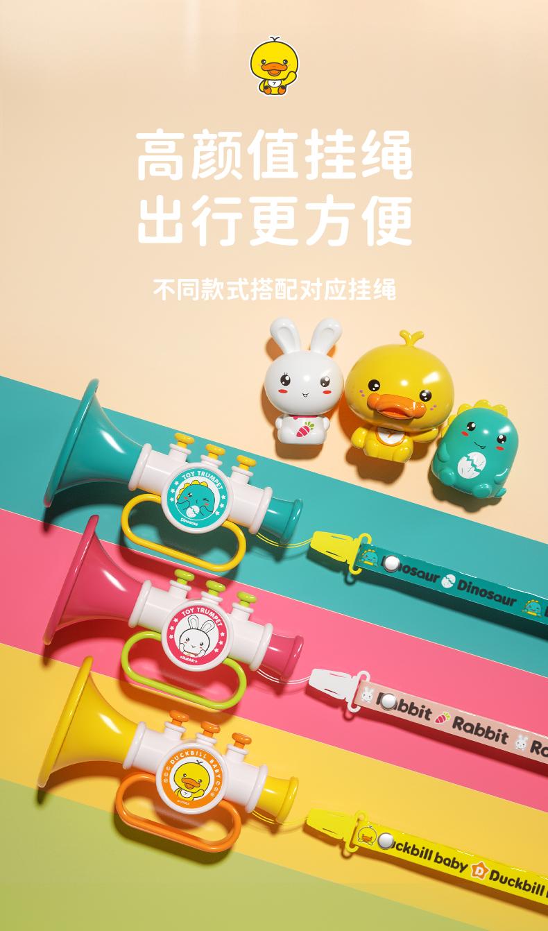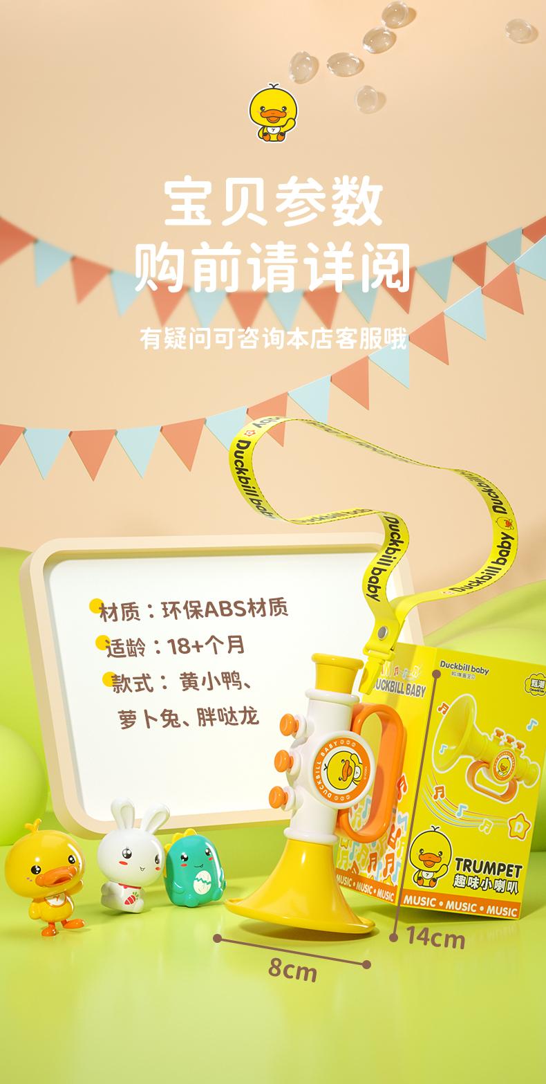 Yellow duck trumpet children's toy blowing music baby can play mini harmonica baby trumpet whistle instrument pink rabbit upgraded color box version with lanyard