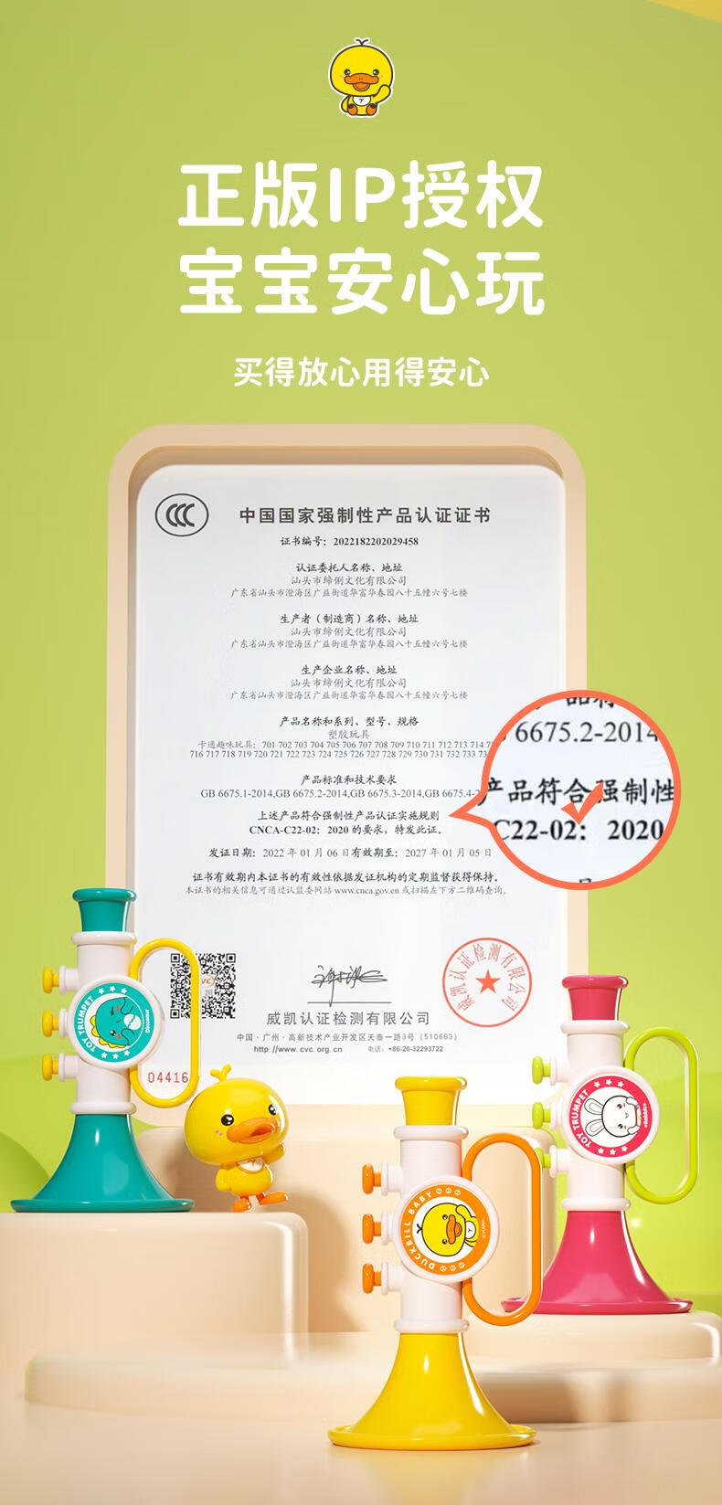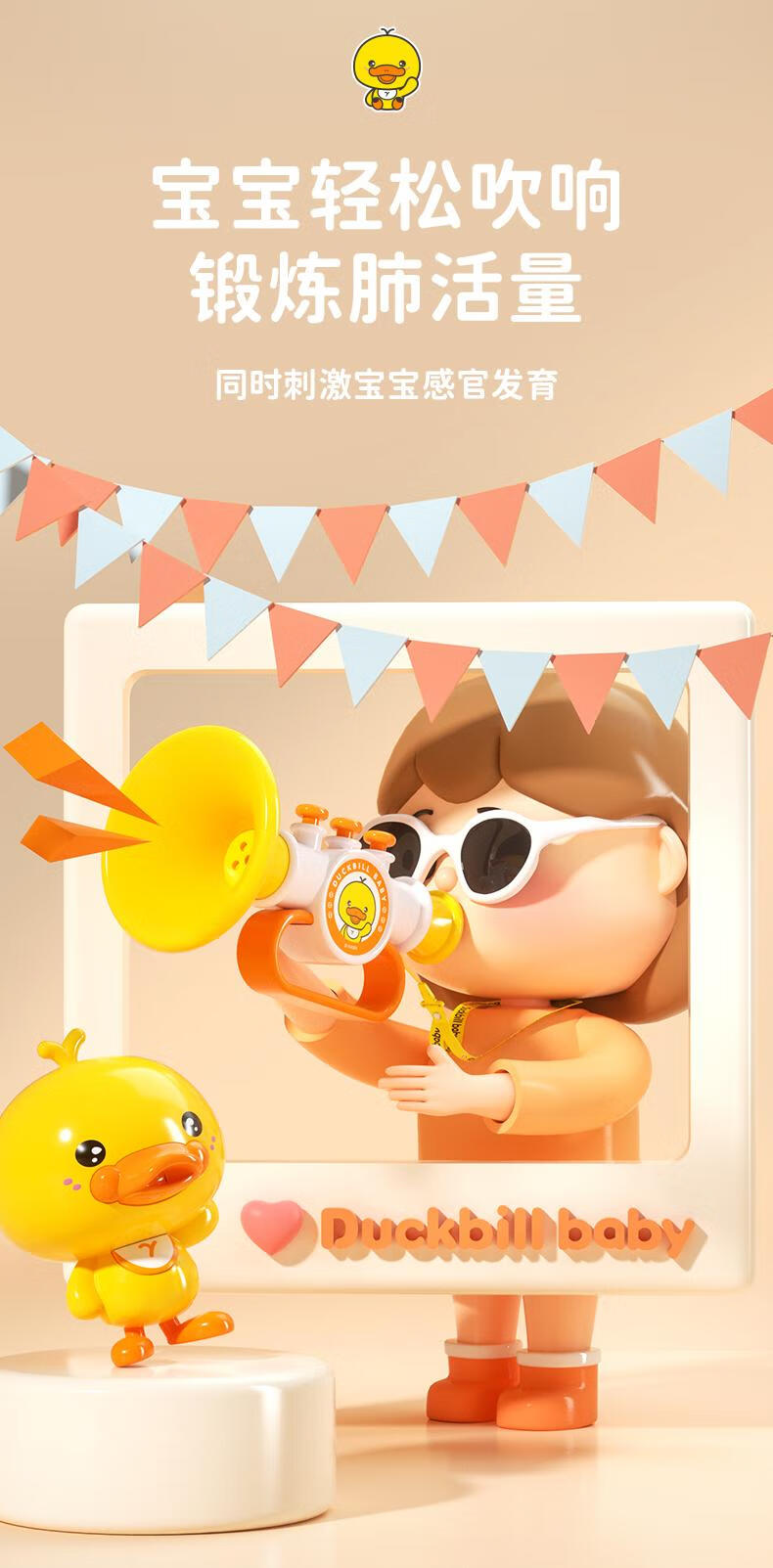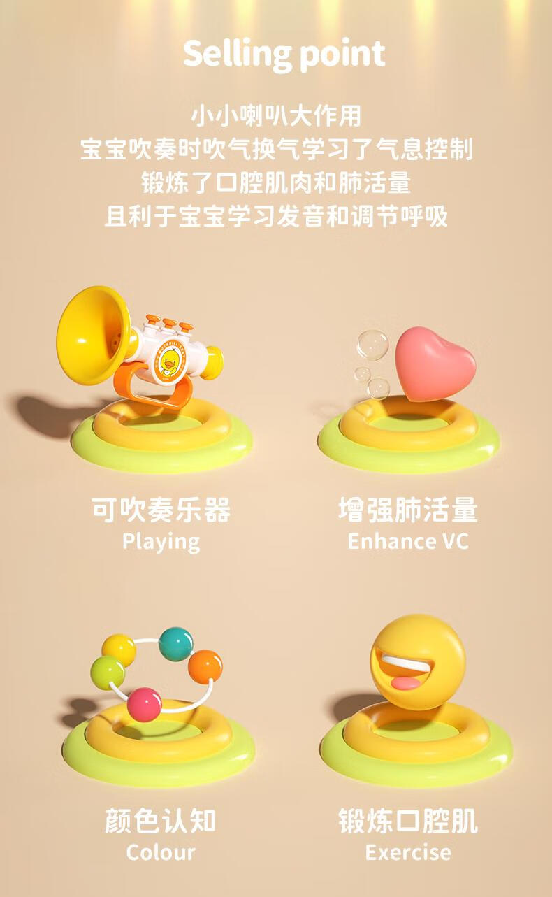 Yellow duck trumpet children's toy blowing music baby can play mini harmonica baby trumpet whistle instrument pink rabbit upgraded color box version with lanyard