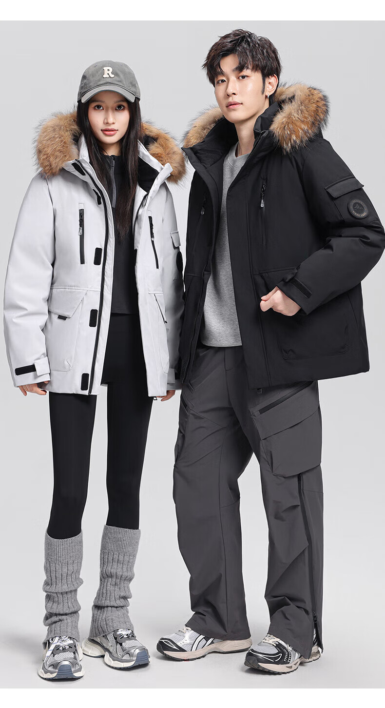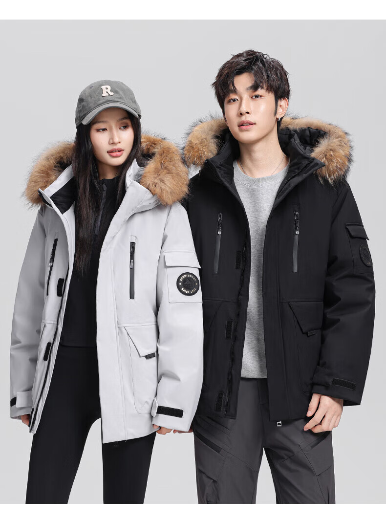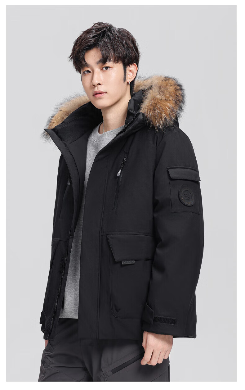 Yaya (YAYA) down jacket men's short 2025 latest large fur collar mink fur thickened workwear cold-proof parka jacket top black L /175