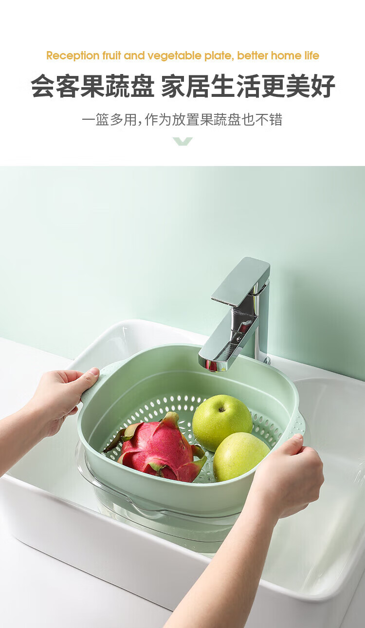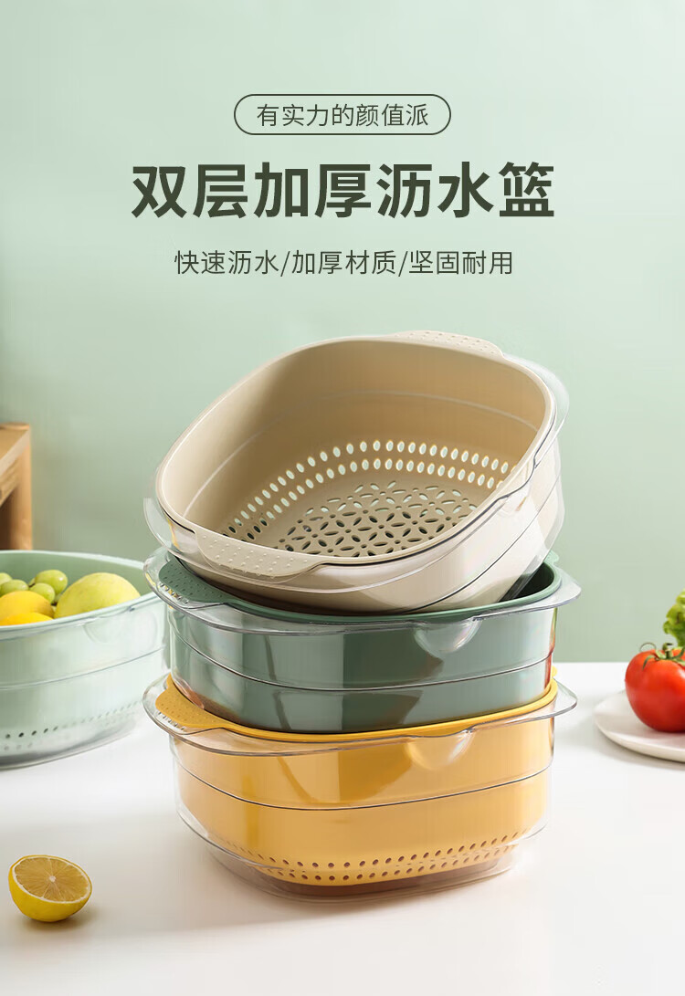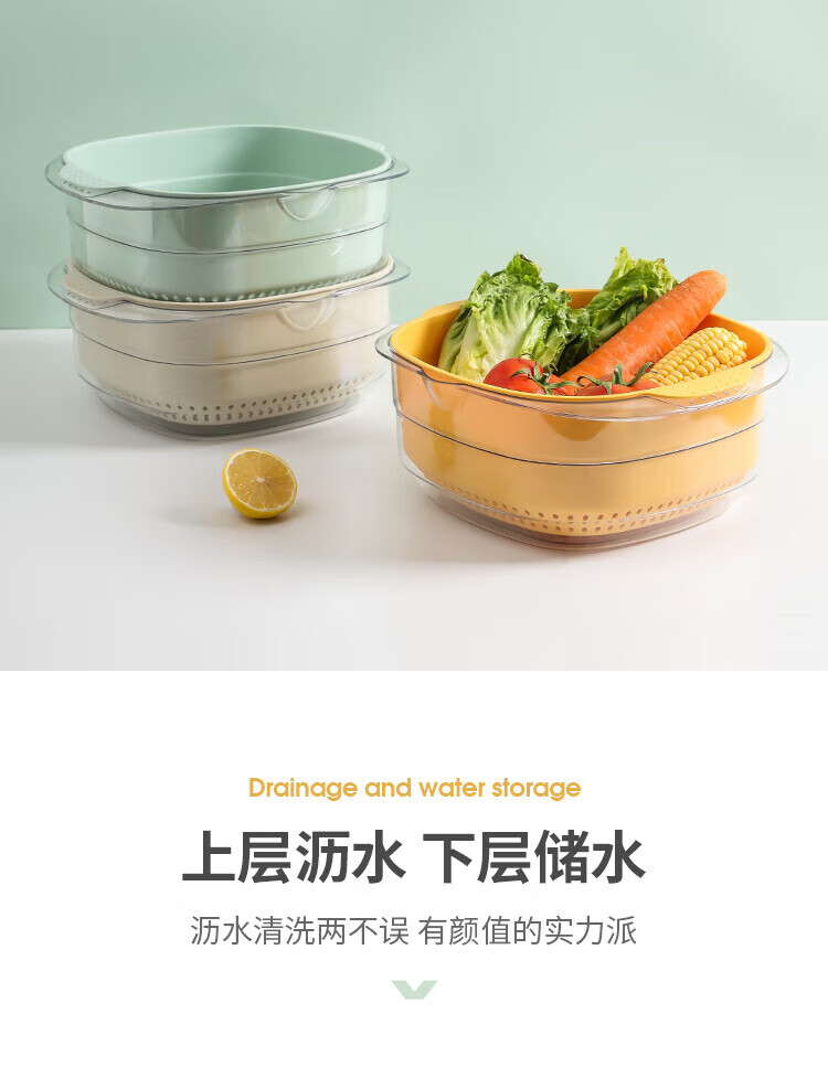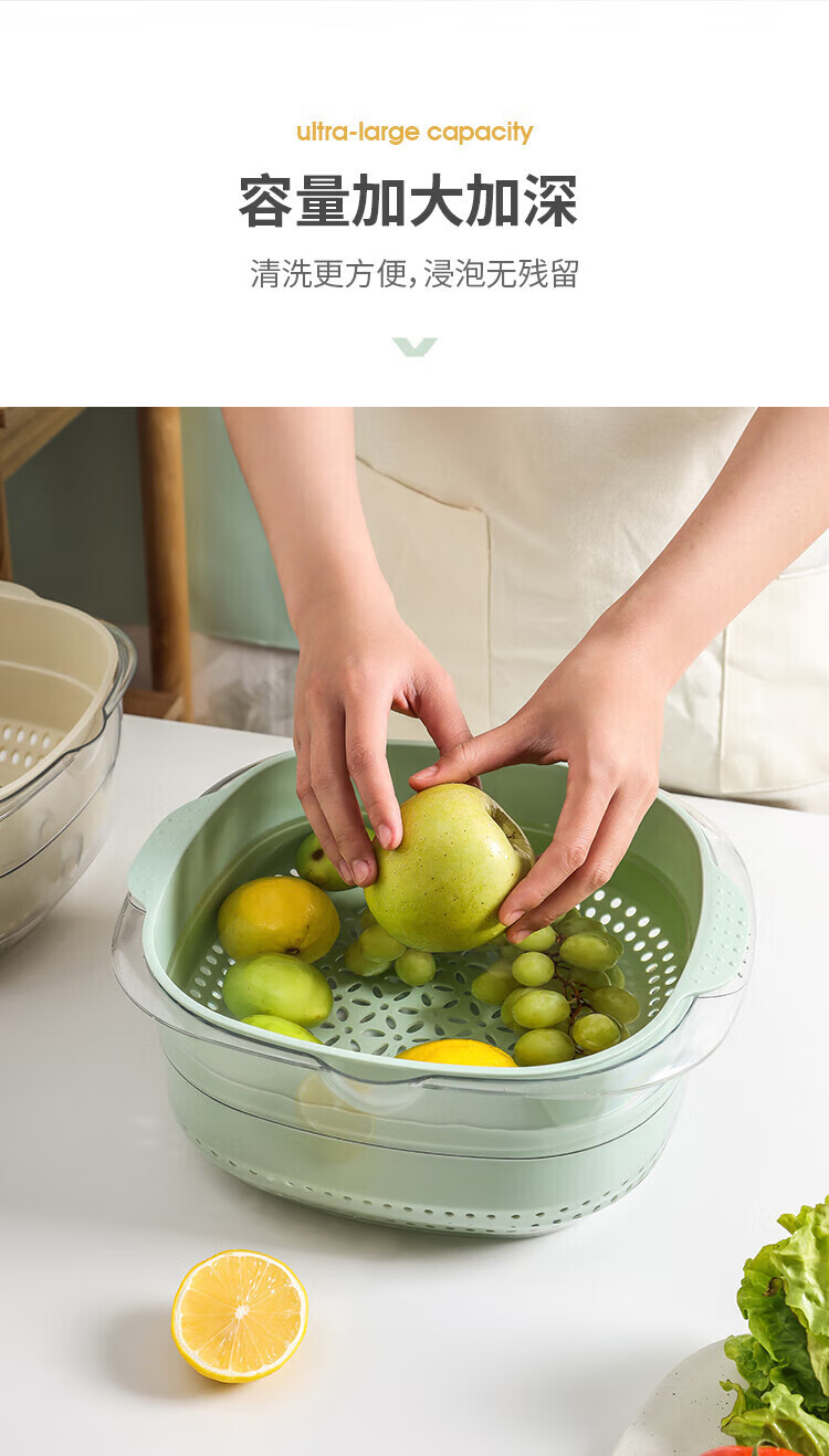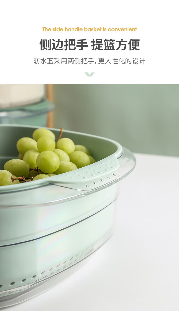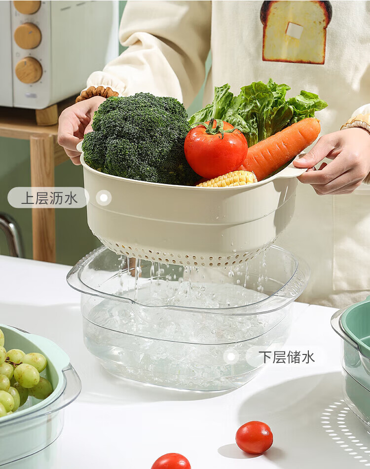 Meitu Kitchen Wash Basket Drain Basket Plastic Double Layer Wash Basin Kitchen Drainage Basket Wash Fruit Plate Vegetable Basket Drain Basket Transparent Gray White Large MCPJ7729