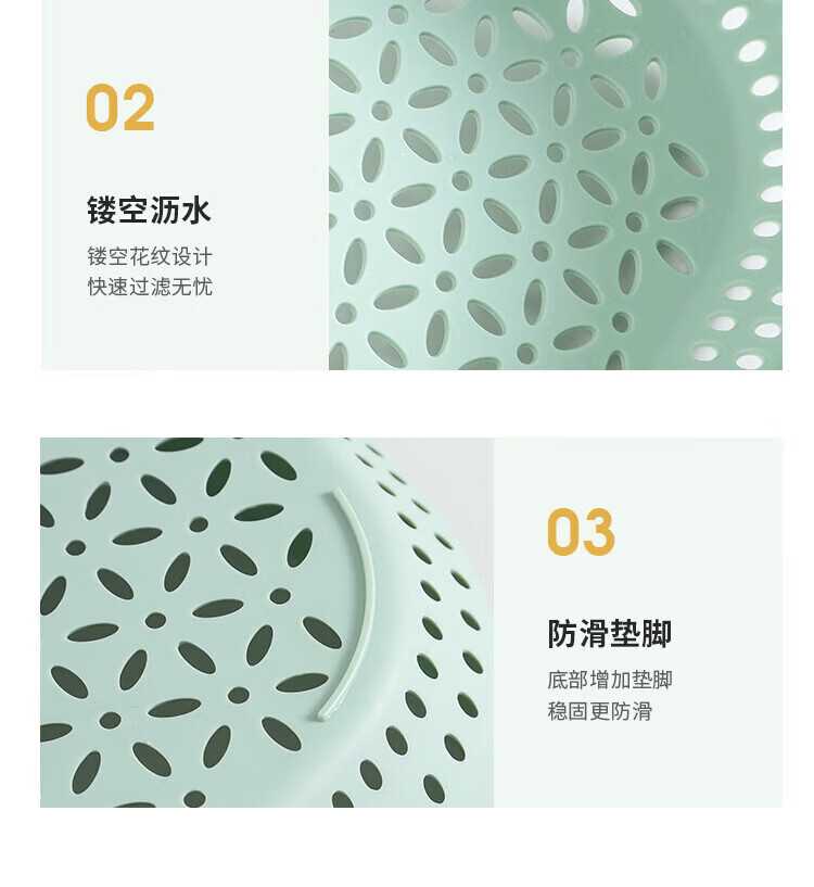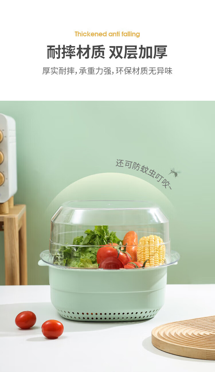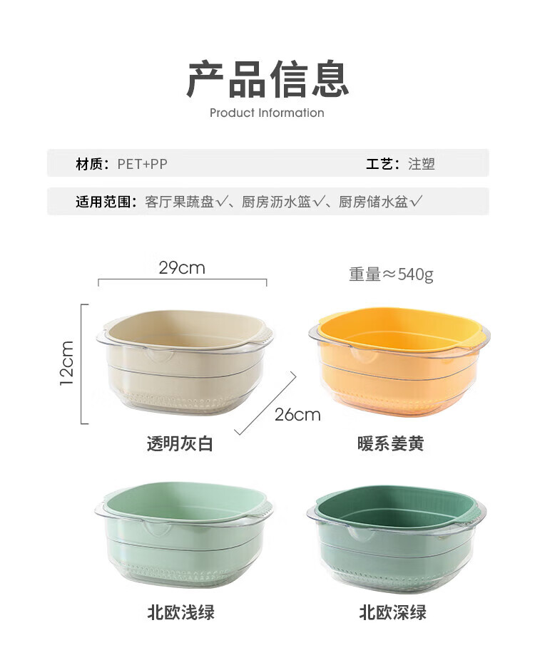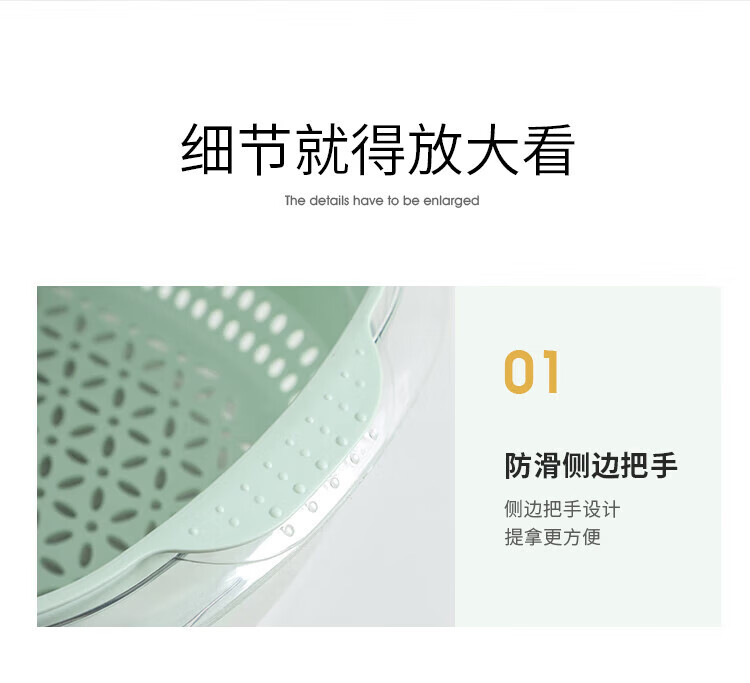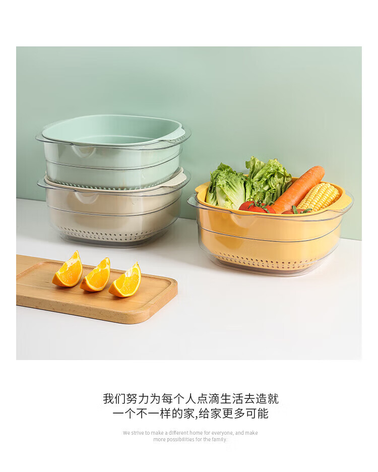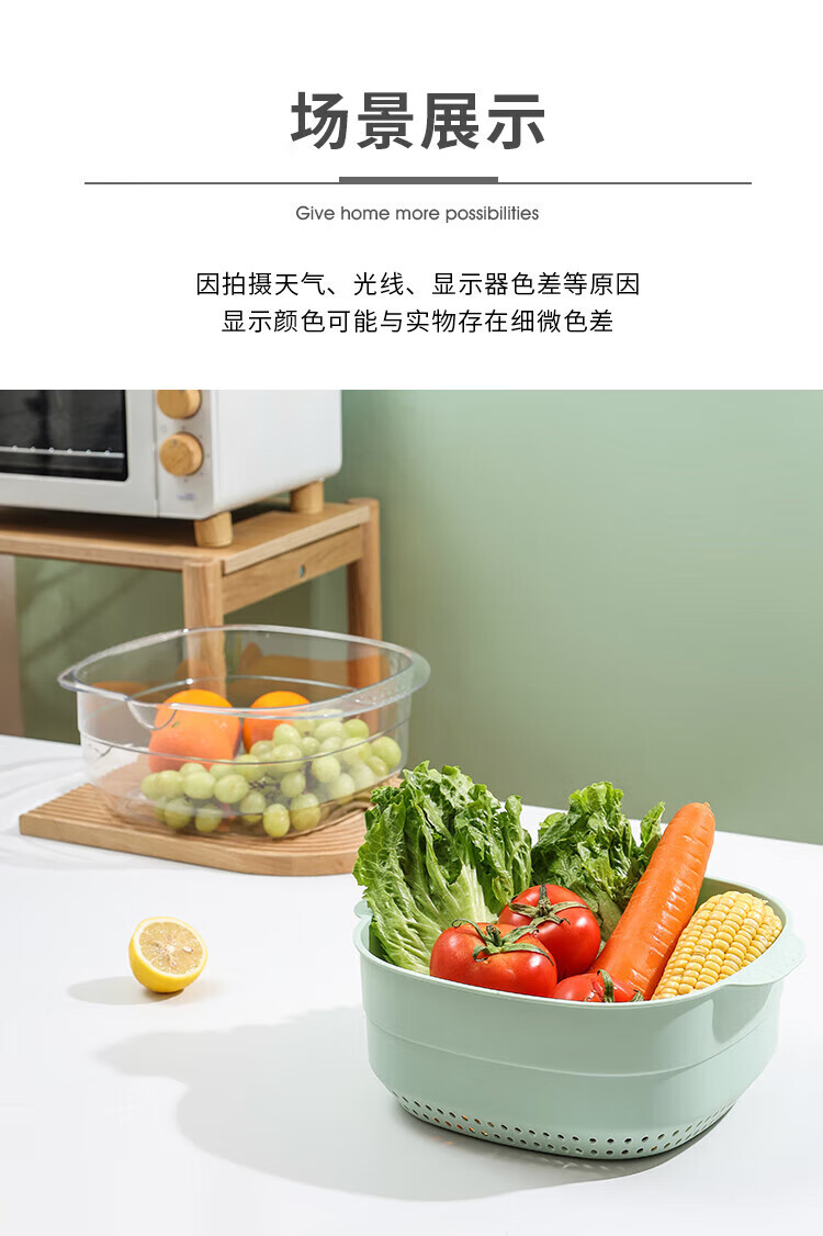 Meitu Kitchen Wash Basket Drain Basket Plastic Double Layer Wash Basin Kitchen Drainage Basket Wash Fruit Plate Vegetable Basket Drain Basket Transparent Gray White Large MCPJ7729