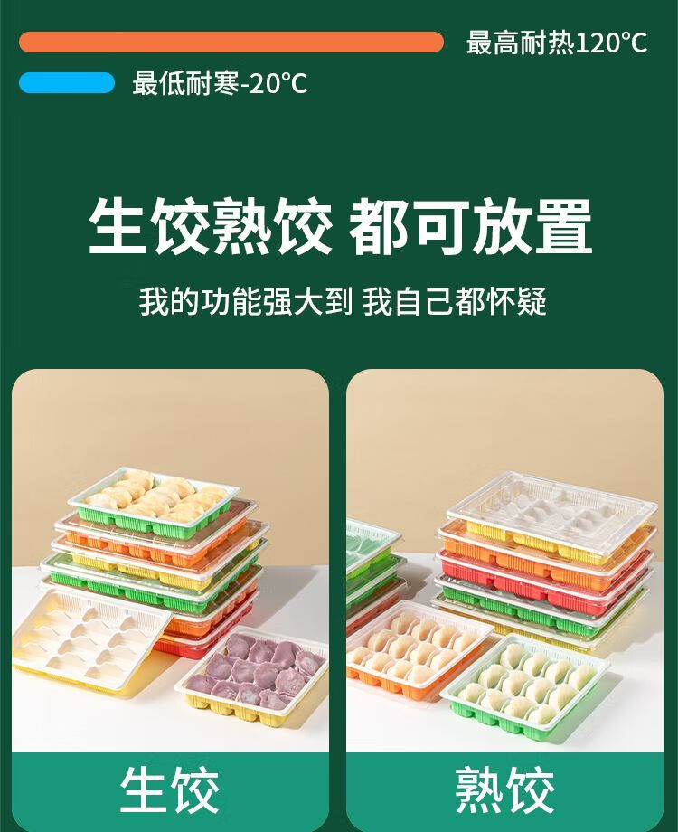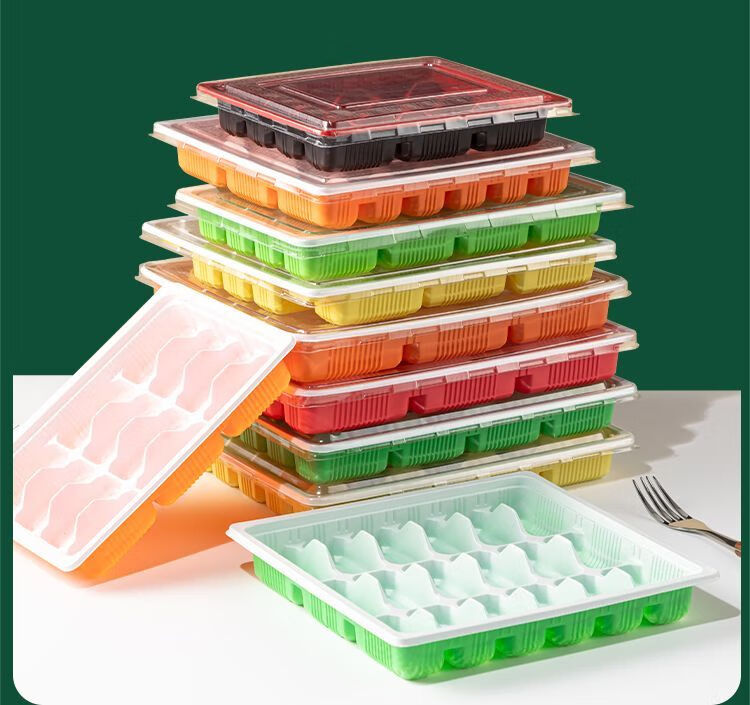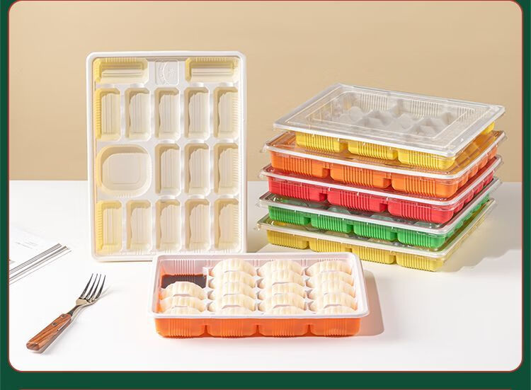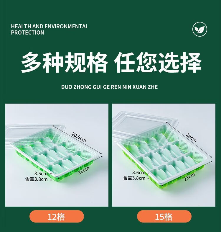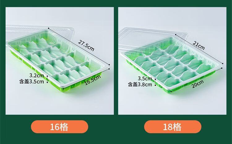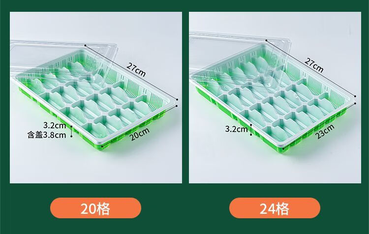 FANCYCHIC disposable dumpling box take-out special packaging box frozen compartment commercial raw dumpling box quick-frozen box 20 grid green and white with lid 400 sets with lid
