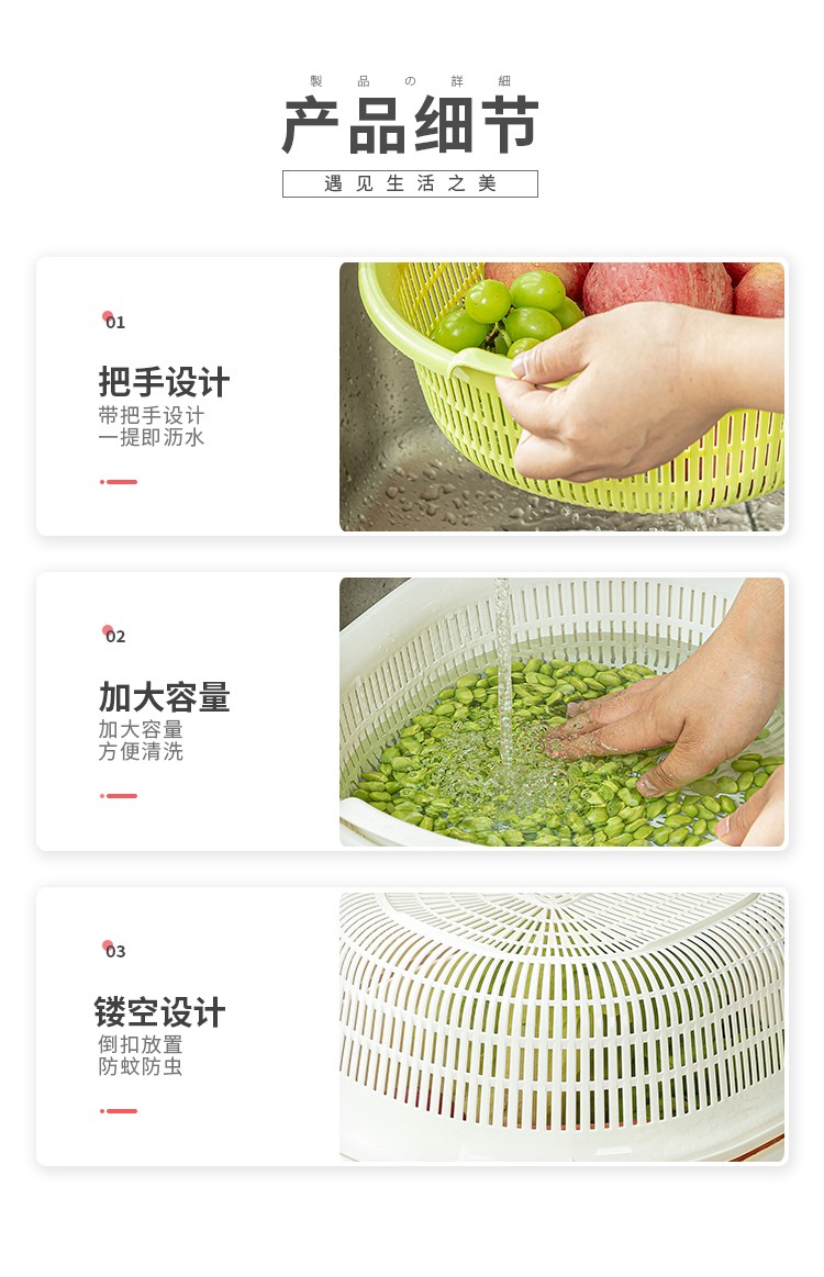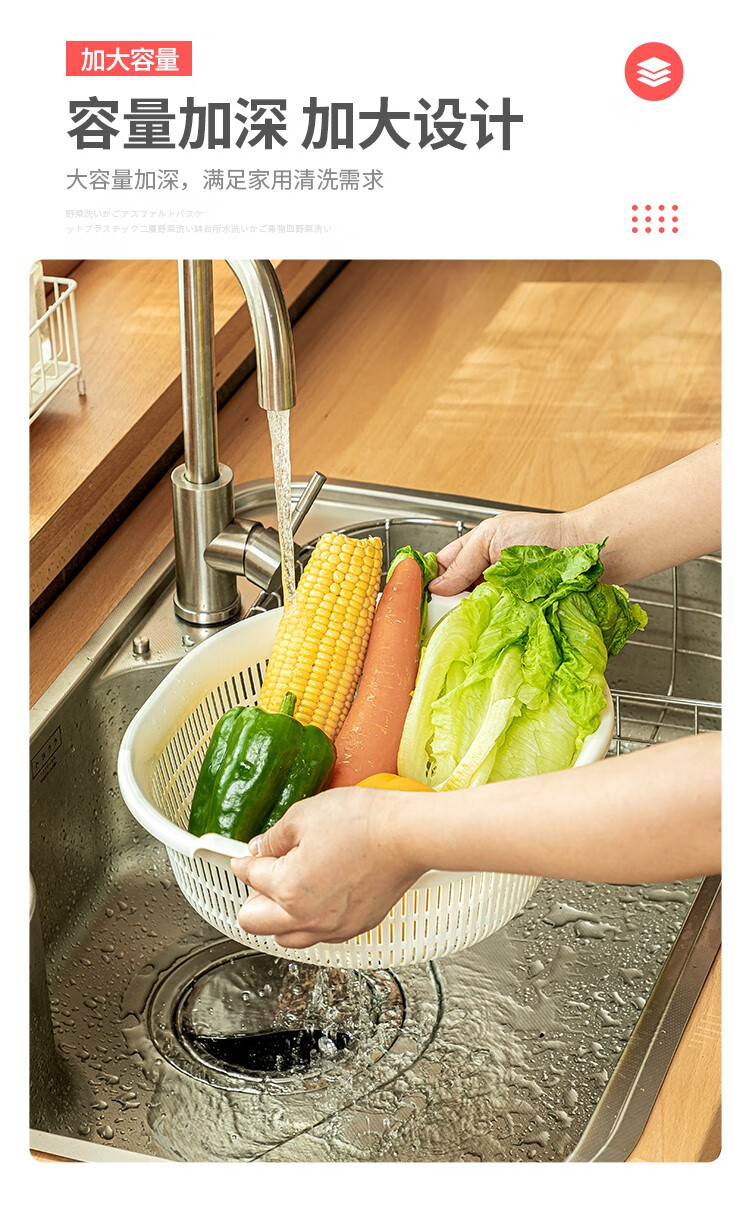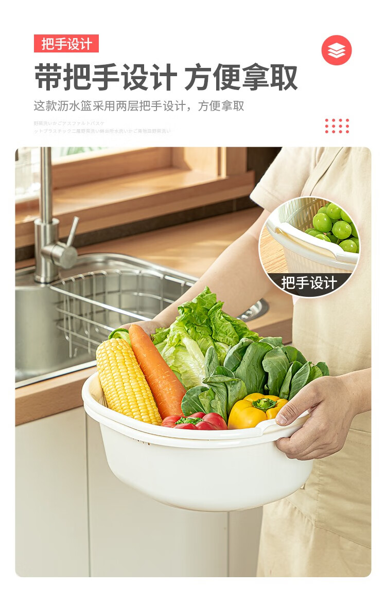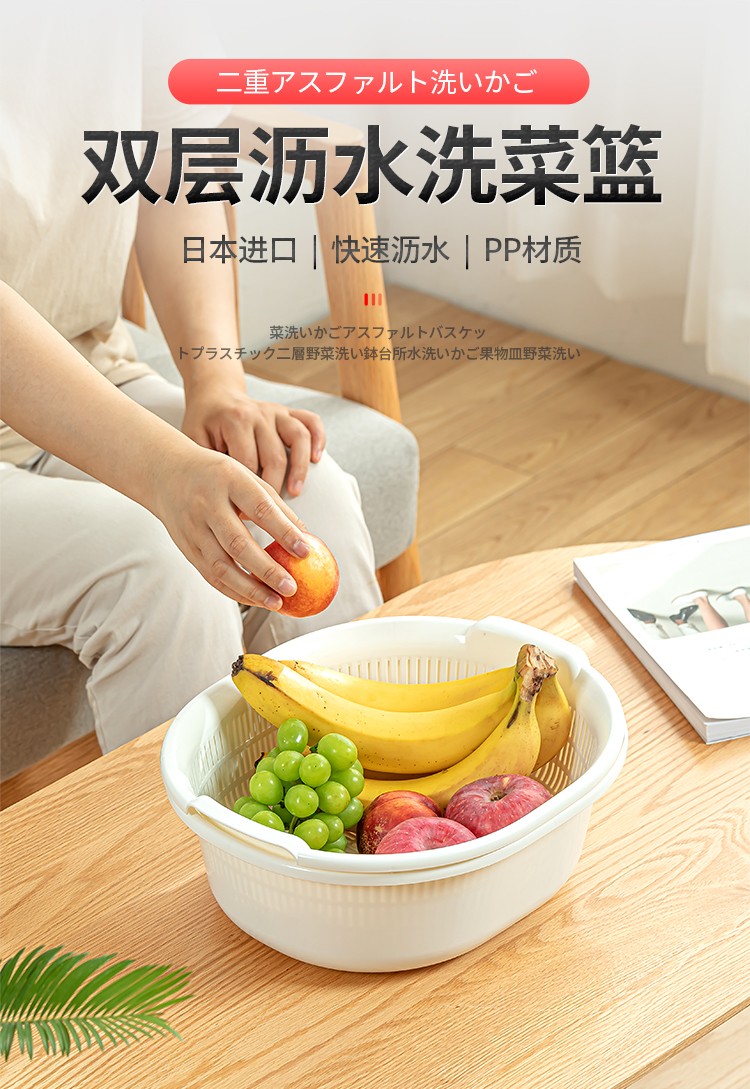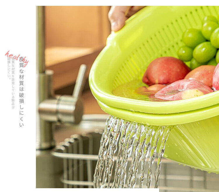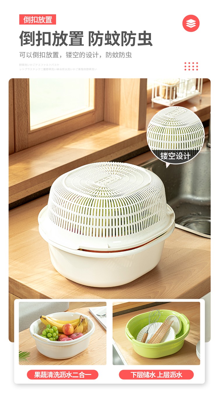 Sungsa Japan imported double-layer plastic sink large vegetable basket fruit basket kitchen hollow draining dish storage basket green set basin + draining basket