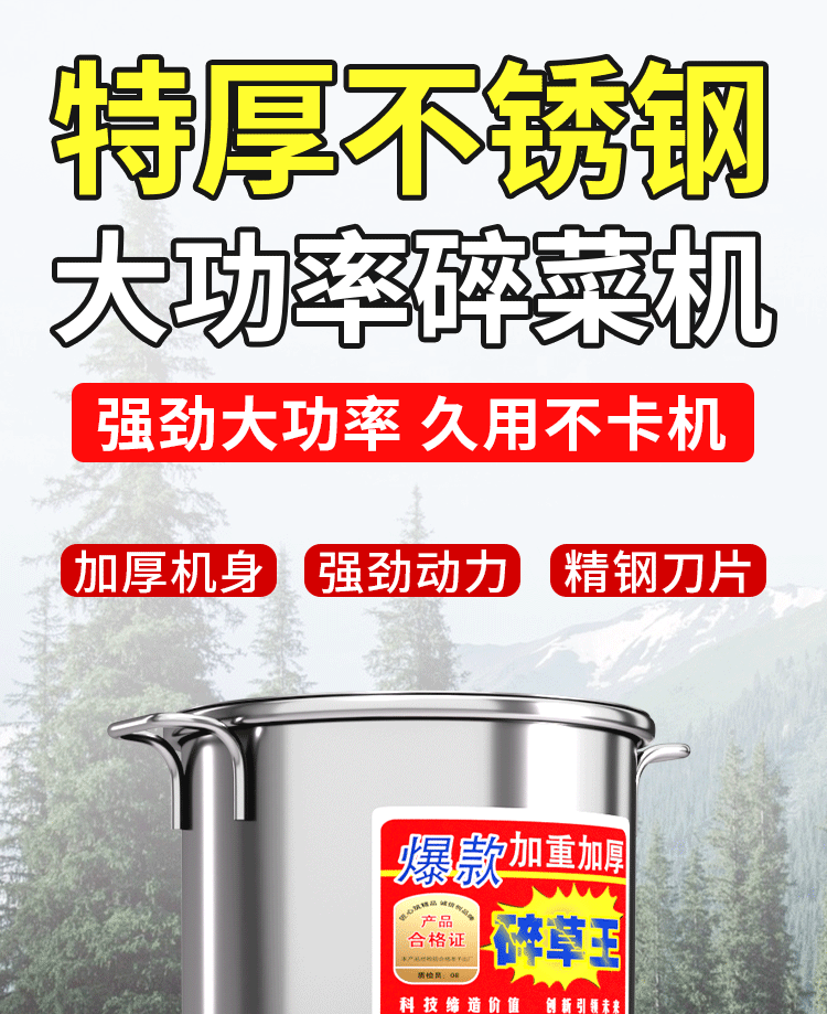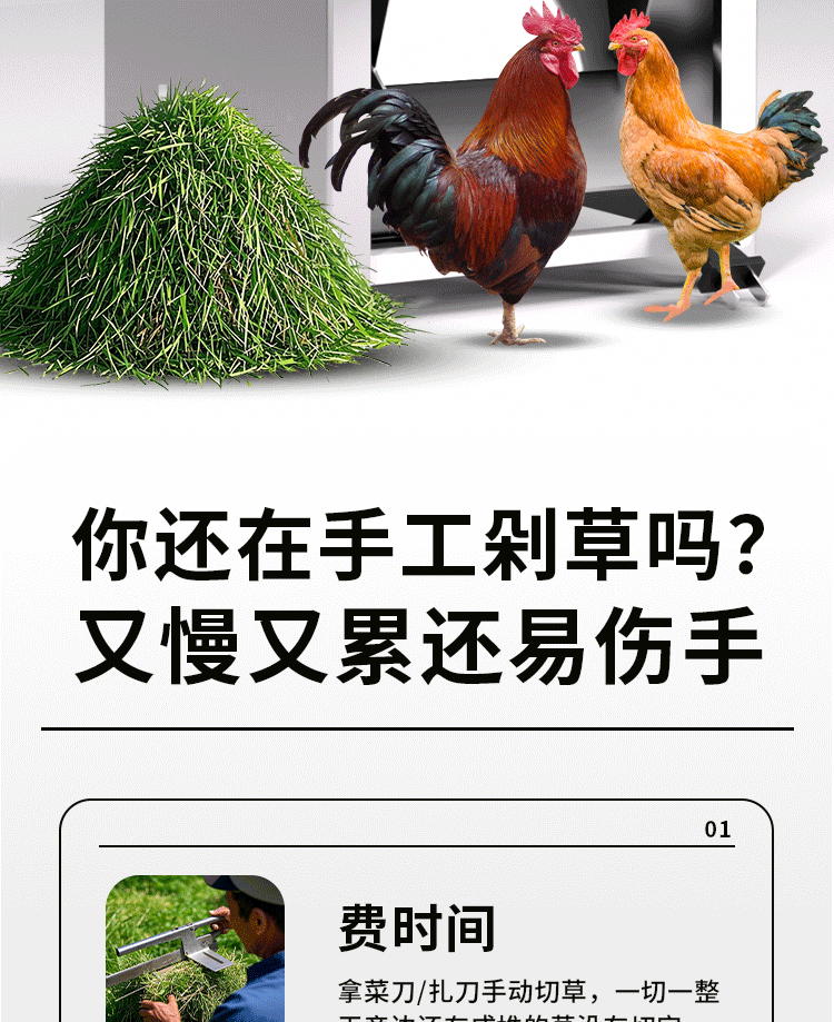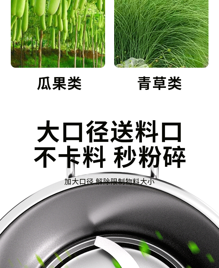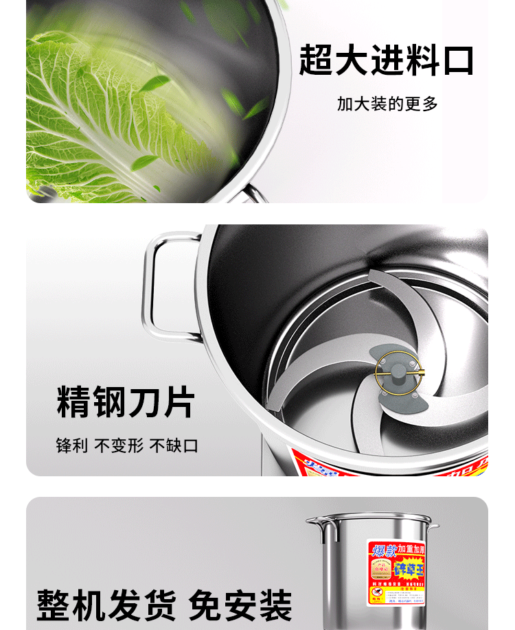 Grass cutter grinder for feeding chickens, ducks, geese and pigs, household high-power vegetable shredder, feeding chickens, pigs, grass cutting machine, hay cutter, installation-free 2400W copper core motor, stainless steel, free spare tool
