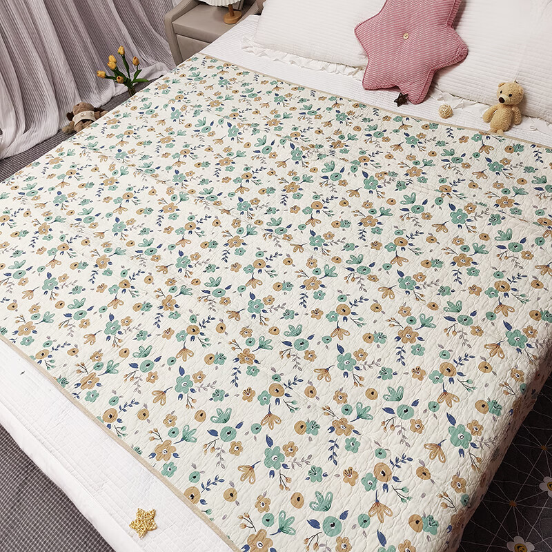 Shantou Lincun double-sided pure cotton bed cover quilted tatami non-slip non-slip bed sheet pure cotton quilted mattress kang cover universal for all seasons gray small grid double-sided pure cotton high-temperature washing process 150x200CM single piece