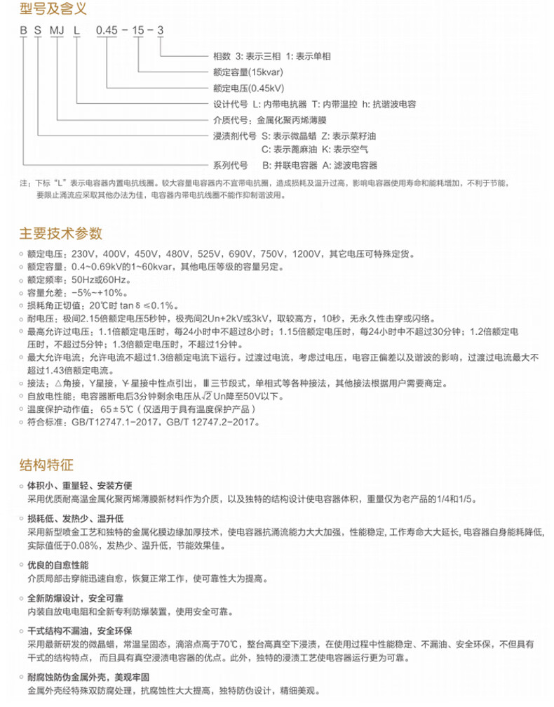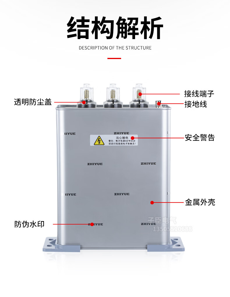 Zhiyue reactive power compensation self-healing capacitor BSMJ0.4 0.45-15-3 low-voltage parallel power compensator BSMJ0.45-60-3