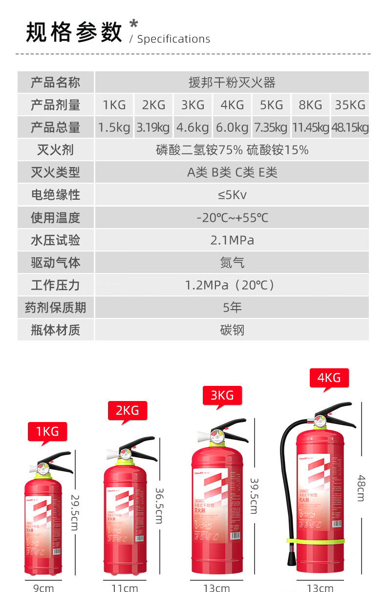 Yuanbang 2025 New National Standard Dry Powder Fire Extinguisher 4kg Fire Fighting Commercial Household Portable 1kg 2kg Store Warehouse Factory 35KG Fire Extinguisher 2025 New National Standard