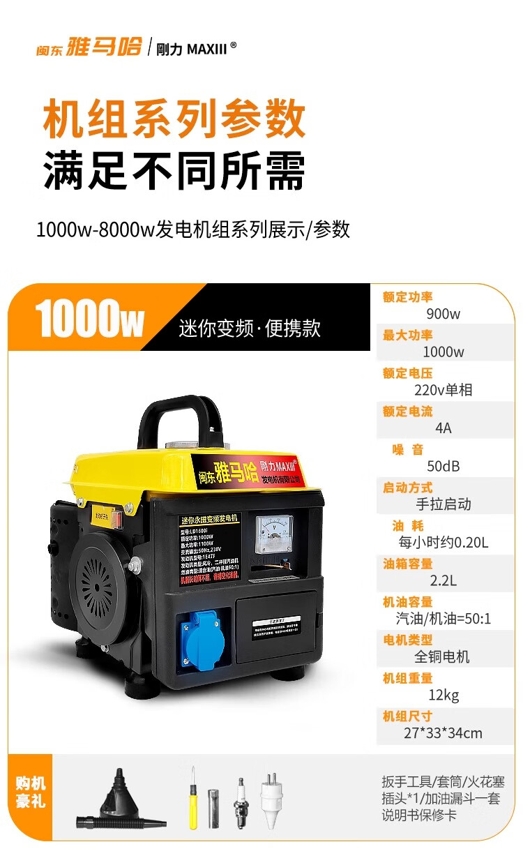Yamaha gasoline generator 220V household frequency conversion silent portable outdoor car small mini portable emergency 650W gasoline mixed oil 220v general lighting