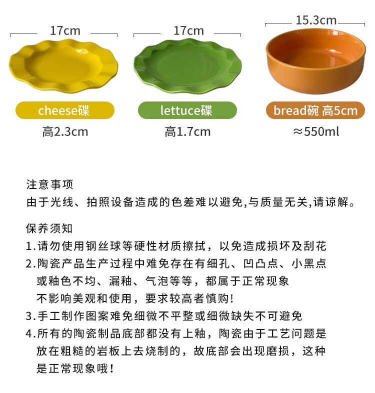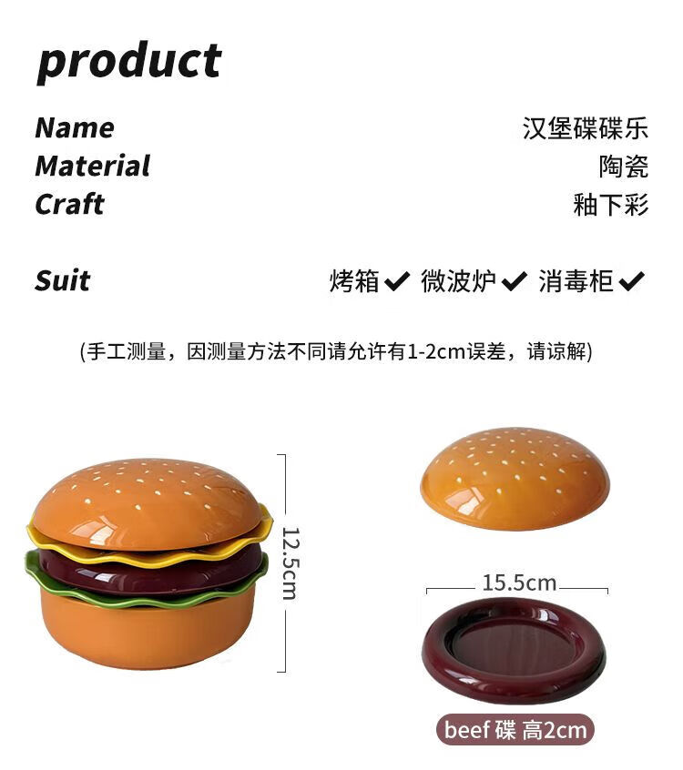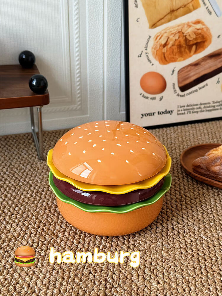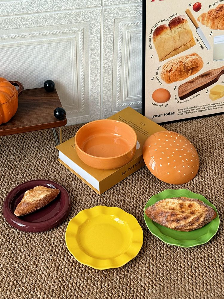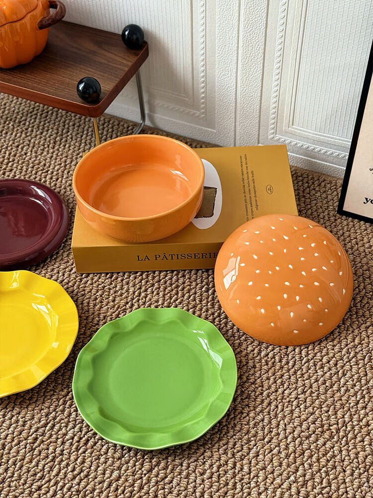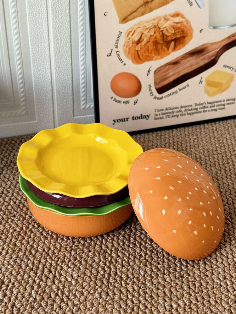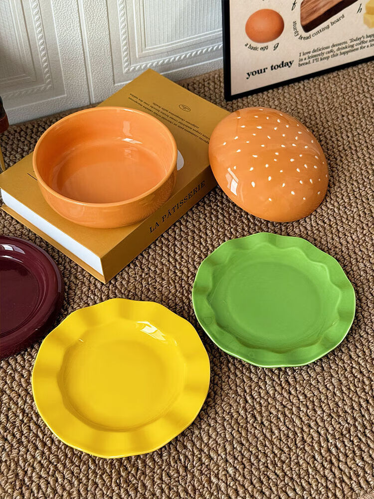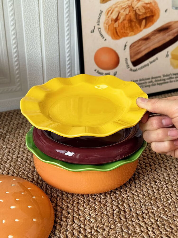 FANCYCHIC burger tableware for one person, ceramic underglaze color, high-value single bowl, creative plate and dish set for one person, burger tableware for one person, five-piece set