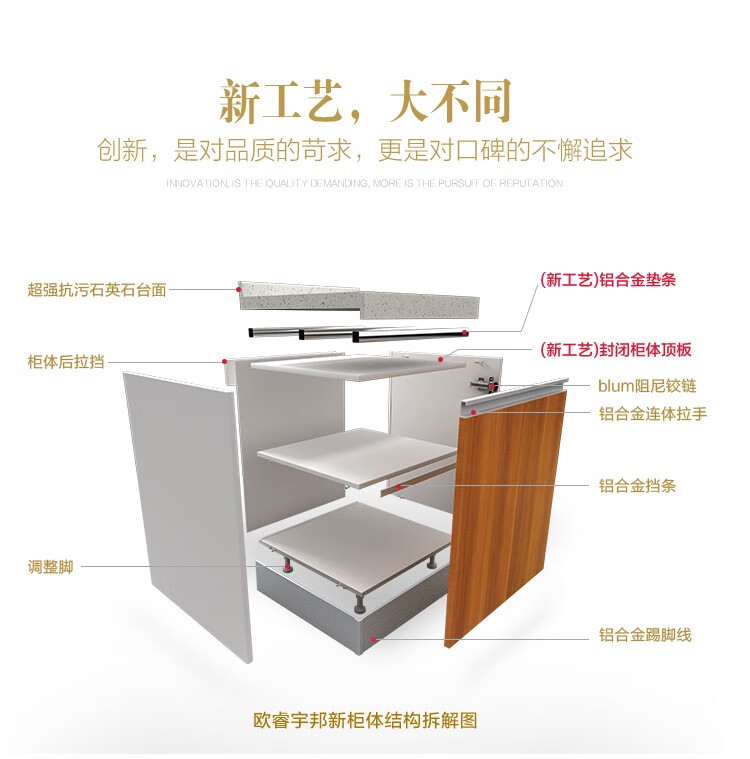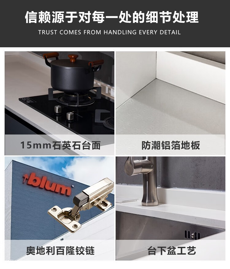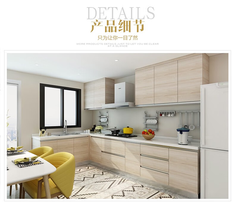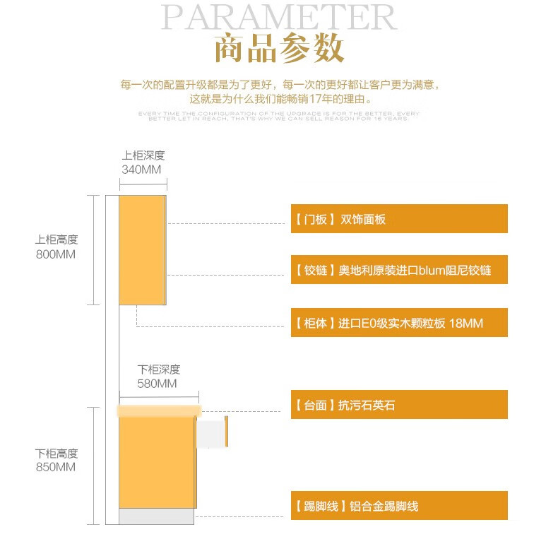 Shanghai modern simple and economical custom-made quartz stone countertop kitchen cabinets Euromonitor Yubang factory customized cabinets 1 meter base cabinet + 0.5 meter wall cabinet