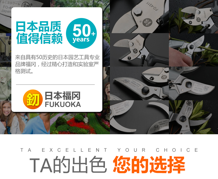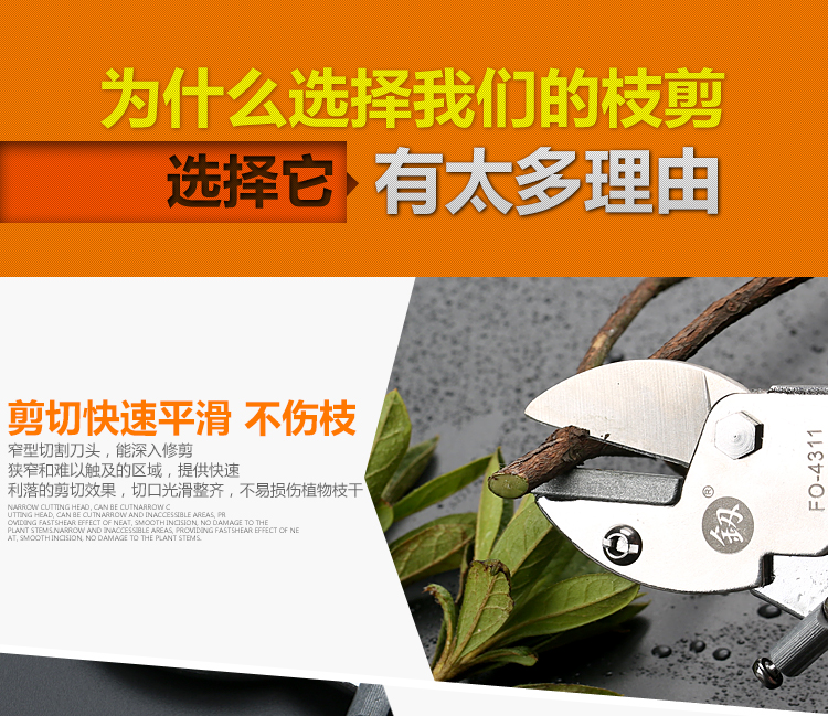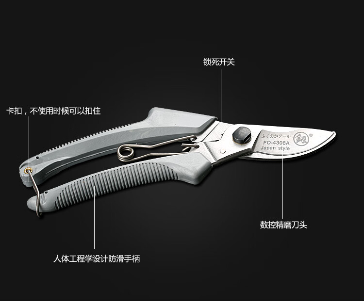果树剪刀好工具日式福冈粗枝剪果树剪刀花卉植物园艺修剪家用 FO-4312精品园林剪