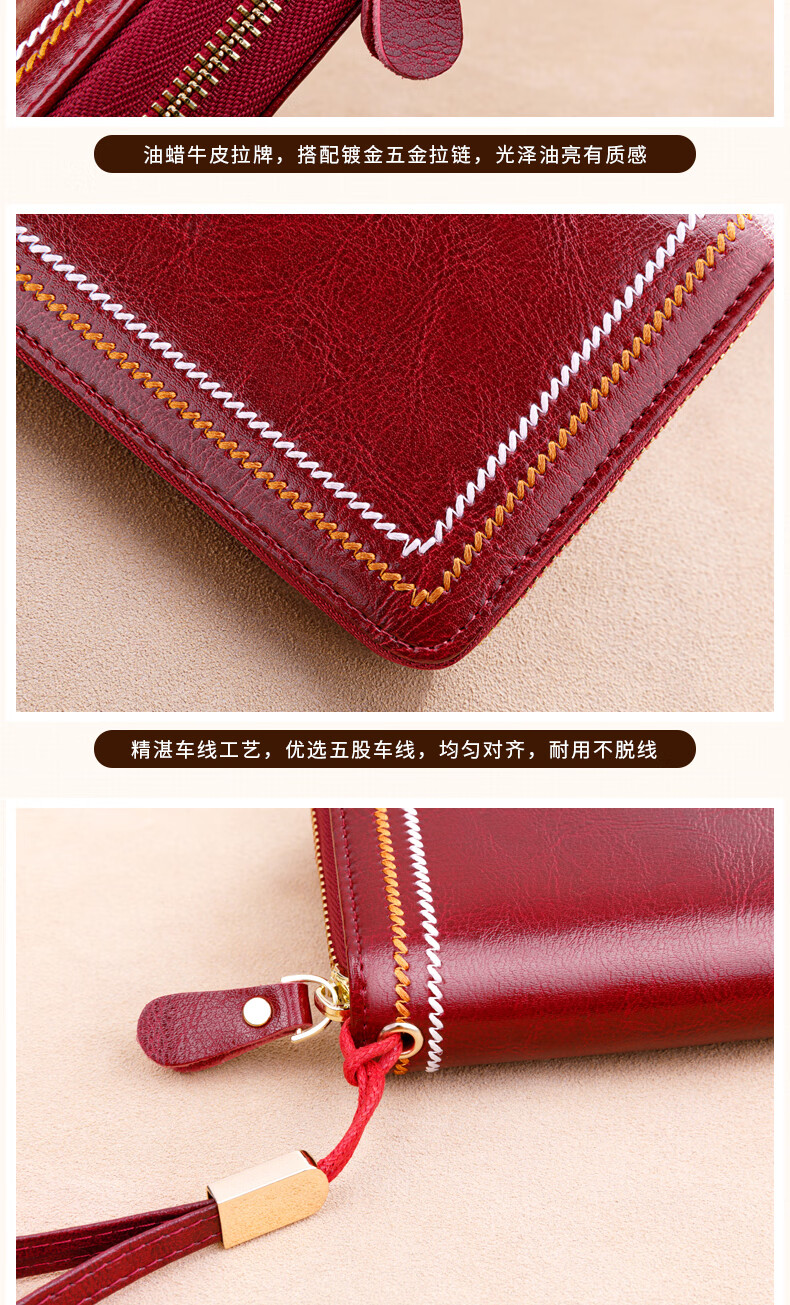 Banyanu wallet women's long style 2025 new genuine leather large capacity multifunctional wallet simple retro clutch women's wallet burgundy (oil wax cowhide) - anti-theft brush