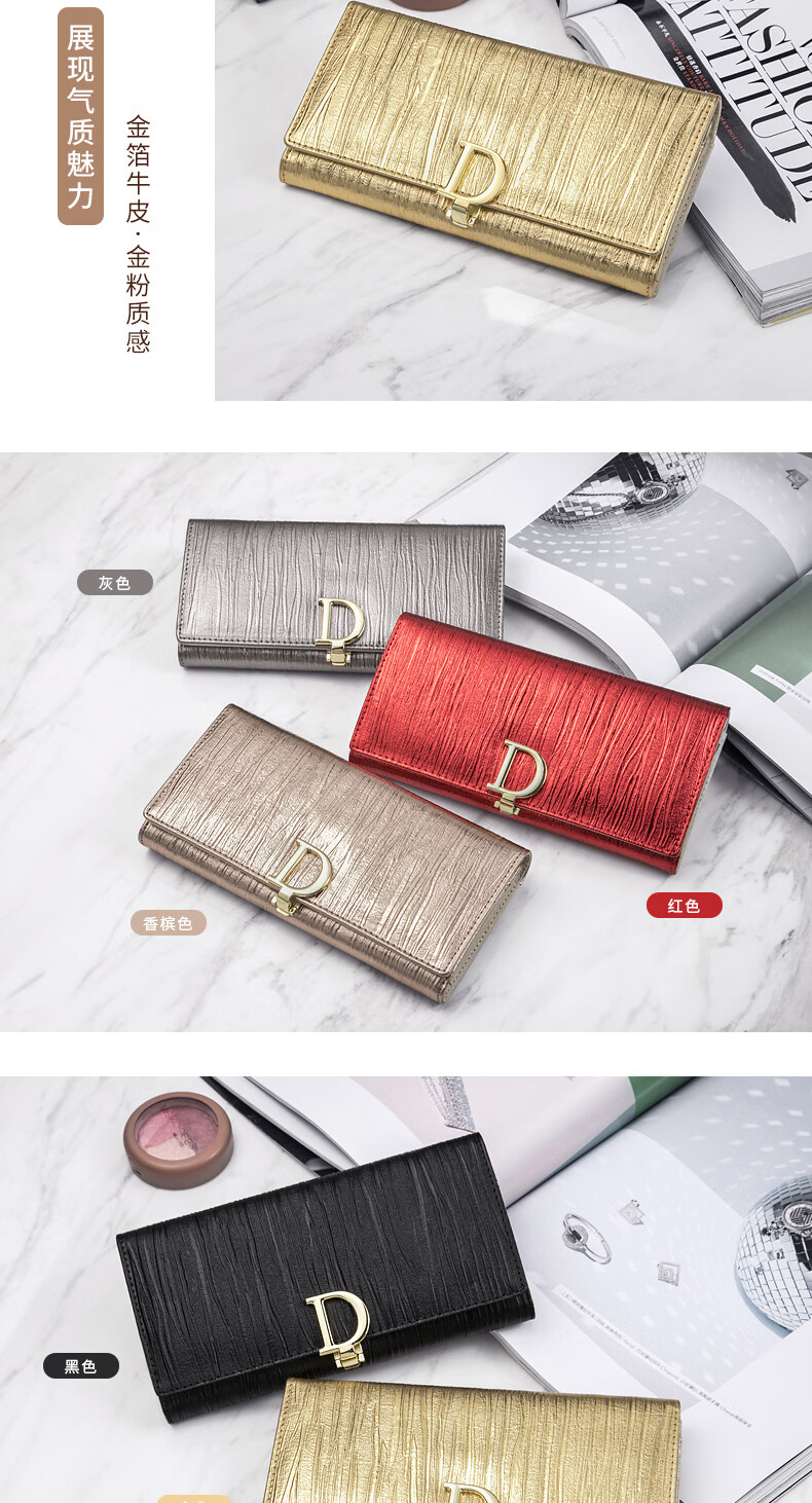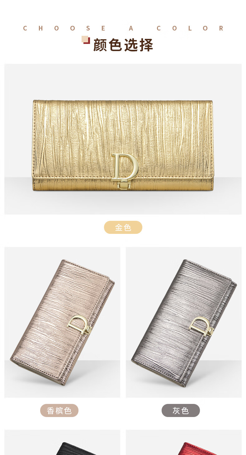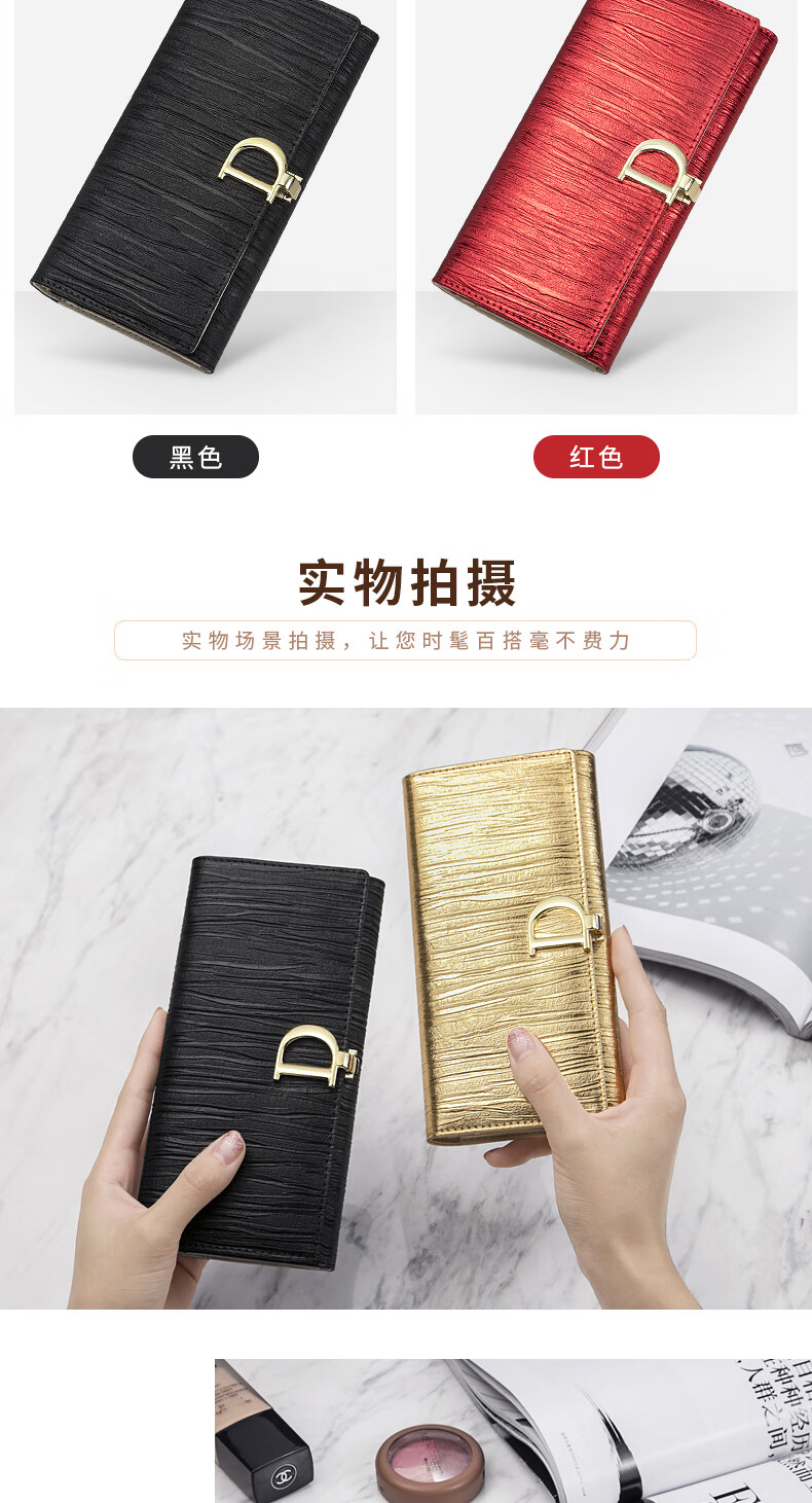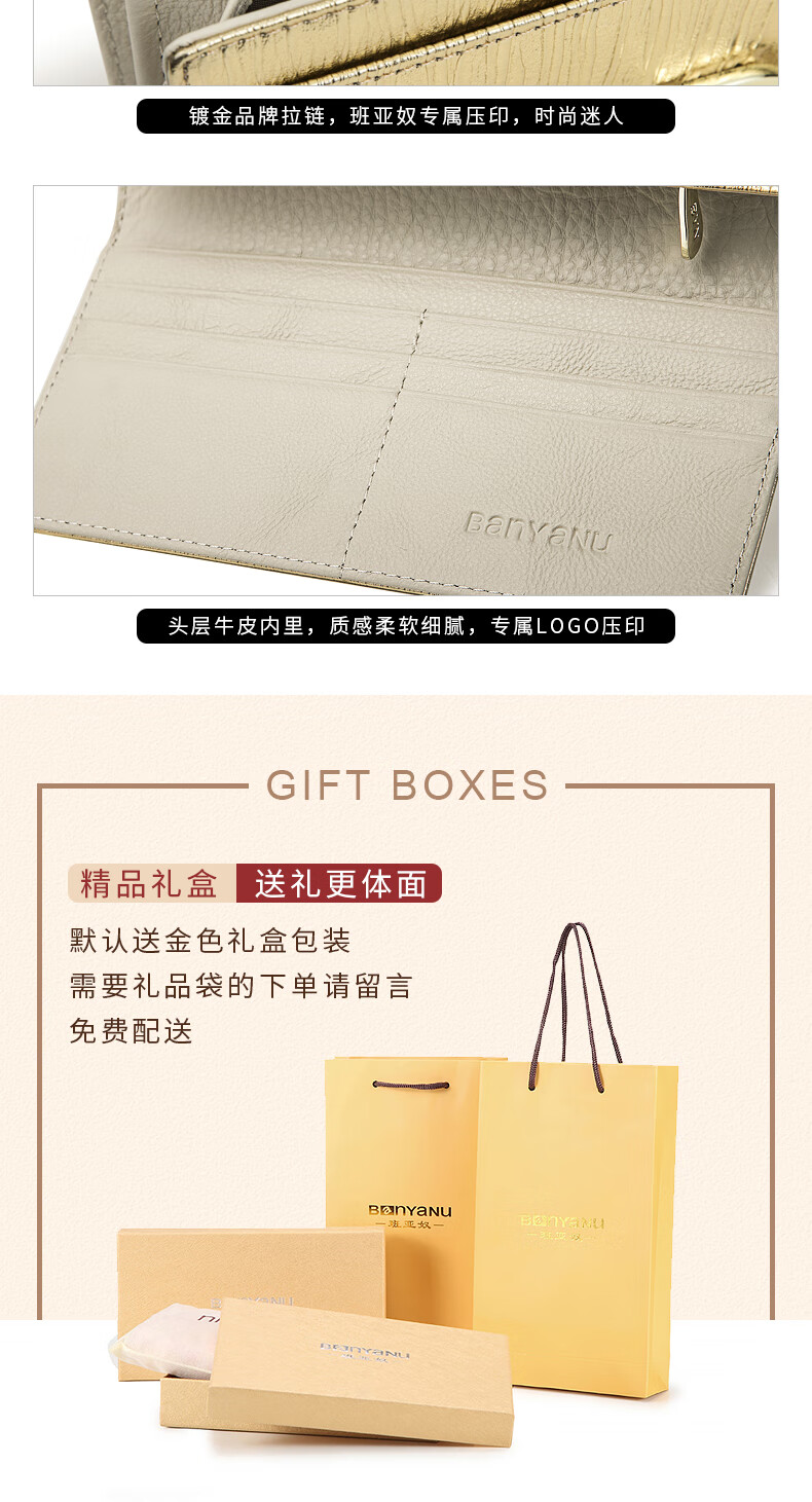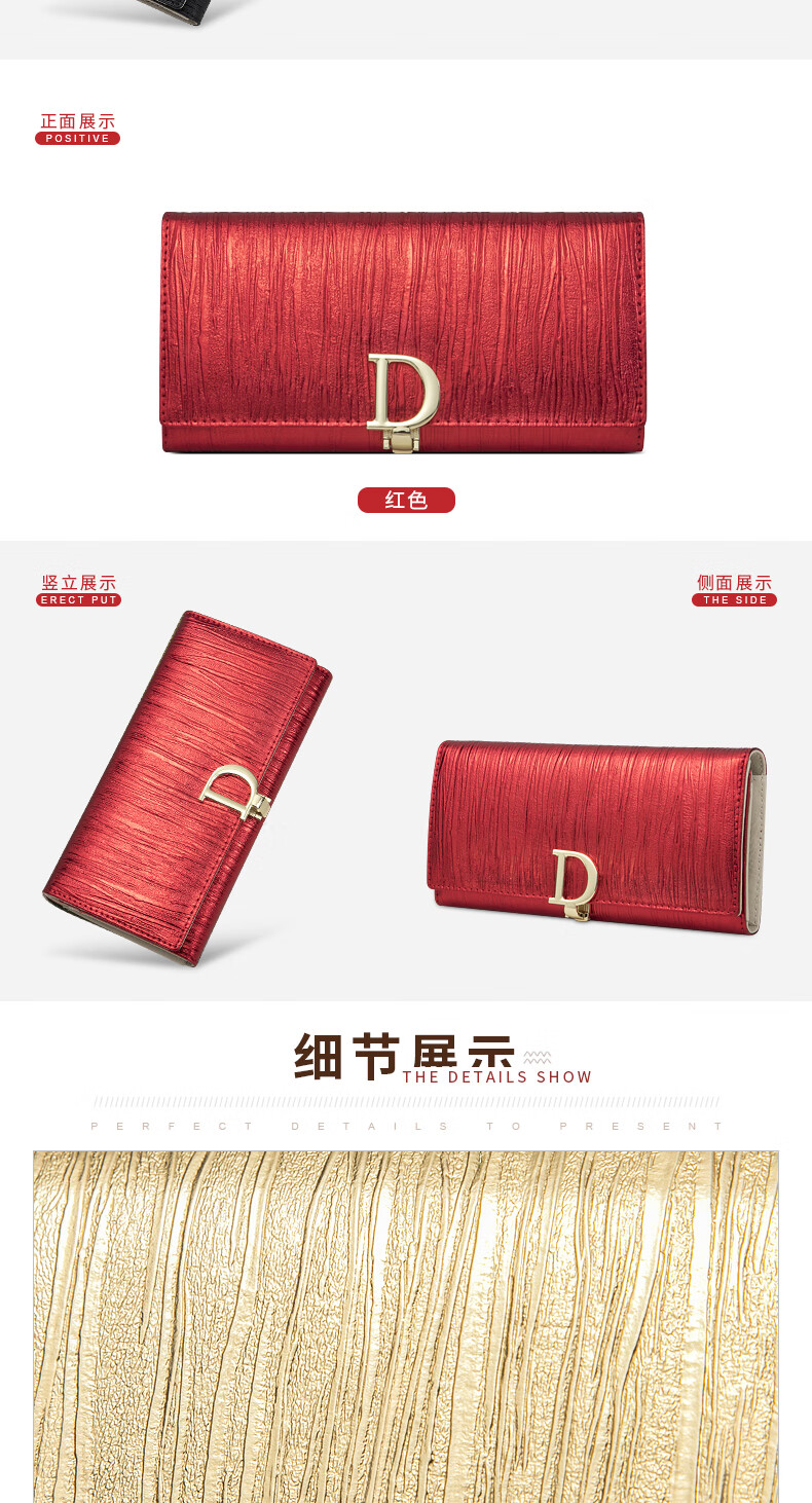 Banyanu 2025 New Fashion Women's Wallet Women's Long Leather Wallet Women's European and American Large Capacity Gold Clutch Red