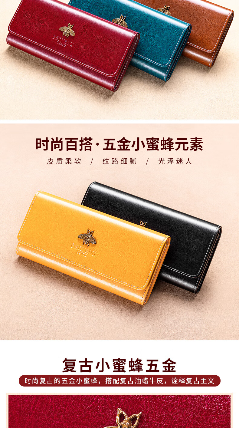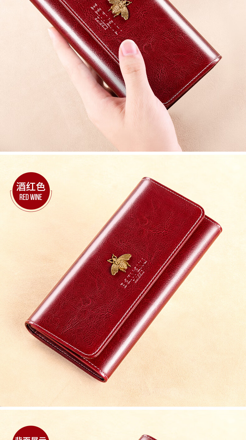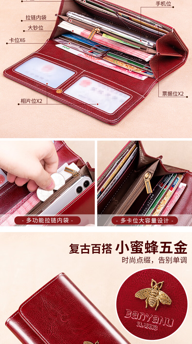 Banyanu wallet women's long genuine leather fashionable large capacity 2025 new style exquisite Korean style simple multi-functional wallet burgundy - anti-theft brush