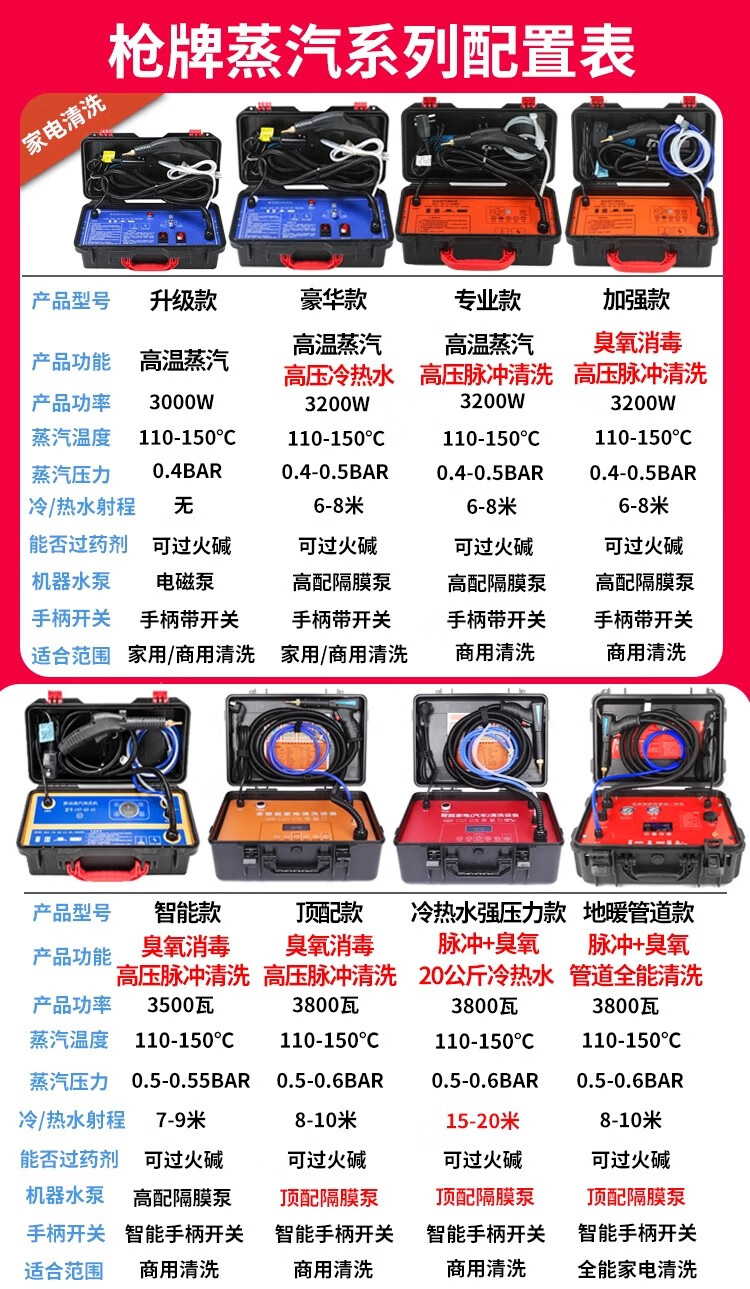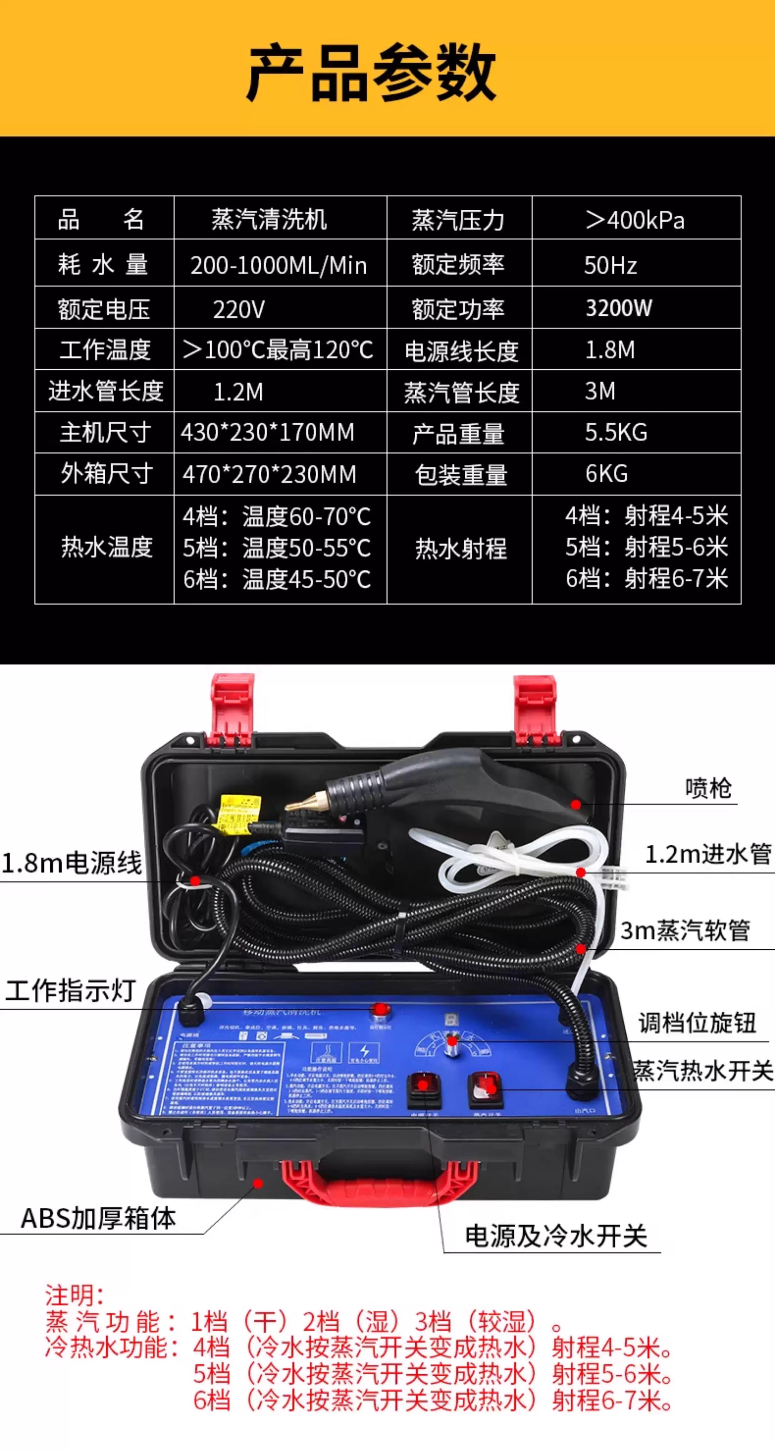 Qiang Brand Commercial High Temperature and High Pressure Steam Cleaning Machine Home Appliances Integrated Air Conditioning Duct Range Hood Oil Dirt Cleaning Machine 3200W Commercial High Version