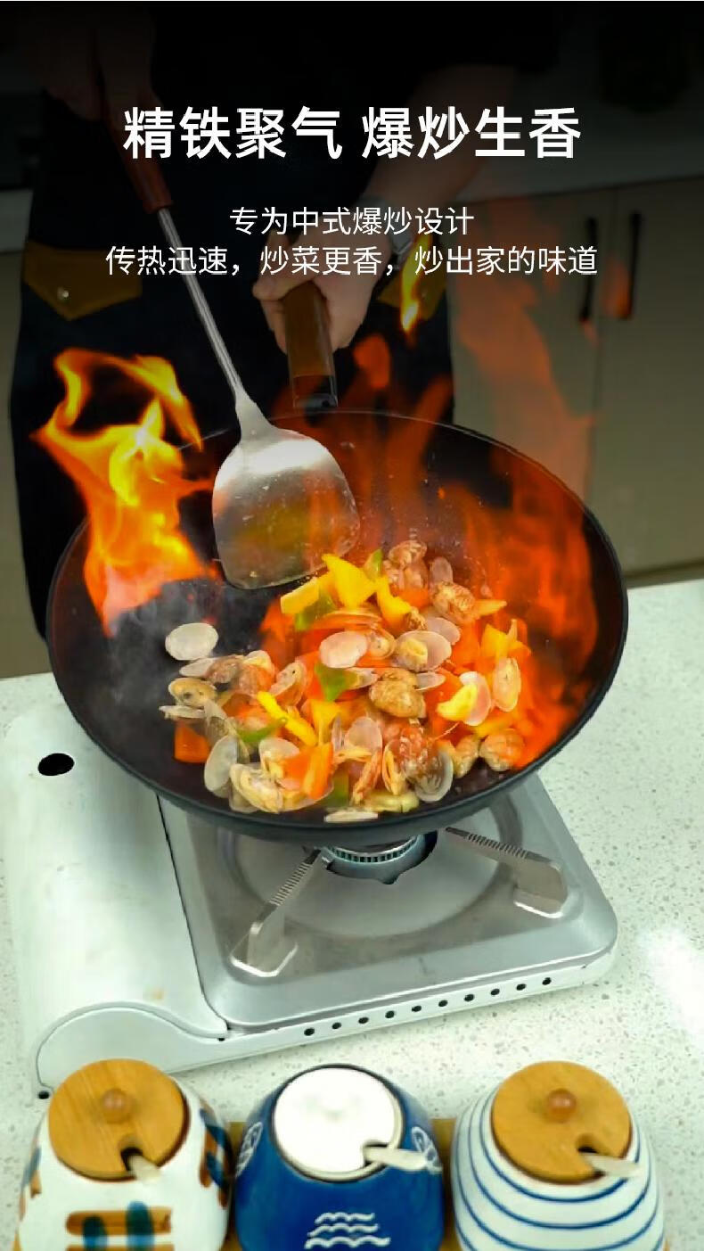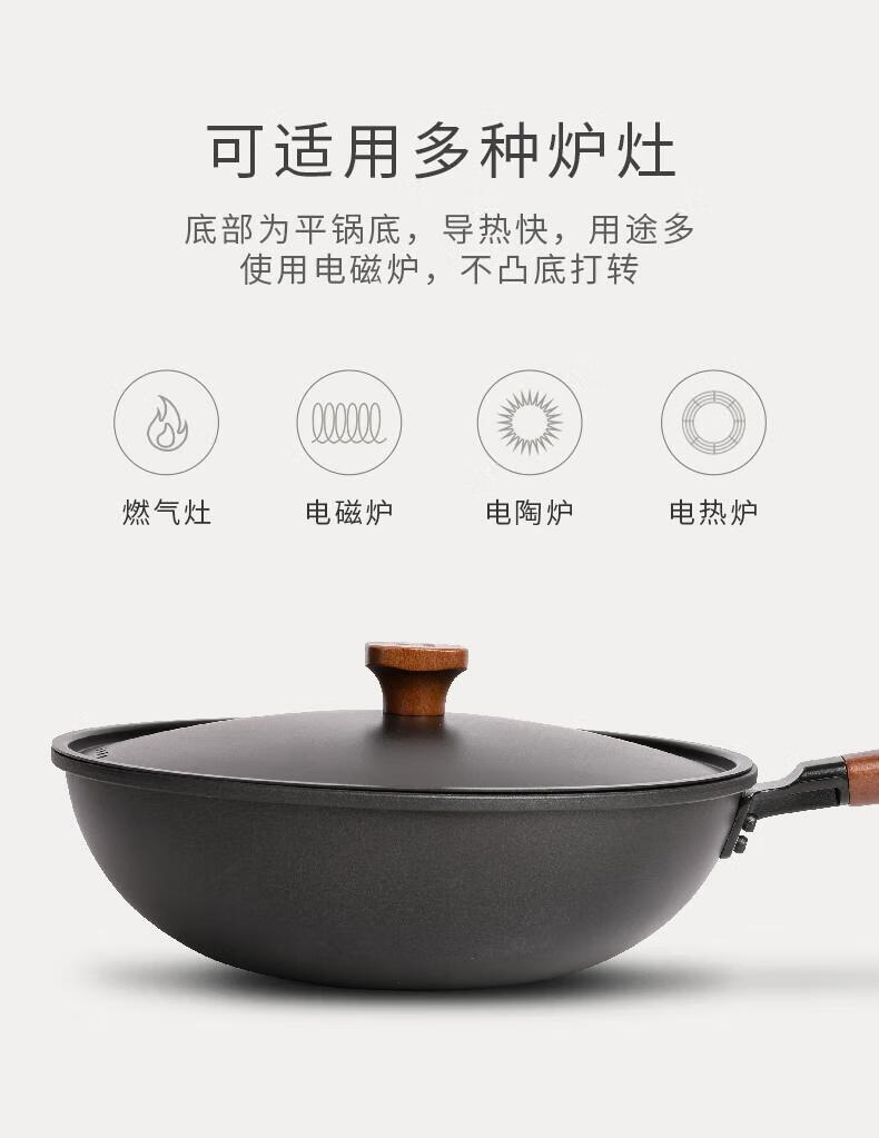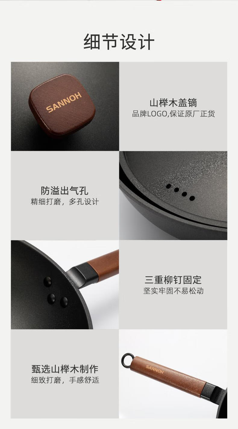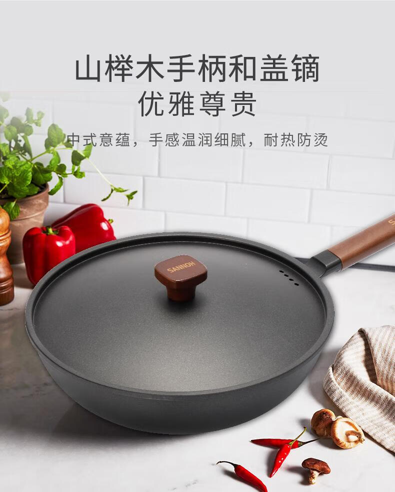 Sanno Industrial (SANNOH) no-opening Japanese uncoated household Japanese-style extremely iron pot 32cm stir-fry pot anti-scalding with lid original iron pot + iron lid + silicone spatula 32cm