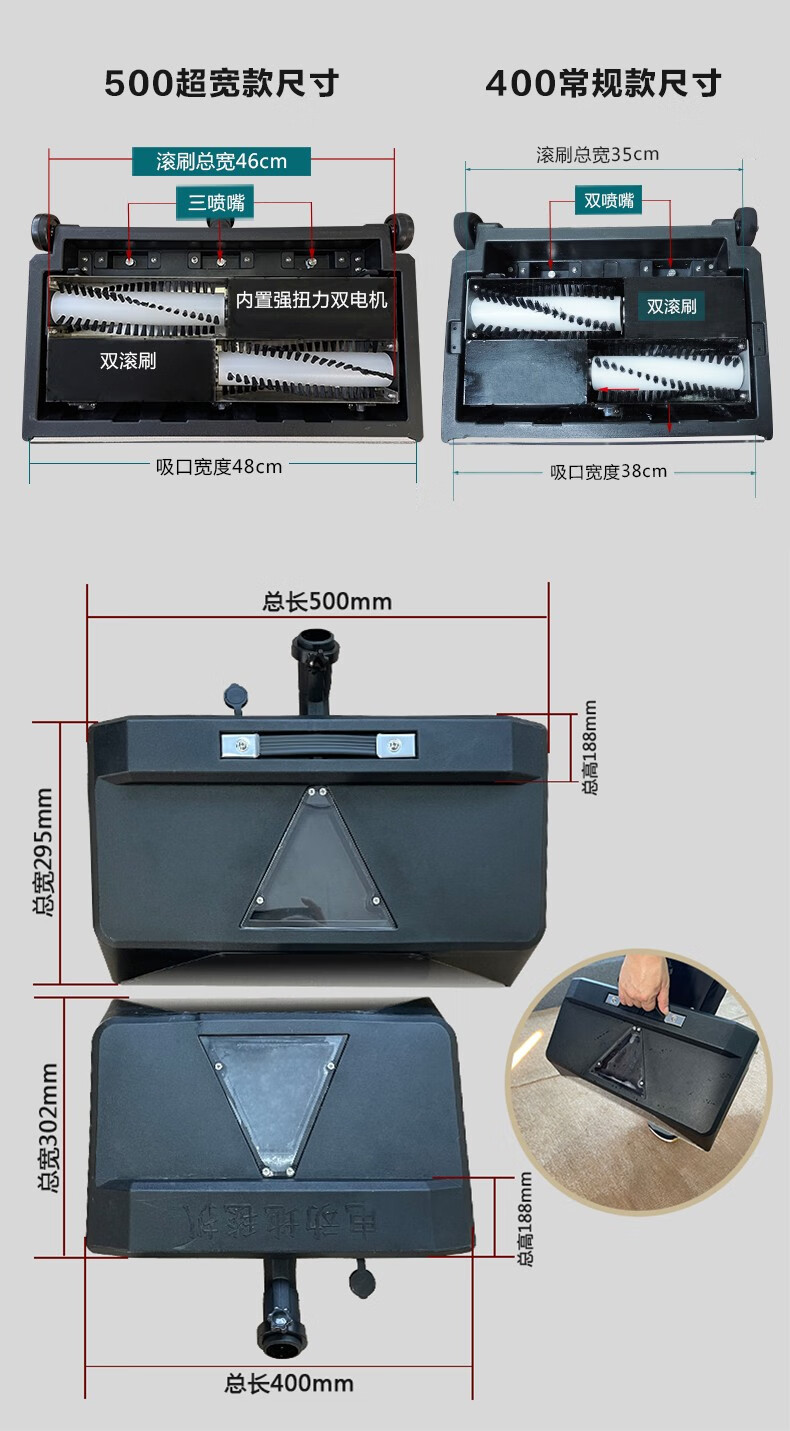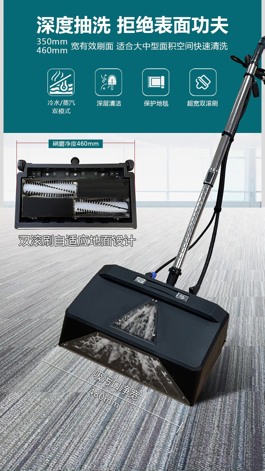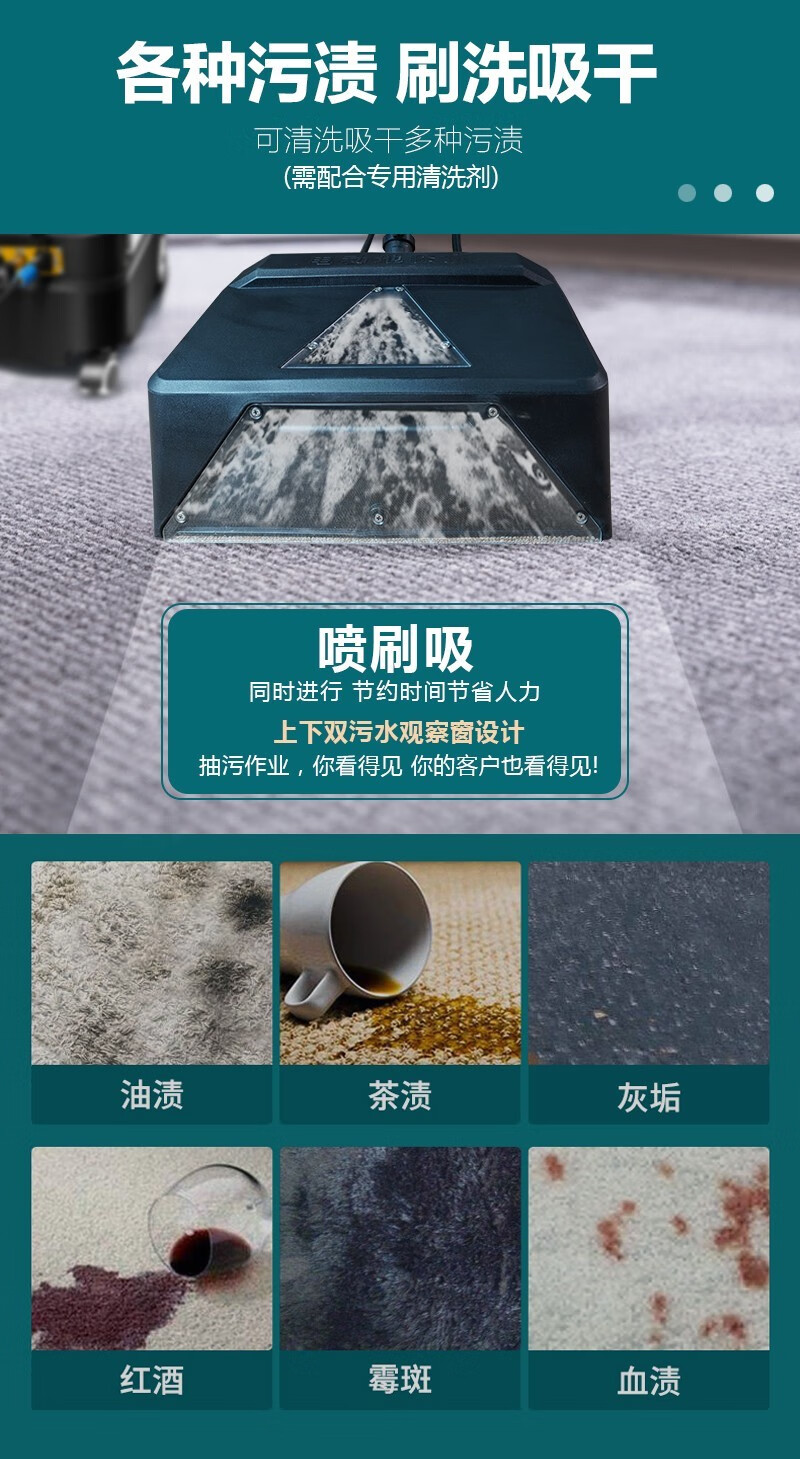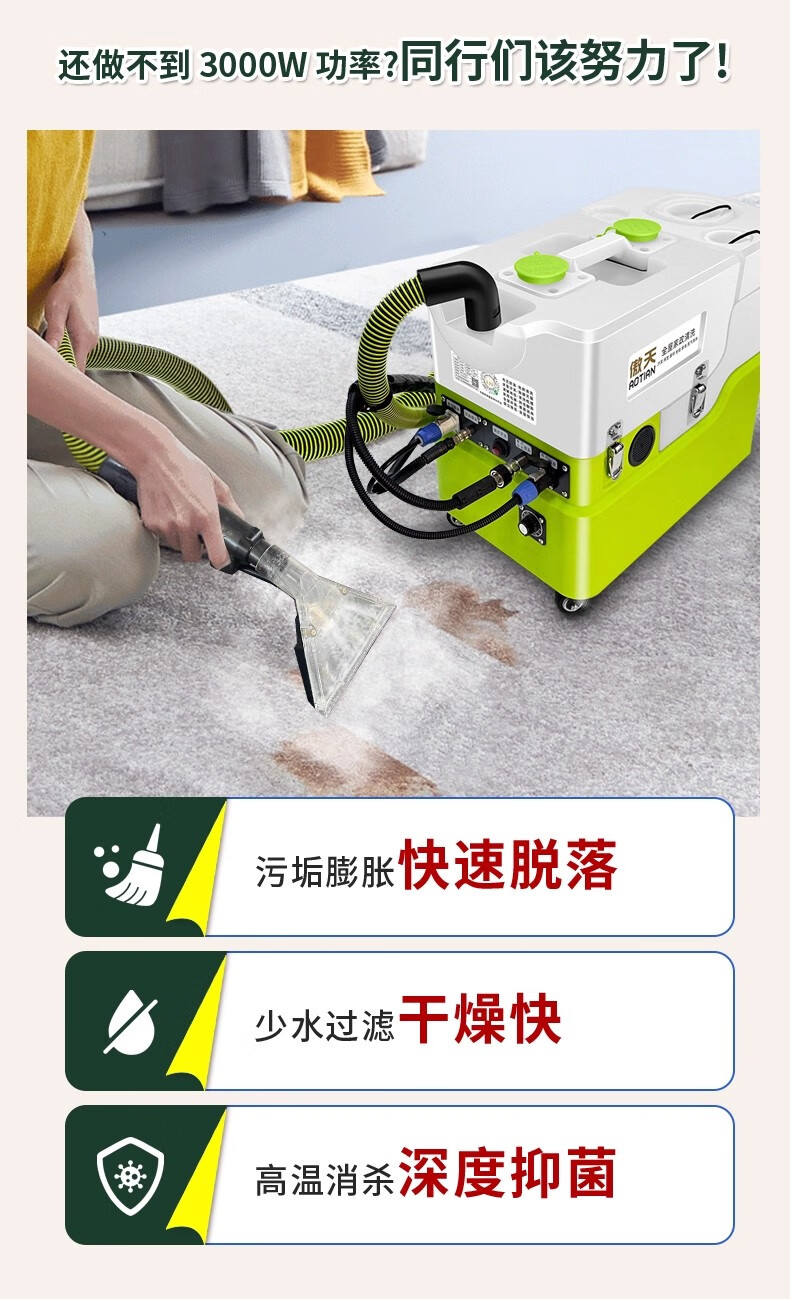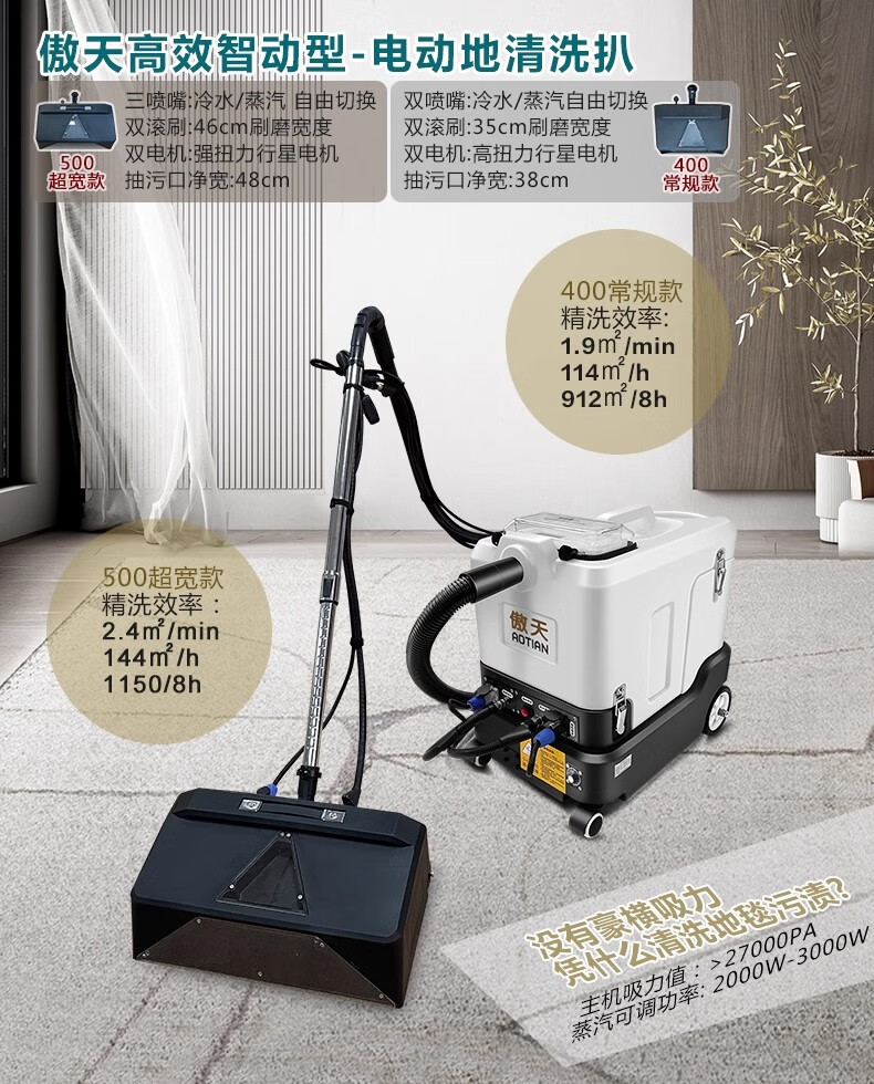 Aotian large-area electric carpet cleaning machine steam and cold water integrated hotel fabric sofa curtain mattress dry foam grinding brush spray suction multi-functional Haoheng large suction commercial machine 12 liters of cold water grinding and cleaning Qichuang version (three water tanks)