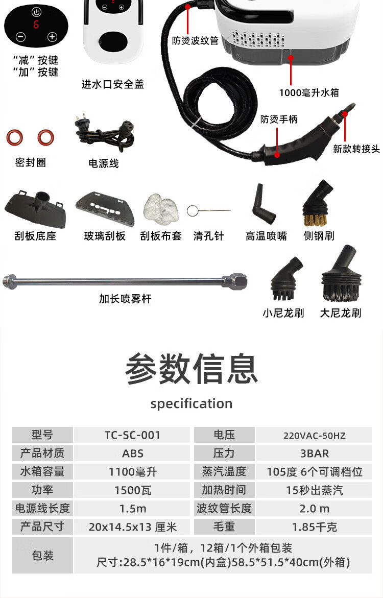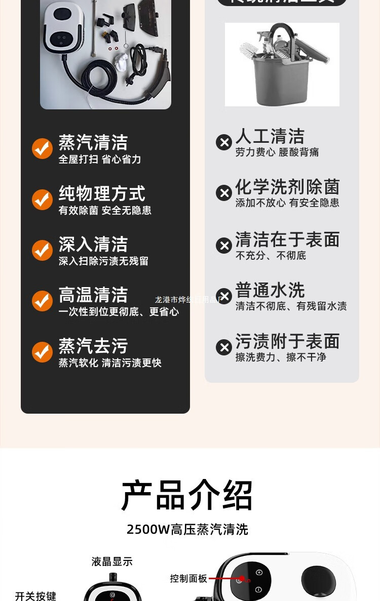Wenzhi cross-border LCD multi-functional range hood high pressure and high temperature steam cleaner portable household disinfection all-in-one machine white button model European regulations