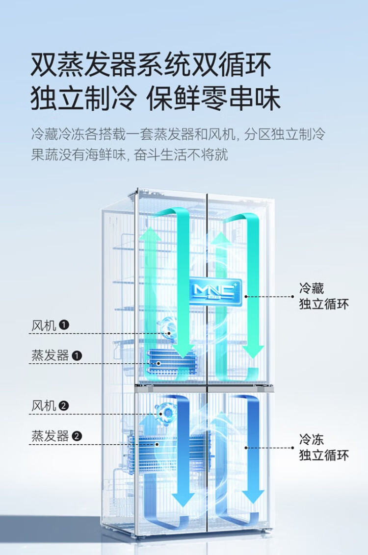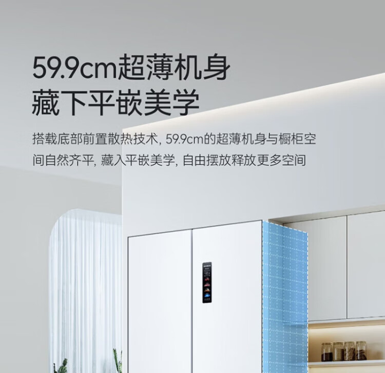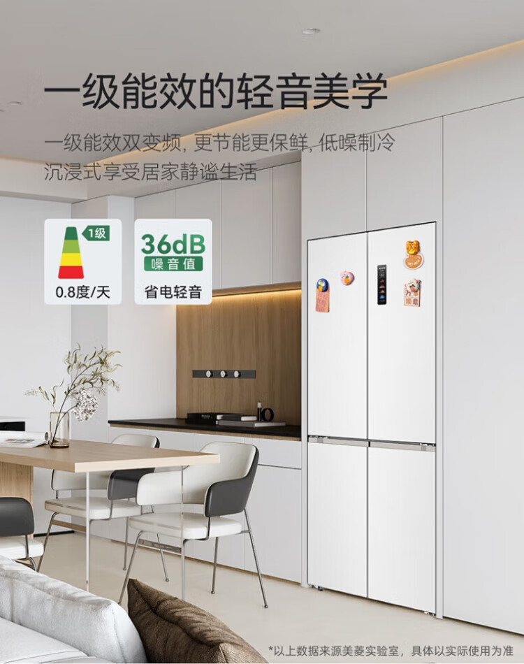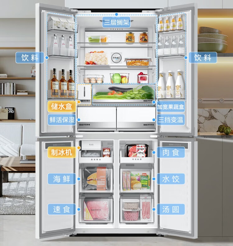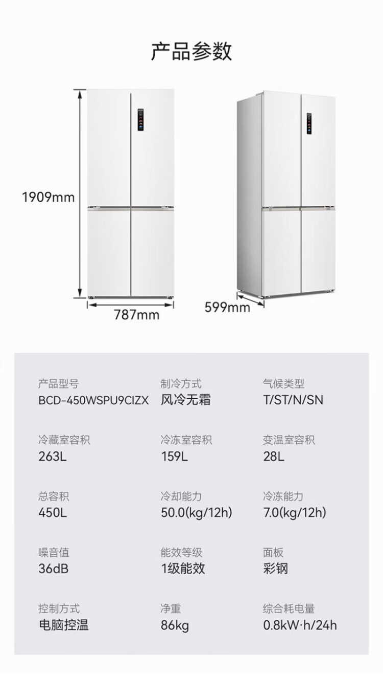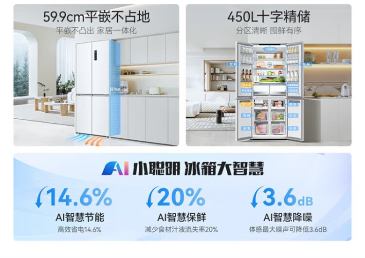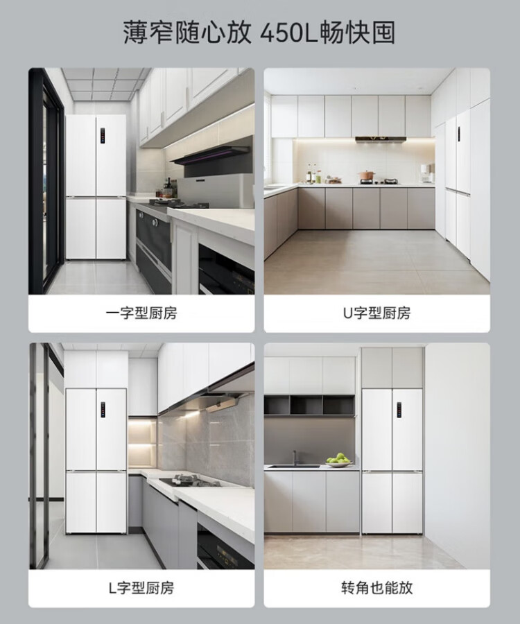 MeiLing White Whale 450L automatic ice making cross four-door refrigerator dual system ultra-thin zero-embedded active sterilization bottom cooling BCD-450WSPU9CIZX