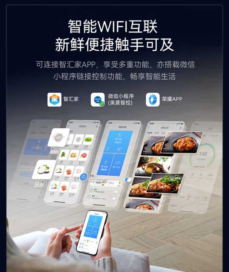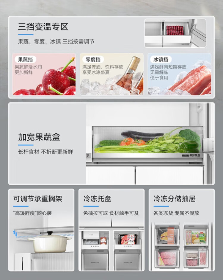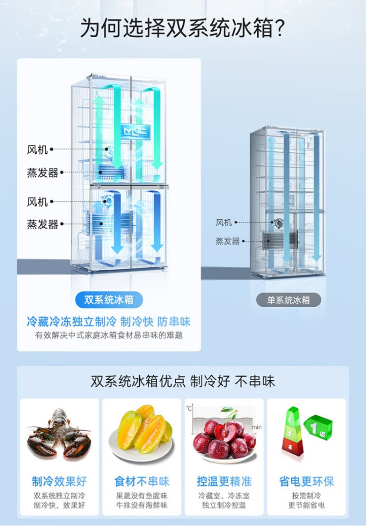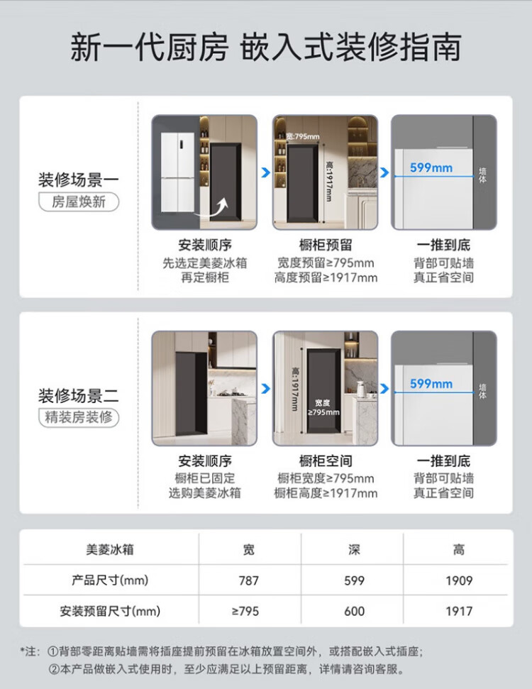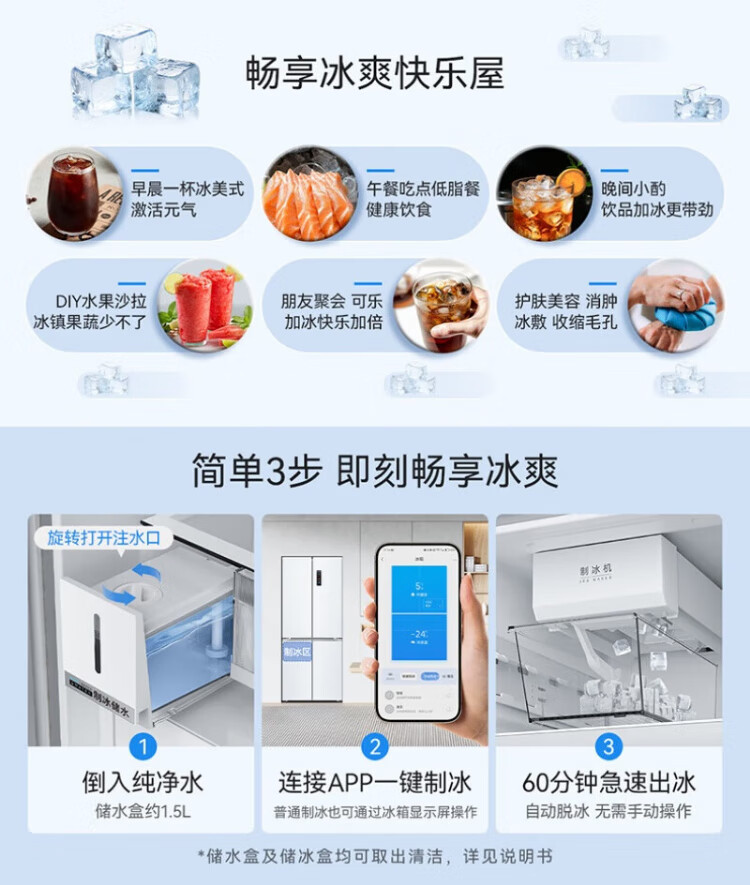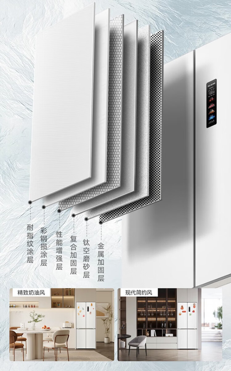 MeiLing White Whale 450L automatic ice making cross four-door refrigerator dual system ultra-thin zero-embedded active sterilization bottom cooling BCD-450WSPU9CIZX