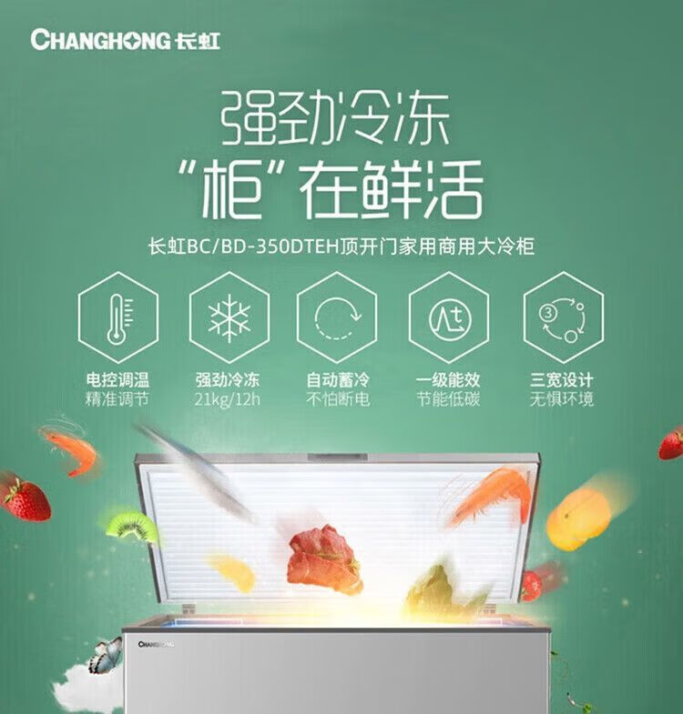 Changhong first-class steel bladder single and double Wenjia commercial horizontal freezer large-capacity refrigerated refrigerated freezer electronically controlled low temperature 7 *3* 6 liters -38 degrees deep cooling second-class electronically controlled steel bladder