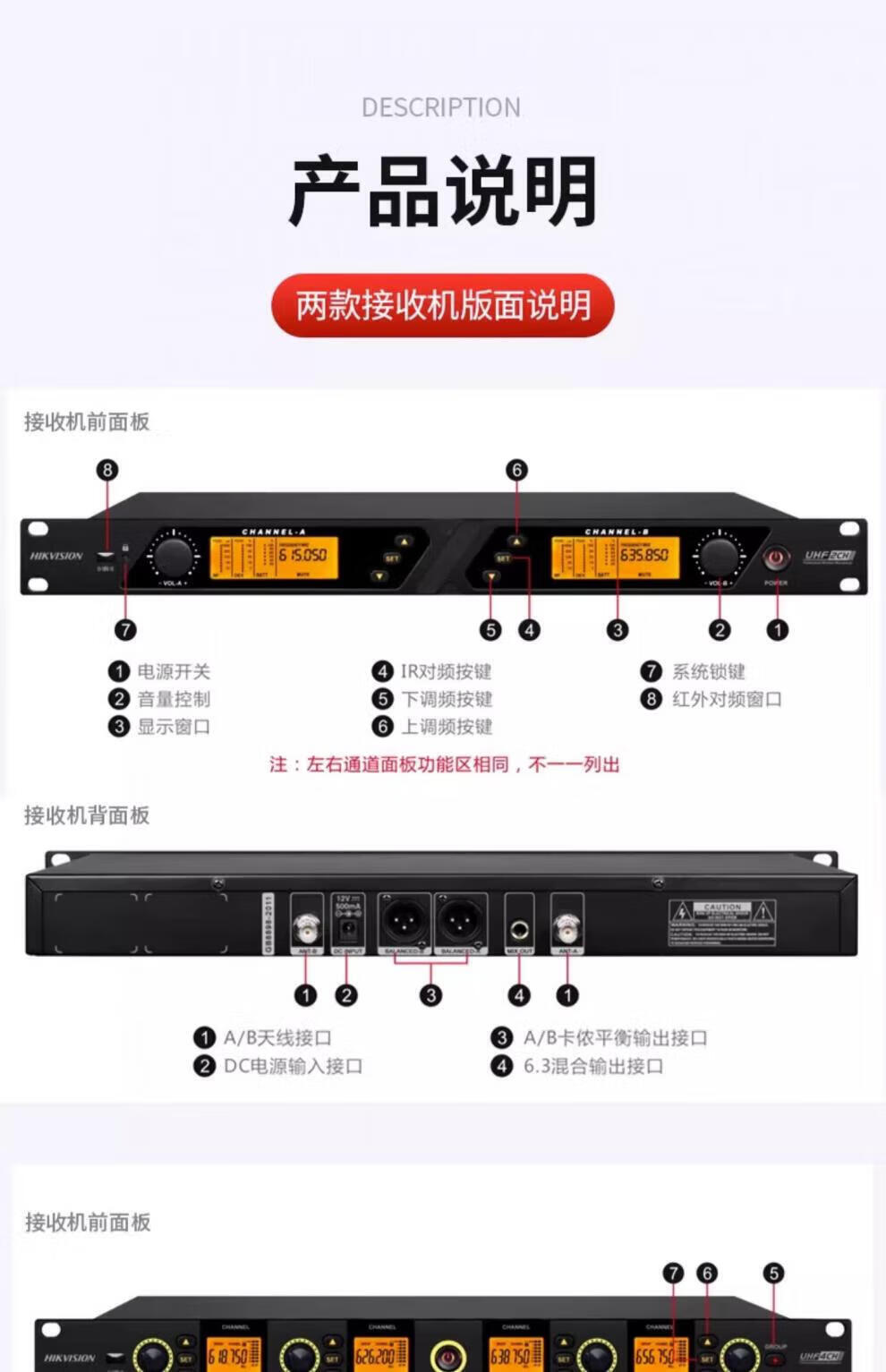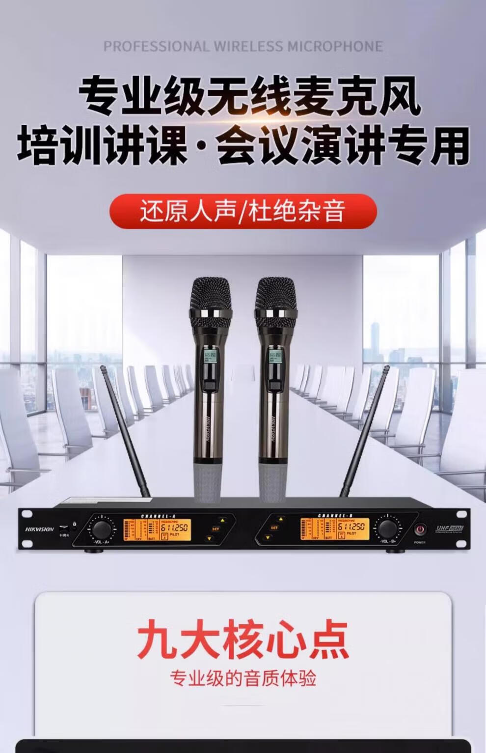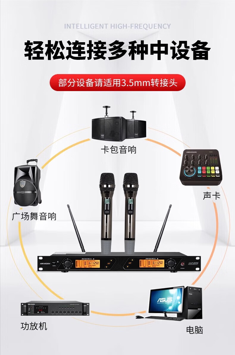 Hikvision (HIKVISION) one-to-two wireless microphone conference lavalier head-worn UHF handheld one-to-four KTV microphone dedicated one-to-two handheld microphone