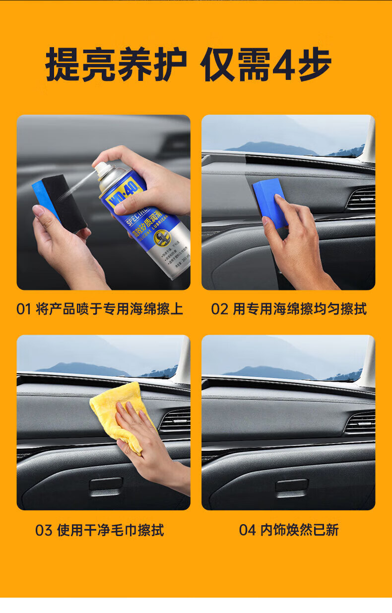 WD40 silicone lubricant interior renovation agent dashboard leather plastic maintenance dashboard wax 360ml leather plastic rubber maintenance agent