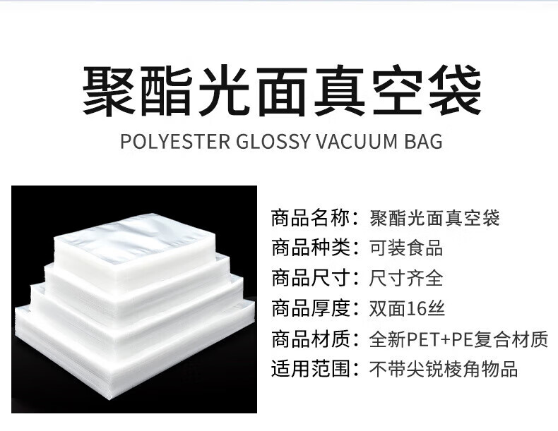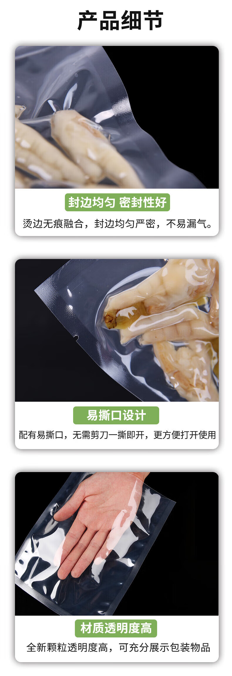 ShouMi spot food vacuum bag commercial compressed transparent glossy plastic polyester nylon high transparency sealed fresh-keeping vacuum bag glossy vacuum bag 7*10 100 pieces