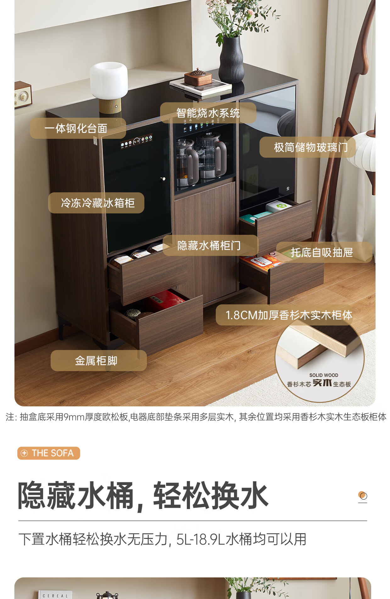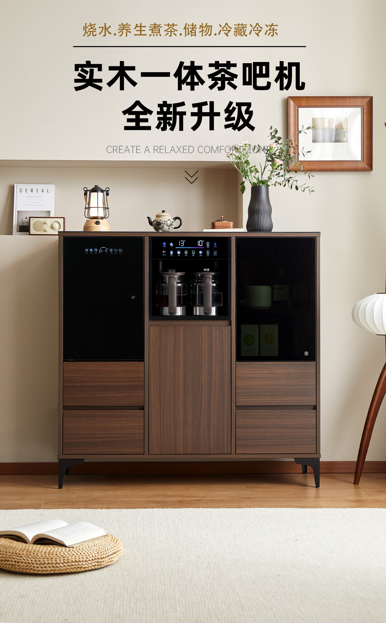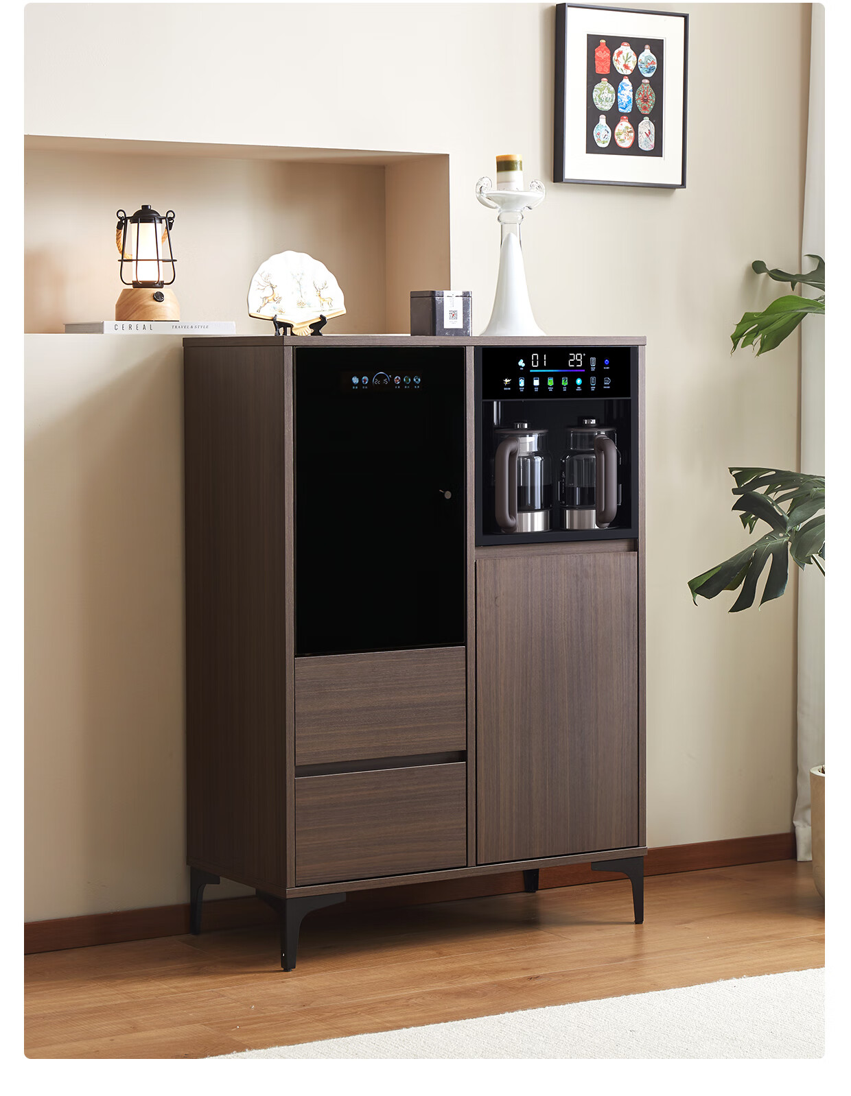Jinqi solid wood tea bar machine household tea bar cabinet water dispenser all-in-one refrigeration refrigerator refrigeration high-end living room with 2025 adjustable temperature voice hot and cold drinking water boiling water walnut color cooling and heating type refrigerator cleaning model voice mobile phone control multi-stage temperature control