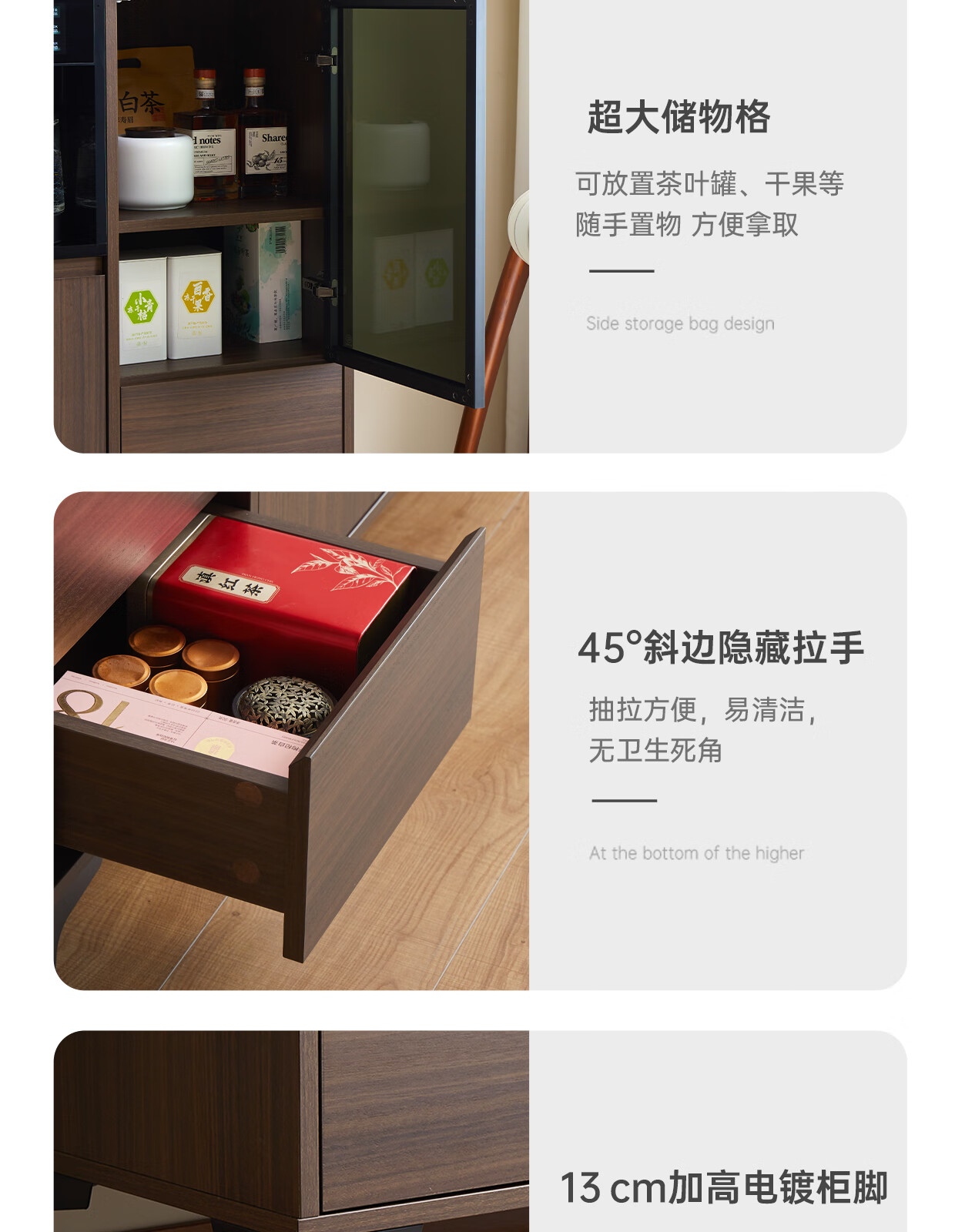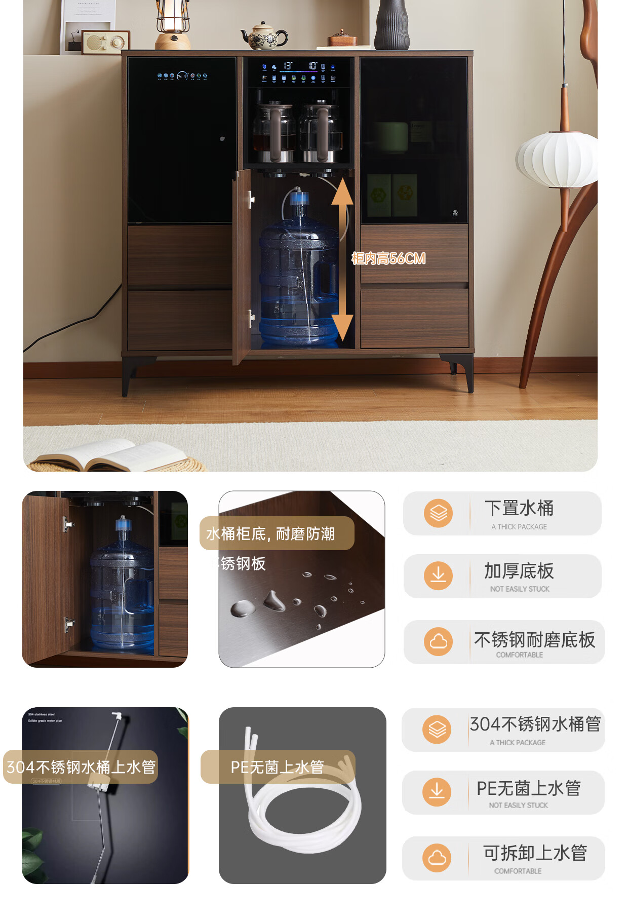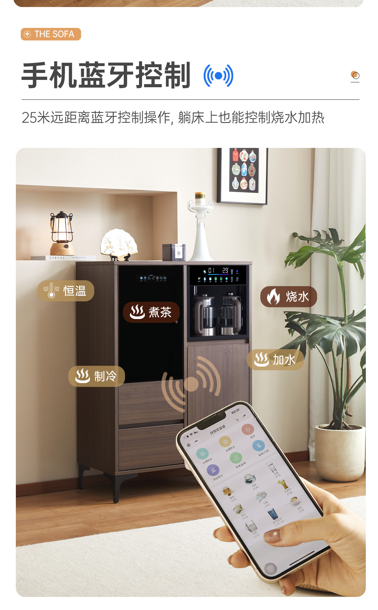 Jinqi solid wood tea bar machine household tea bar cabinet water dispenser all-in-one refrigeration refrigerator refrigeration high-end living room with 2025 adjustable temperature voice hot and cold drinking water boiling water walnut color cooling and heating type refrigerator cleaning model voice mobile phone control multi-stage temperature control