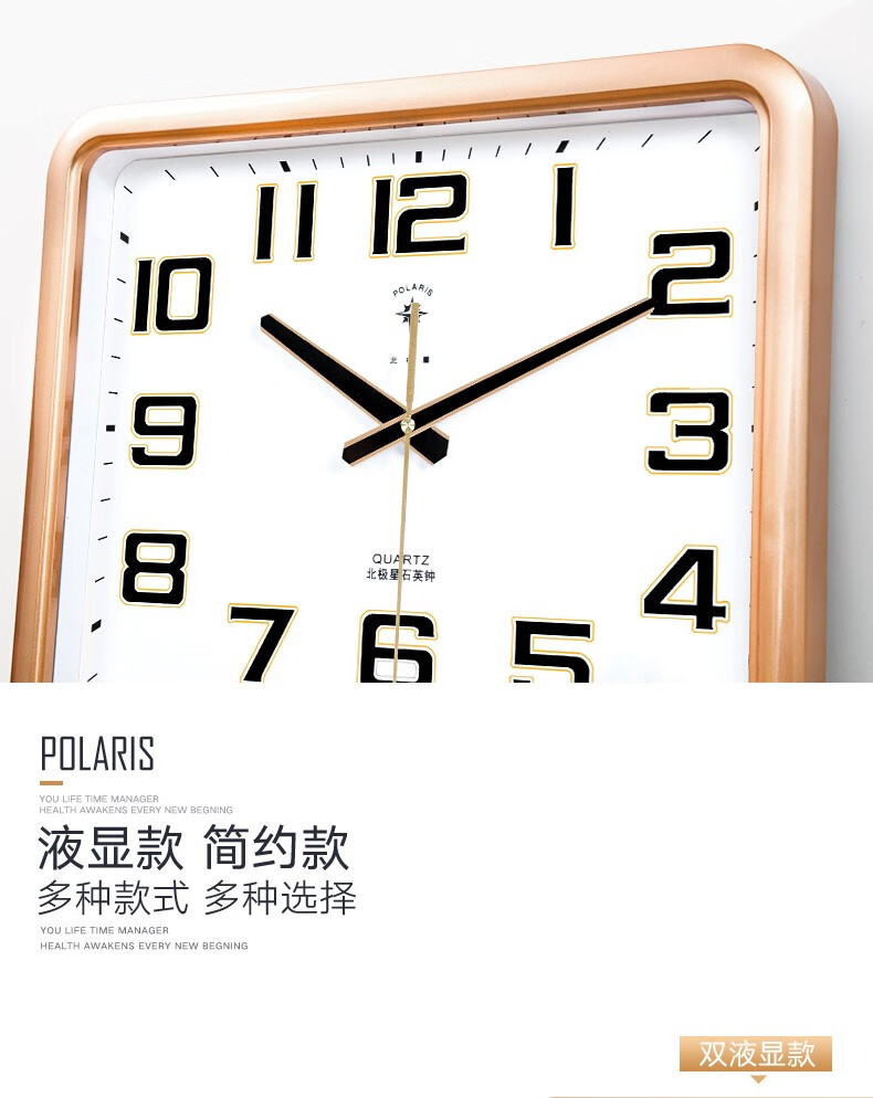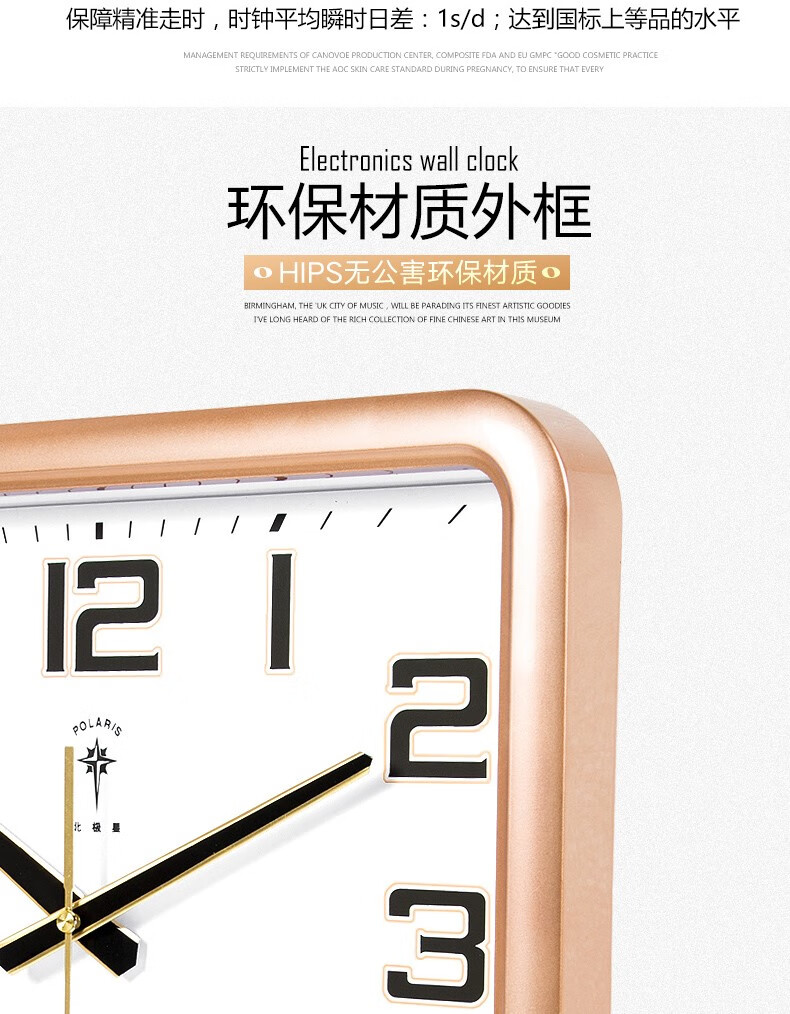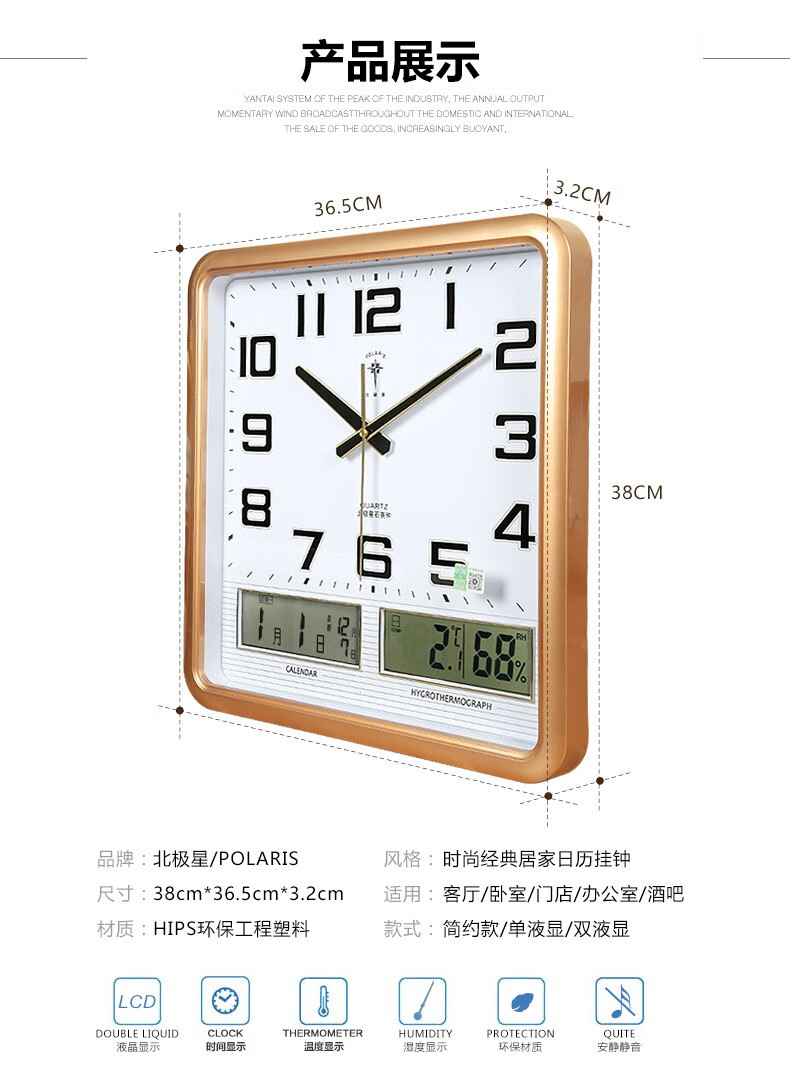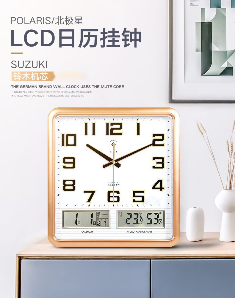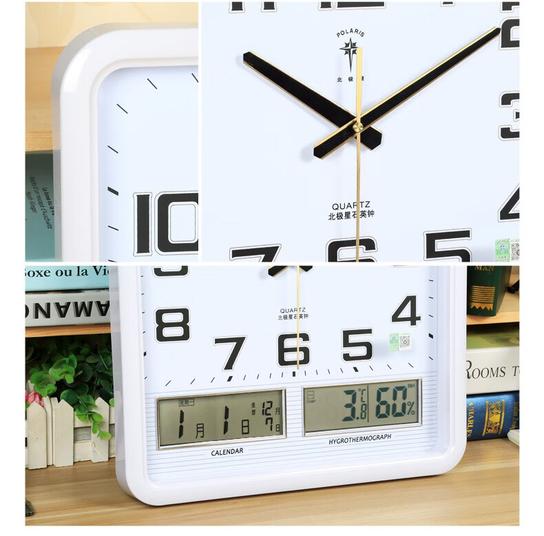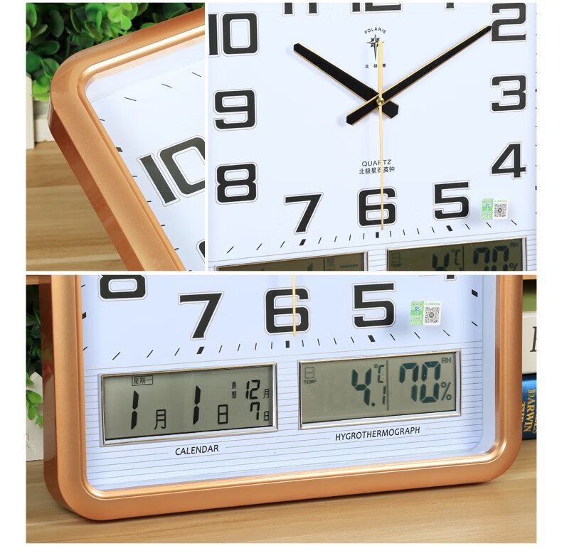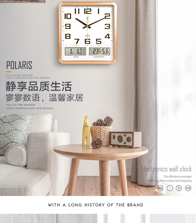 Polaris (POLARIS) wall clock living room 2025 new electronic clock modern wall-mounted simple fashion calendar clock quartz clock home ultra-quiet luminous wood grain color large size 42*40 cm ultra-quiet quartz movement