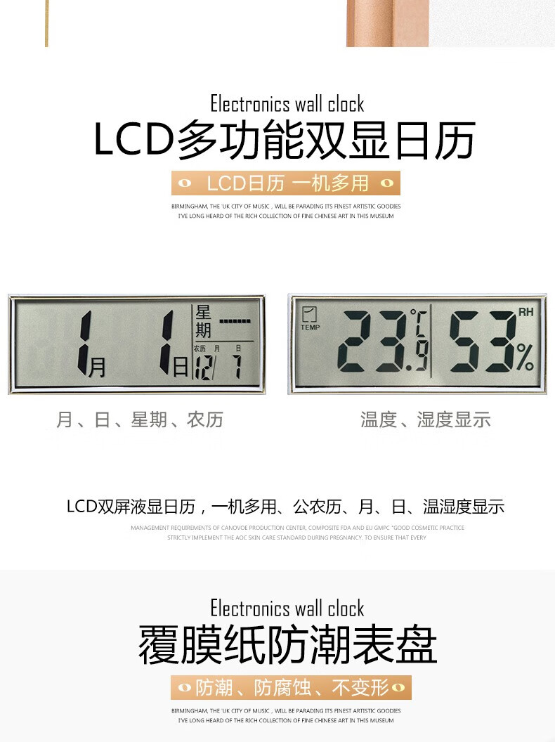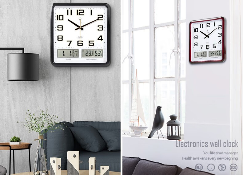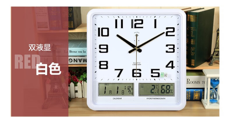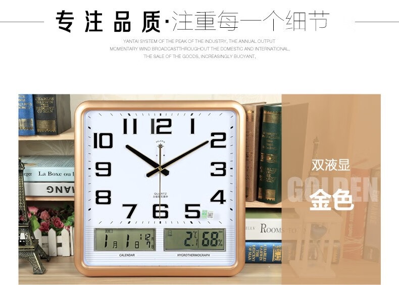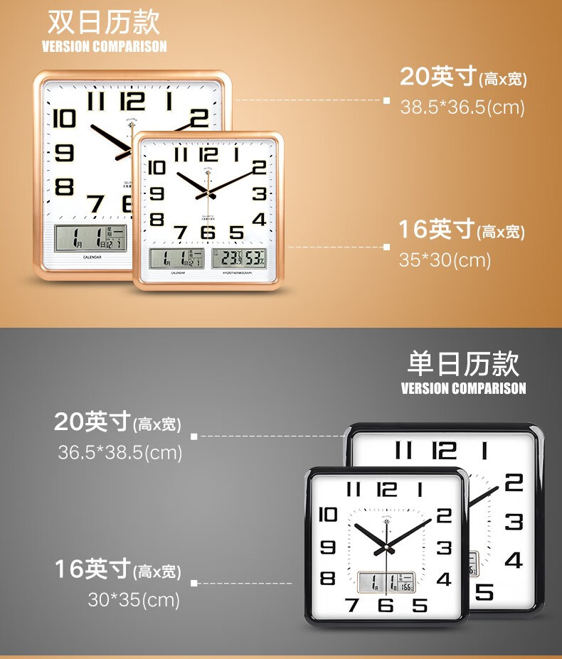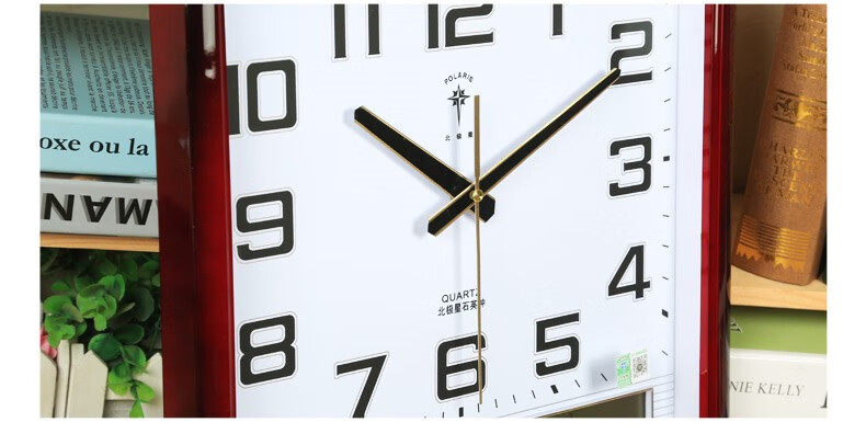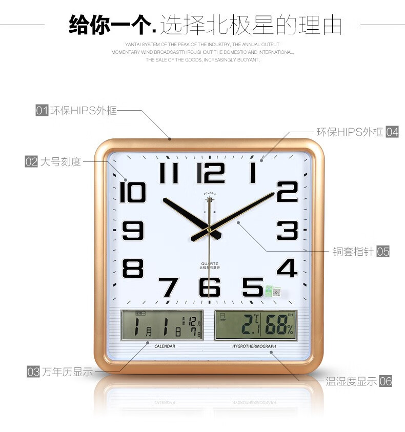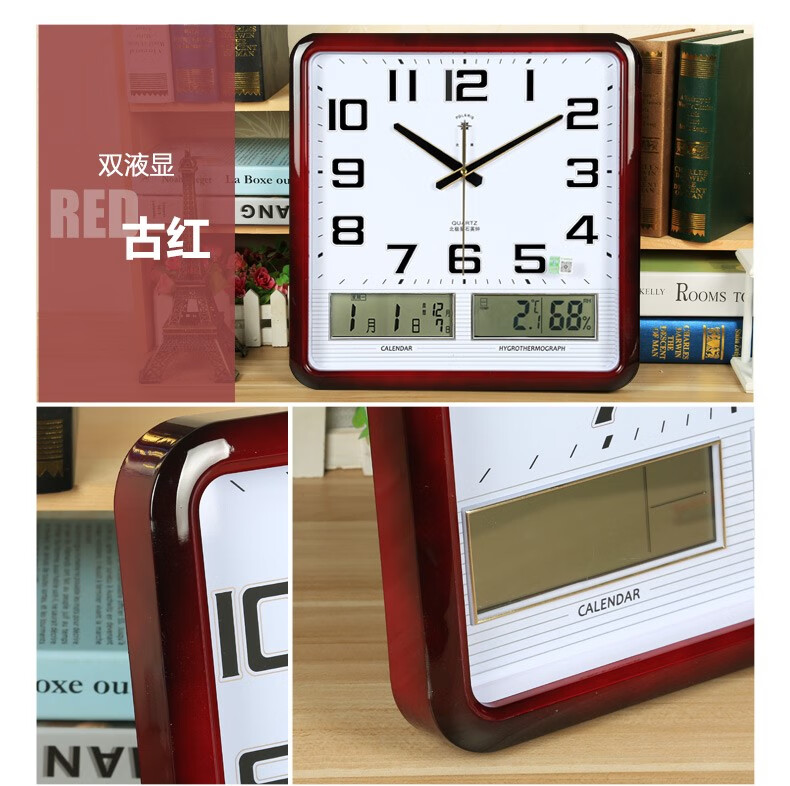 Polaris (POLARIS) wall clock living room 2025 new electronic clock modern wall-mounted simple fashion calendar clock quartz clock home ultra-quiet luminous wood grain color large size 42*40 cm ultra-quiet quartz movement
