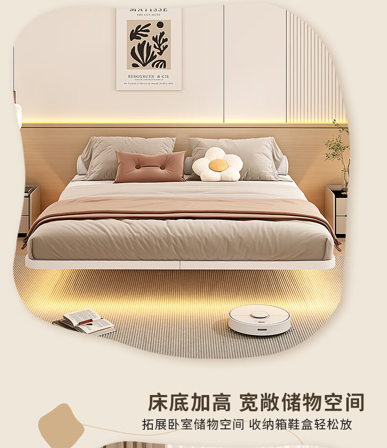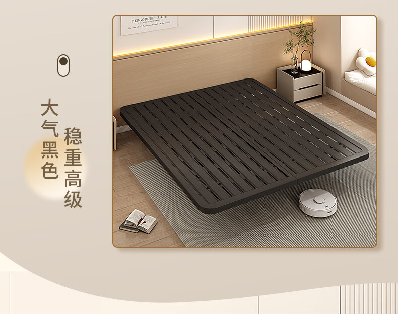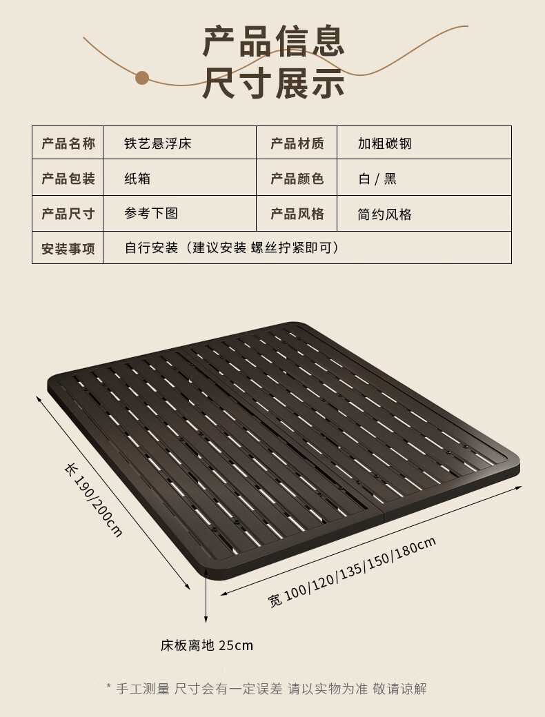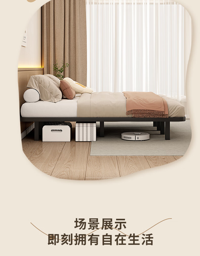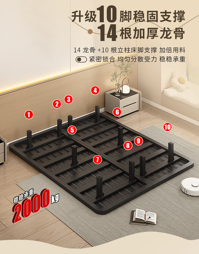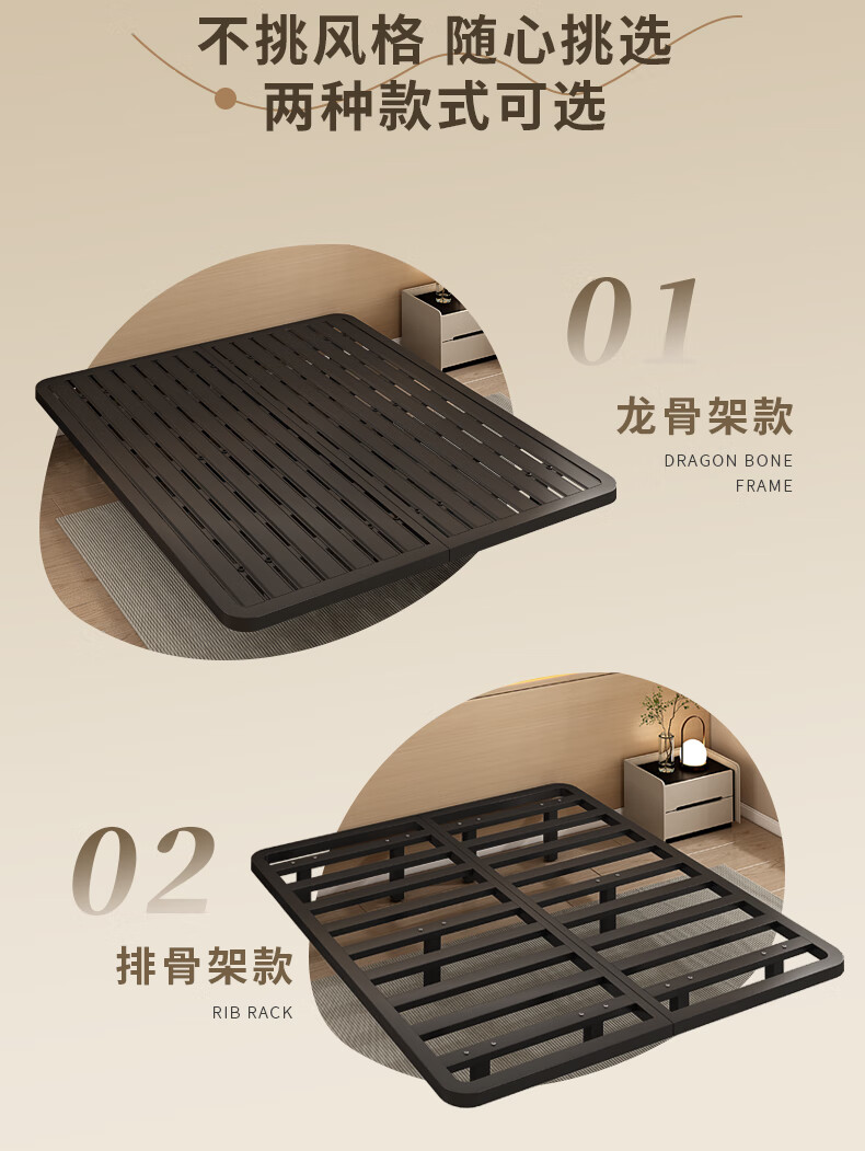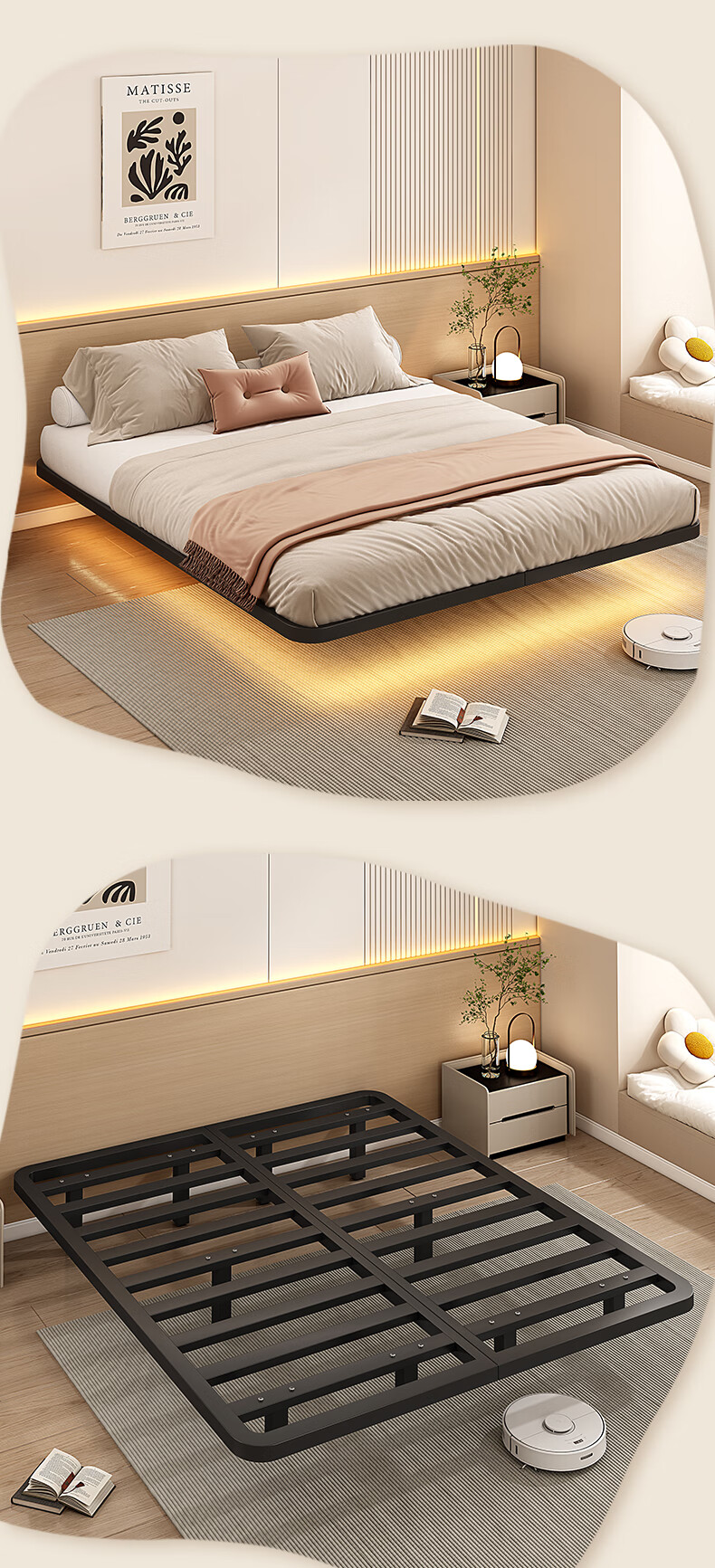 Shantou Lincun modern simple double suspended bed without bedside tatami single iron bed frame dormitory rental room row frame bed black daily style (just a bed) upgraded and thickened 1000mm*1900mm