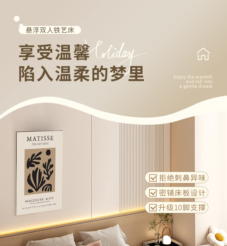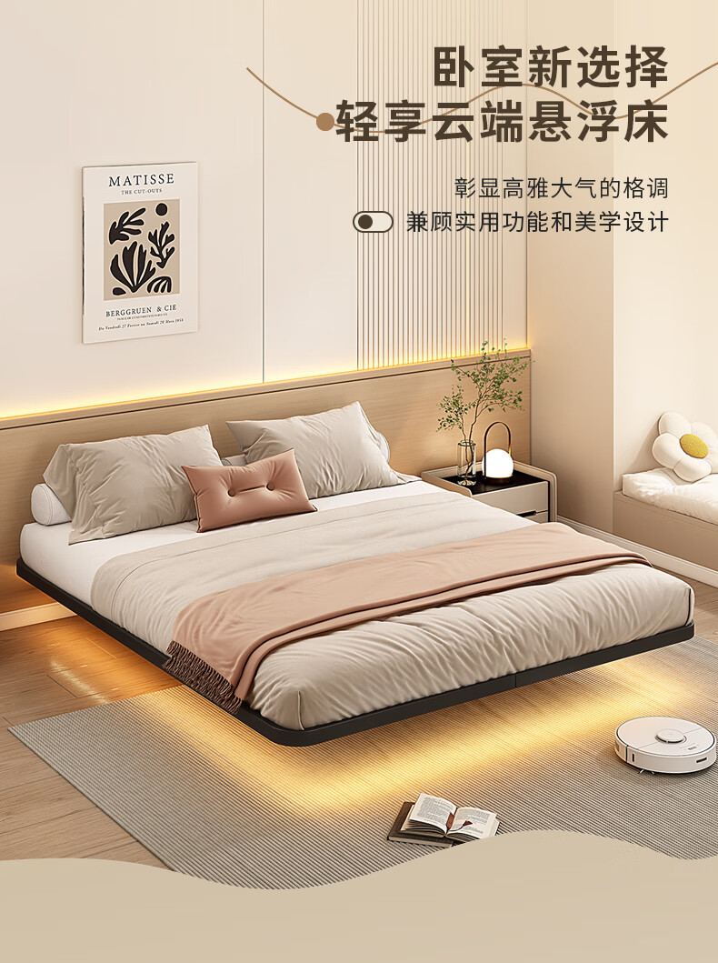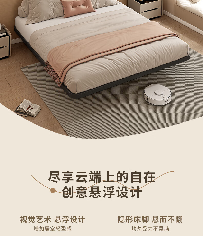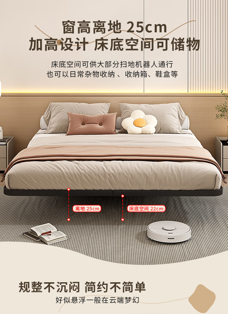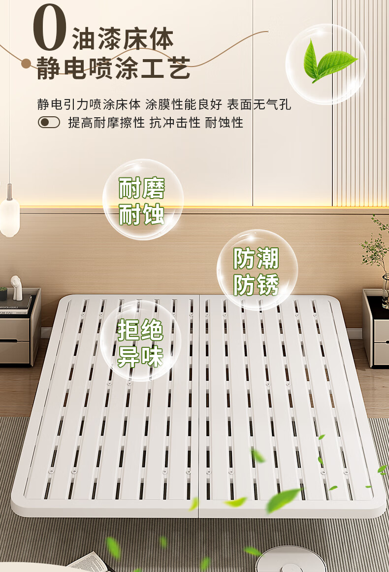 RSRDDY modern simple double suspended bed without bedside tatami single iron bed frame dormitory rental room row frame bed black daily style (just a bed) upgraded and thickened 1000mm*1900mm