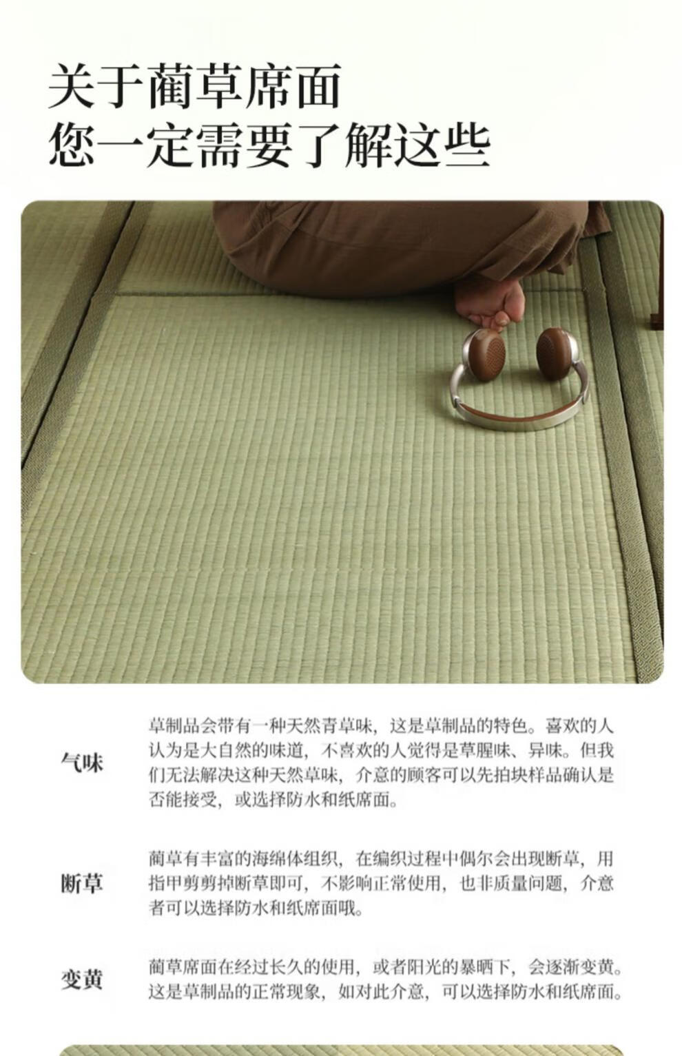 He Jiagong Japanese-style straw mat, rush mat, coconut palm floor mat, heated tatami mat, custom-made brown mat, custom-made stepping rice kang mat, 1.5 cm Japanese-style natural binocular rush mat
