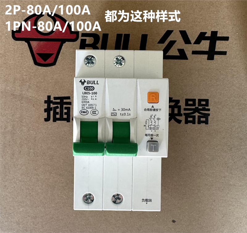 Bull 2p air switch with leakage protector main switch circuit breaker household 220V water heater 63a air switch 2p leakage 10A