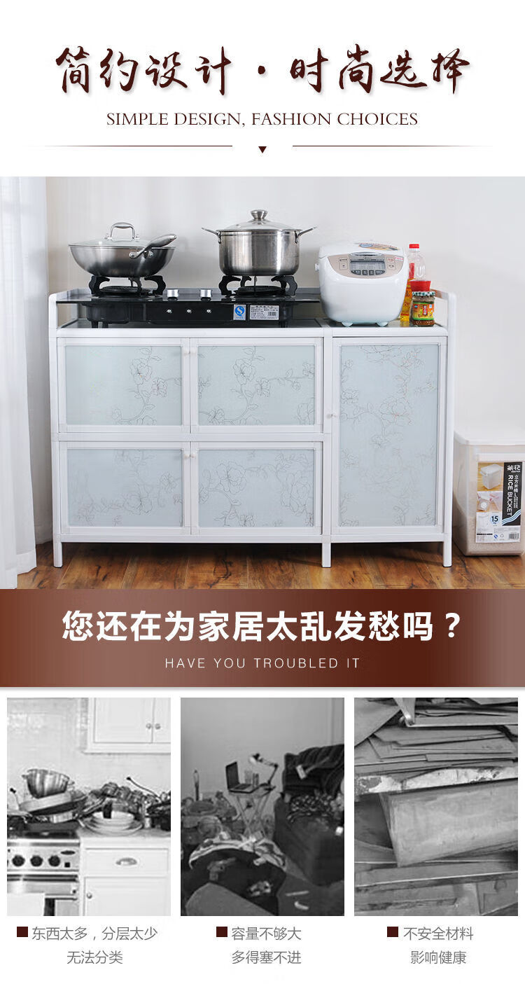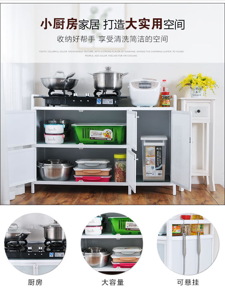 NAOISKEY Naoski household aluminum alloy cupboard kitchen storage small cabinet combination stove cabinet Tea Art Flower five doors 100 face width * depth 41 * height 80